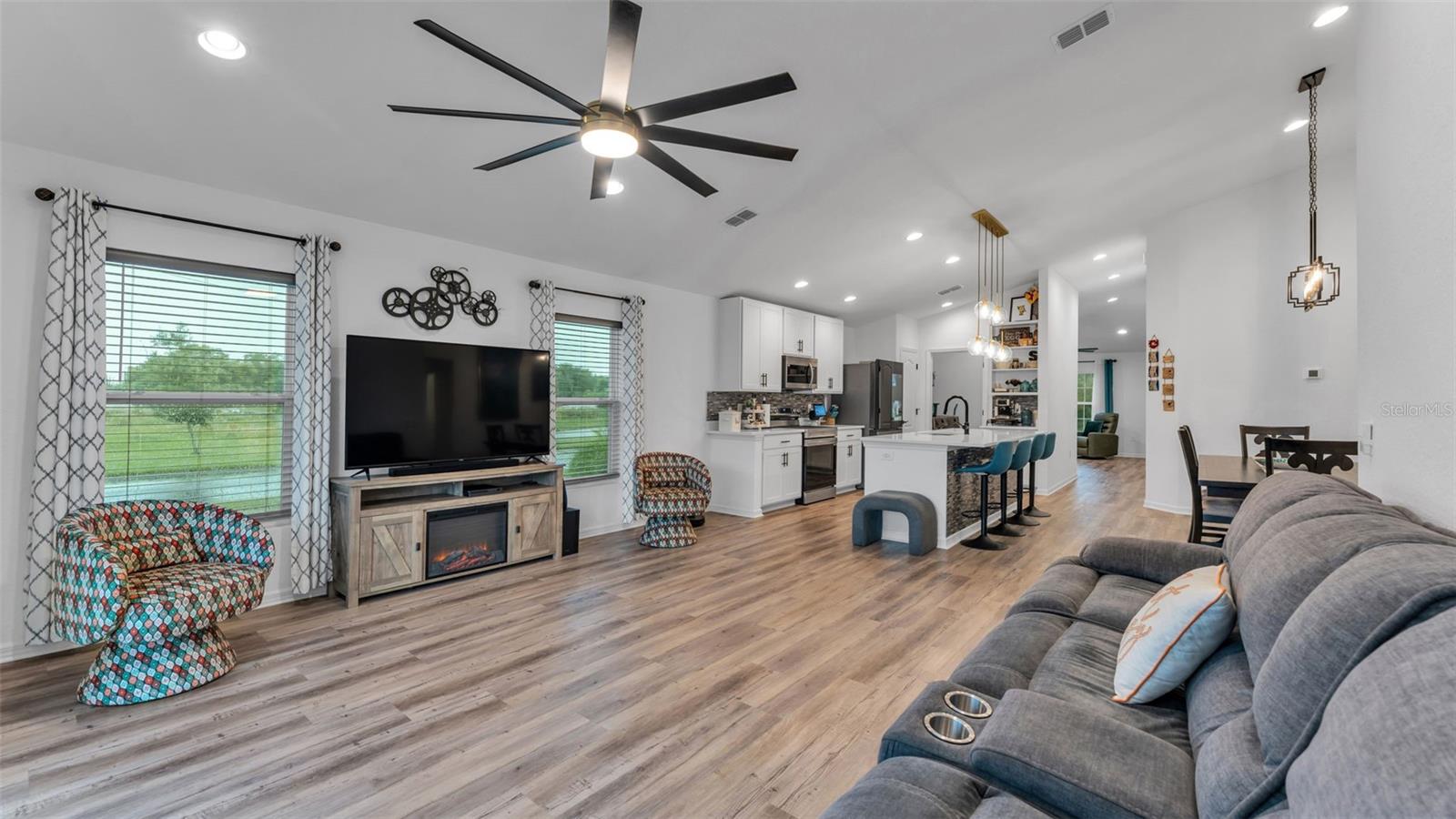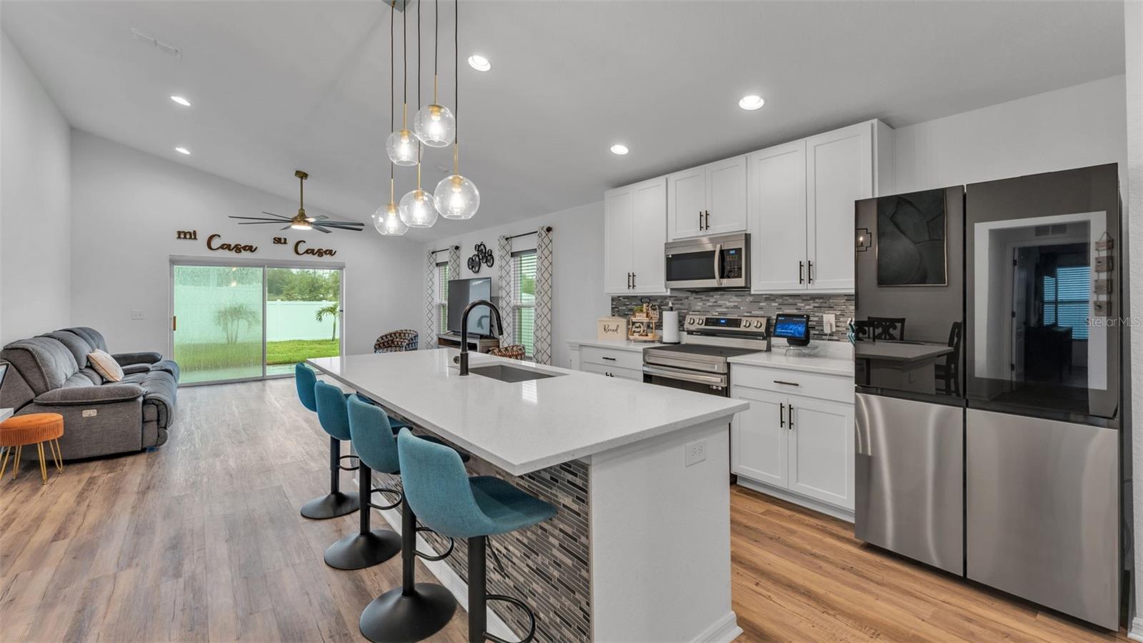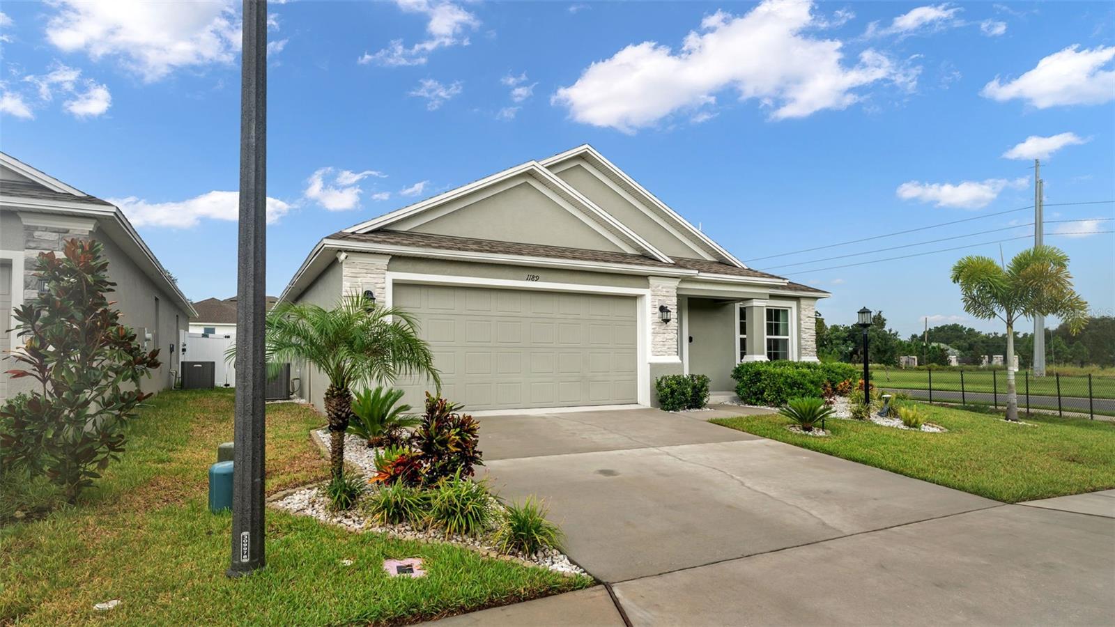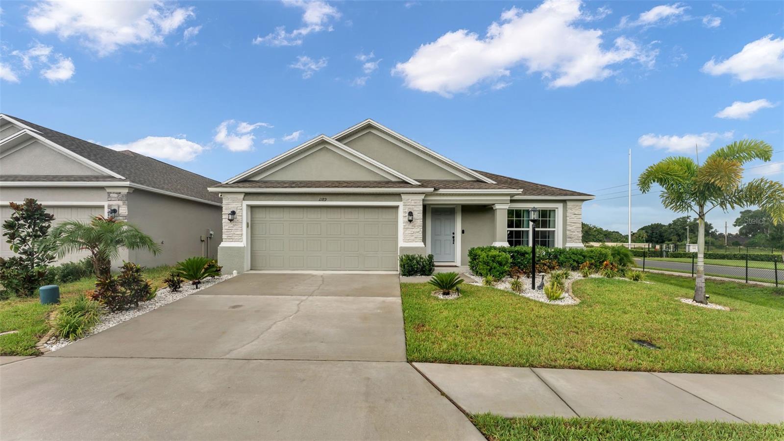 Welcome to this beautifully maintained, move-in ready home located in the highly sought-after Woodland Oaks, a gated Southern Homes development in South Lakeland. Ideally situated just off CR-540A and Carter Road, this community offers unbeatable convenience to several South Lakeland schools, shopping, dining, and more. Built in 2023 and offering 1,944 square feet of thoughtfully designed living space, this home combines comfort, functionality, and modern finishes throughout. Step inside to discover two spacious living areas--a formal great room and a cozy family room, providing ample space for both entertaining and everyday living. The home also comes equipped with upgraded ceiling fans and elegant lighting fixtures, and recently installed wood look laminate flooring throughout the entire home, including the bedrooms. The dining area overlooks the great room, creating an open, flowing layout that feels bright and welcoming. The kitchen with an island within the open living area is an absolute must see, featuring granite countertops, upgraded appliances, and sun-drenched windows throughout the common areas that flood the home with natural light. A stylish coffee bar or wine bar with built in cabinetry adds a touch of everyday luxury and flexibility to the space. Enjoy the ease of an interior laundry room with a washer and dryer included in the sale. The primary bedroom suite is privately located just off the dining area and includes a spacious ensuite bathroom with a water closet, garden tub, dual sink vanity, step-in shower, and an expansive walk-in closet. Down the hallway, you'll find three additional bedrooms, all similar in size, that share a well-appointed guest bathroom. Step outside through sliding glass doors to a large, private corner lot, fully enclosed with luxury vinyl fencing and a double gate for side yard access. A concrete patio just off the back offers the perfect space for outdoor relaxing, grilling, or entertaining guests. A home security system comes already installed with this home. The home's curb appeal shines with stone accents and a welcoming covered front entryway. But the lifestyle doesn't stop at your front door--Woodland Oaks comes packed with resort-style amenities, including a community pool, a covered lounge area with restrooms, dog park, and tennis, pickleball and basketball courts--all within this peaceful, gated community. Don't miss this opportunity to own a like-new, move-in ready home in one of South Lakeland's most desirable neighborhoods. Schedule your private tour today!