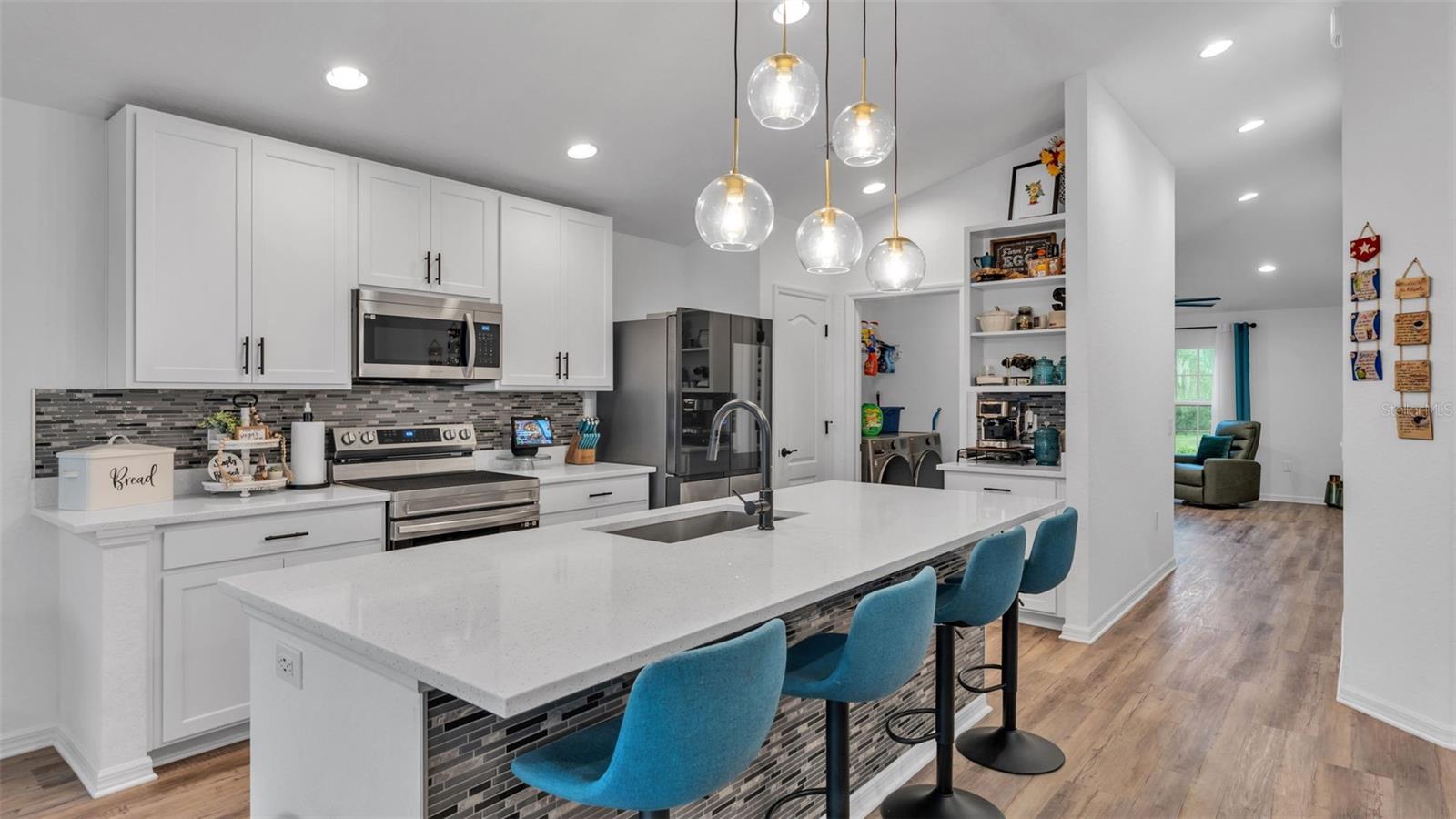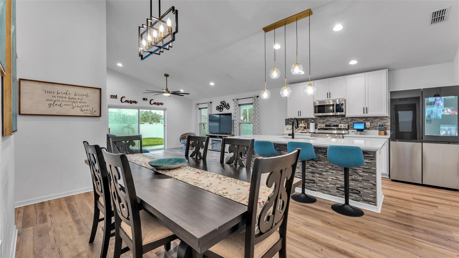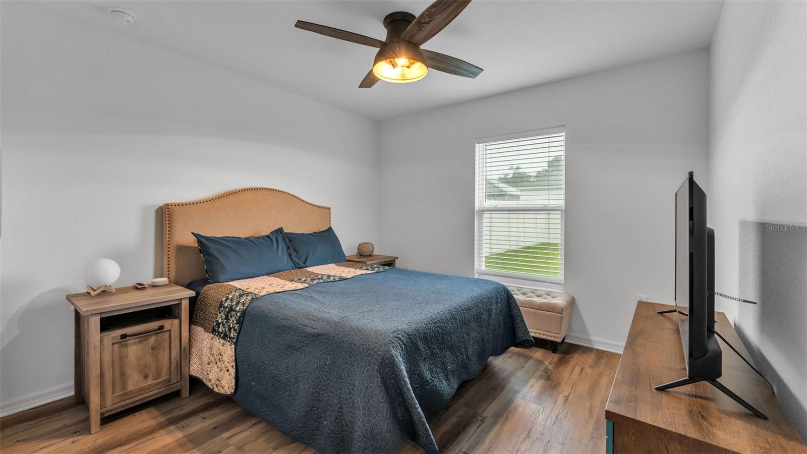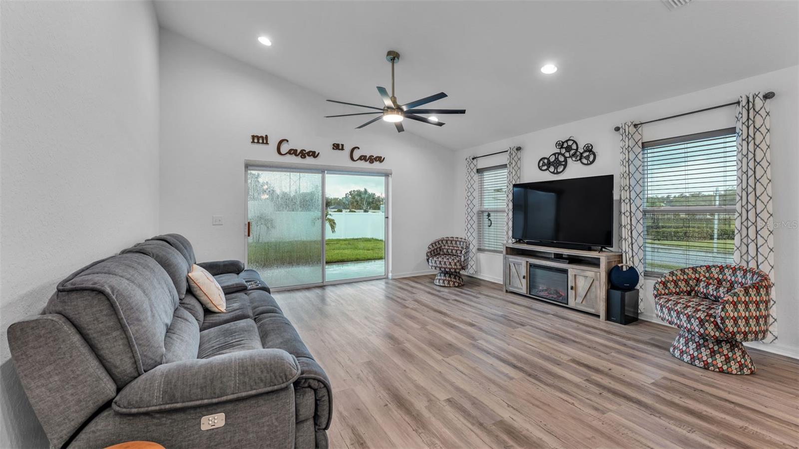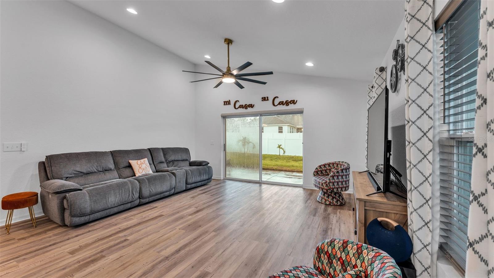 Welcome to this beautifully maintained, move-in ready home located in the highly sought-after Woodland Oaks, a gated Southern Homes development in South Lakeland. Ideally situated just off CR-540A and Carter Road, this community offers unbeatable convenience to several South Lakeland schools, shopping, dining, and more. Built in 2023 and offering 1,944 square feet of thoughtfully designed living space, this home combines comfort, functionality, and modern finishes throughout. Step inside to discover two spacious living areas--a formal great room and a cozy family room, providing ample space for both entertaining and everyday living. The home also comes equipped with upgraded ceiling fans and elegant lighting fixtures, and recently installed wood look laminate flooring throughout the entire home, including the bedrooms. The dining area overlooks the great room, creating an open, flowing layout that feels bright and welcoming. The kitchen with an island within the open living area is an absolute must see, featuring granite countertops, upgraded appliances, and sun-drenched windows throughout the common areas that flood the home with natural light. A stylish coffee bar or wine bar with built in cabinetry adds a touch of everyday luxury and flexibility to the space. Enjoy the ease of an interior laundry room with a washer and dryer included in the sale. The primary bedroom suite is privately located just off the dining area and includes a spacious ensuite bathroom with a water closet, garden tub, dual sink vanity, step-in shower, and an expansive walk-in closet. Down the hallway, you'll find three additional bedrooms, all similar in size, that share a well-appointed guest bathroom. Step outside through sliding glass doors to a large, private corner lot, fully enclosed with luxury vinyl fencing and a double gate for side yard access. A concrete patio just off the back offers the perfect space for outdoor relaxing, grilling, or entertaining guests. A home security system comes already installed with this home. The home's curb appeal shines with stone accents and a welcoming covered front entryway. But the lifestyle doesn't stop at your front door--Woodland Oaks comes packed with resort-style amenities, including a community pool, a covered lounge area with restrooms, dog park, and tennis, pickleball and basketball courts--all within this peaceful, gated community. Don't miss this opportunity to own a like-new, move-in ready home in one of South Lakeland's most desirable neighborhoods. Schedule your private tour today!