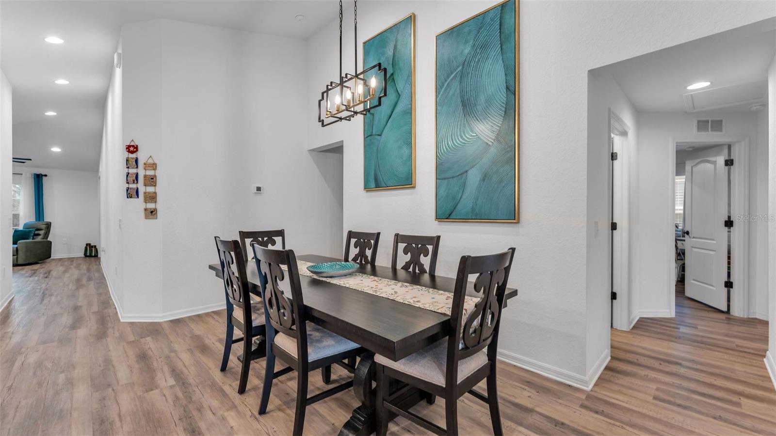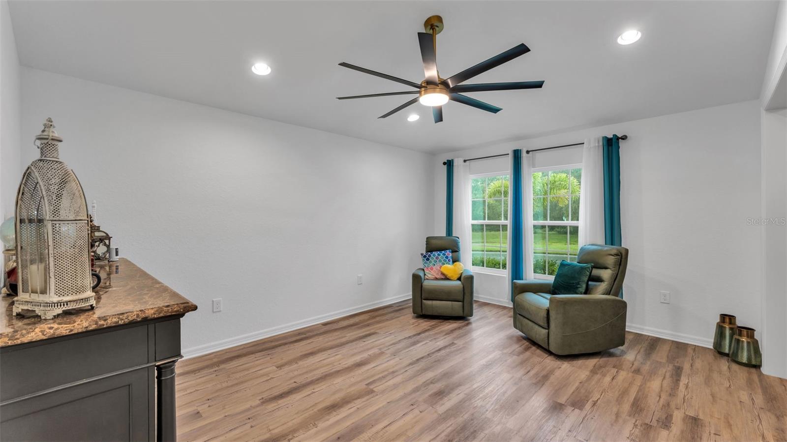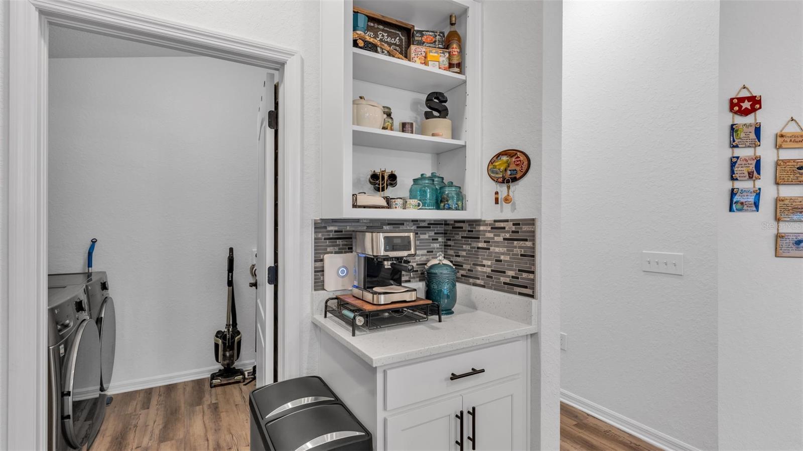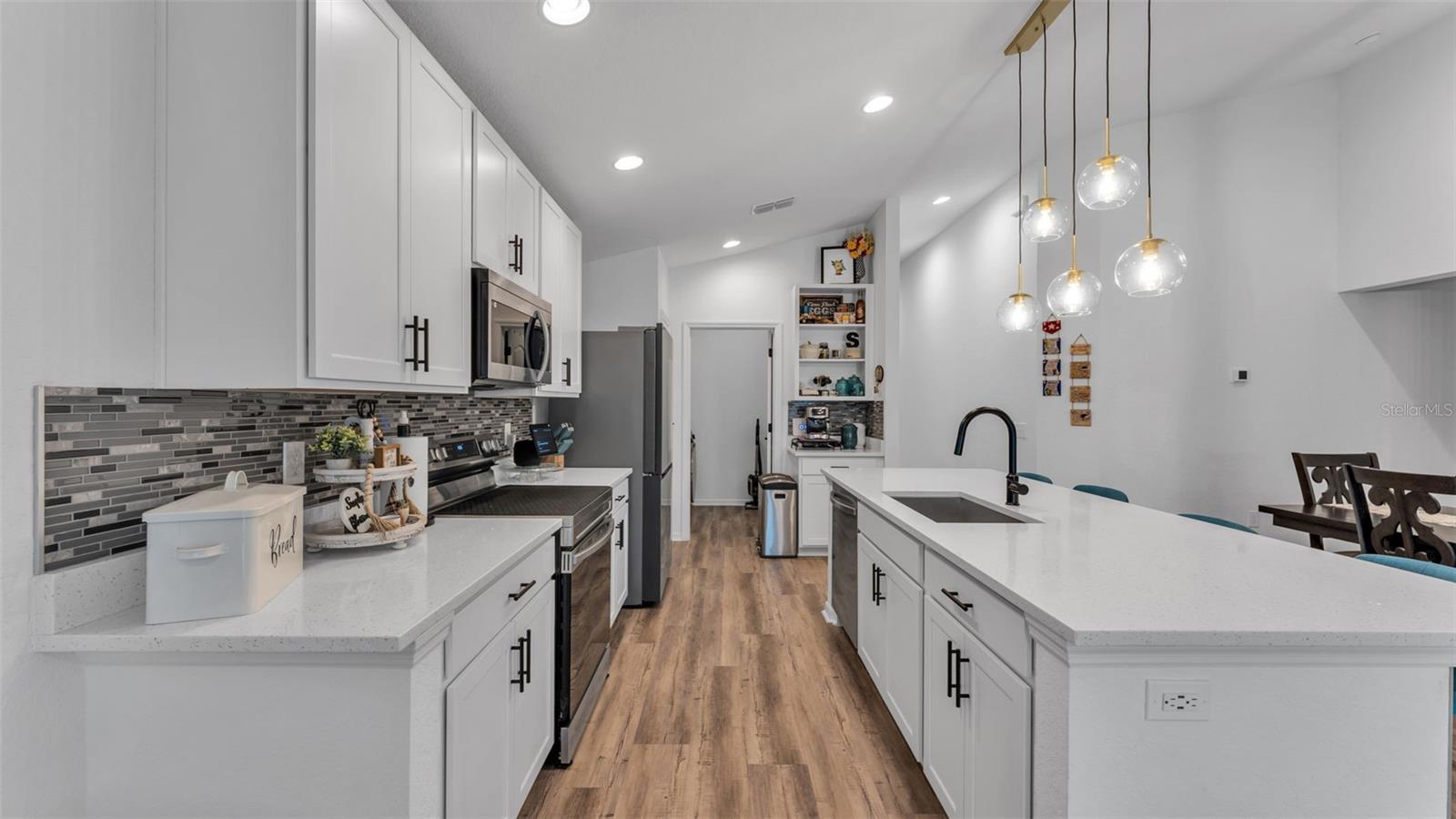 Welcome to this beautifully maintained, move-in ready home located in the highly sought-after Woodland Oaks, a gated Southern Homes development in South Lakeland. Ideally situated just off CR-540A and Carter Road, this community offers unbeatable convenience to several South Lakeland schools, shopping, dining, and more. Built in 2023 and offering 1,944 square feet of thoughtfully designed living space, this home combines comfort, functionality, and modern finishes throughout. Step inside to discover two spacious living areas--a formal great room and a cozy family room, providing ample space for both entertaining and everyday living. The home also comes equipped with upgraded ceiling fans and elegant lighting fixtures, and recently installed wood look laminate flooring throughout the entire home, including the bedrooms. The dining area overlooks the great room, creating an open, flowing layout that feels bright and welcoming. The kitchen with an island within the open living area is an absolute must see, featuring granite countertops, upgraded appliances, and sun-drenched windows throughout the common areas that flood the home with natural light. A stylish coffee bar or wine bar with built in cabinetry adds a touch of everyday luxury and flexibility to the space. Enjoy the ease of an interior laundry room with a washer and dryer included in the sale. The primary bedroom suite is privately located just off the dining area and includes a spacious ensuite bathroom with a water closet, garden tub, dual sink vanity, step-in shower, and an expansive walk-in closet. Down the hallway, you'll find three additional bedrooms, all similar in size, that share a well-appointed guest bathroom. Step outside through sliding glass doors to a large, private corner lot, fully enclosed with luxury vinyl fencing and a double gate for side yard access. A concrete patio just off the back offers the perfect space for outdoor relaxing, grilling, or entertaining guests. A home security system comes already installed with this home. The home's curb appeal shines with stone accents and a welcoming covered front entryway. But the lifestyle doesn't stop at your front door--Woodland Oaks comes packed with resort-style amenities, including a community pool, a covered lounge area with restrooms, dog park, and tennis, pickleball and basketball courts--all within this peaceful, gated community. Don't miss this opportunity to own a like-new, move-in ready home in one of South Lakeland's most desirable neighborhoods. Schedule your private tour today!