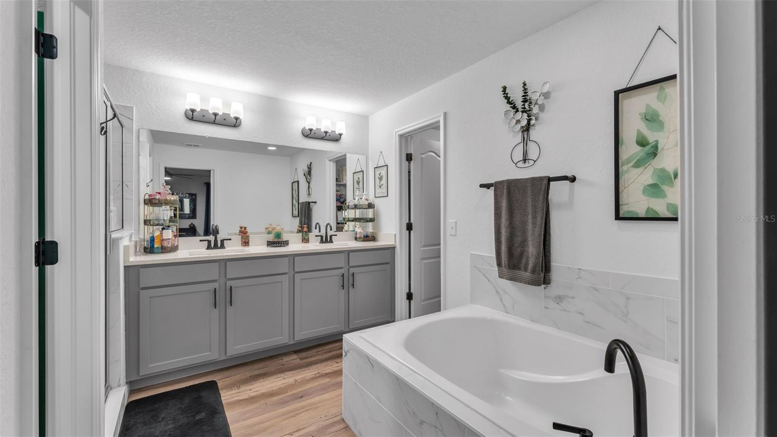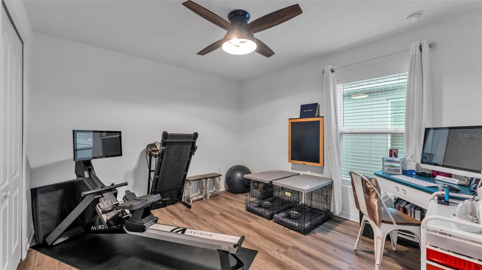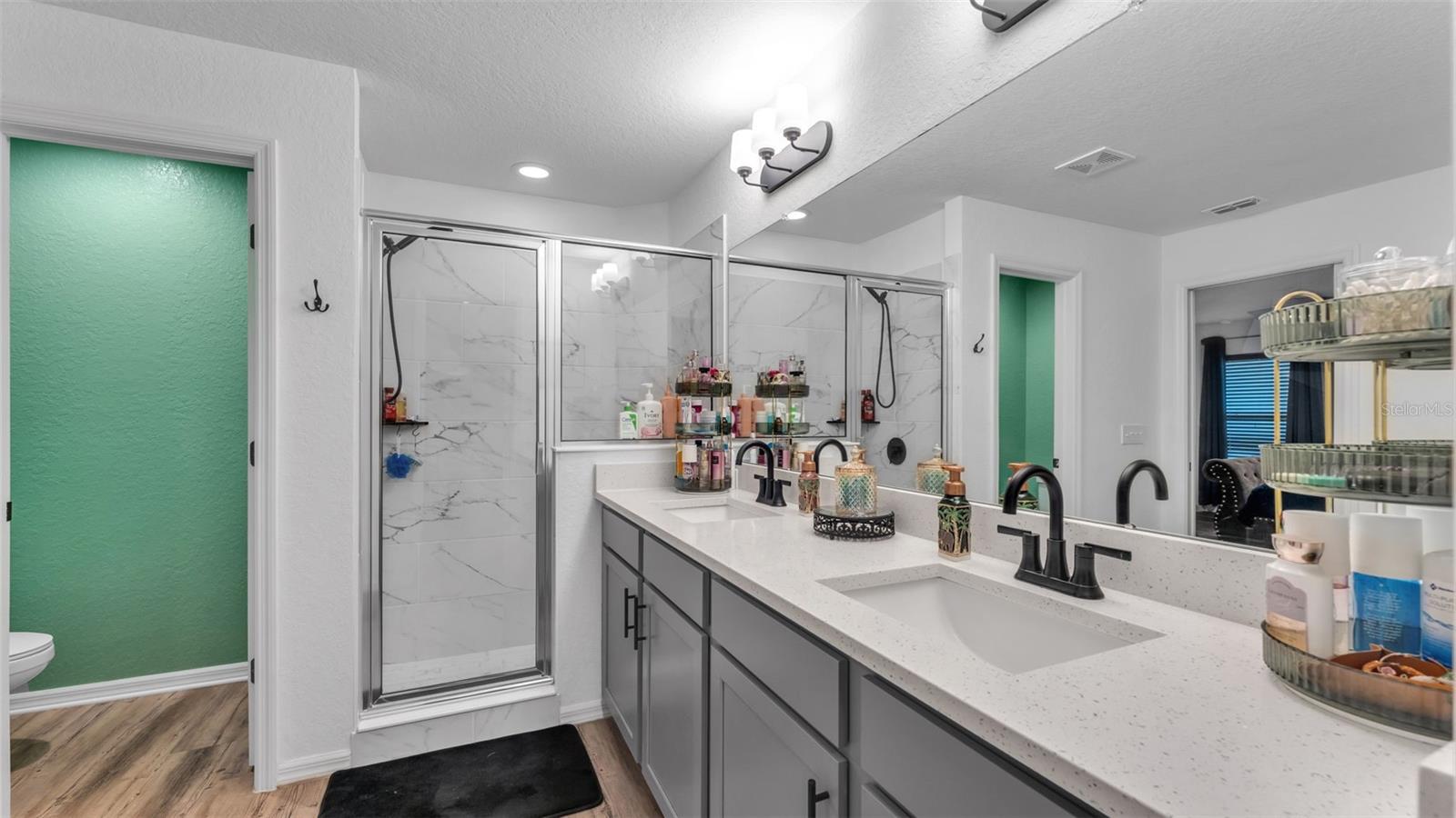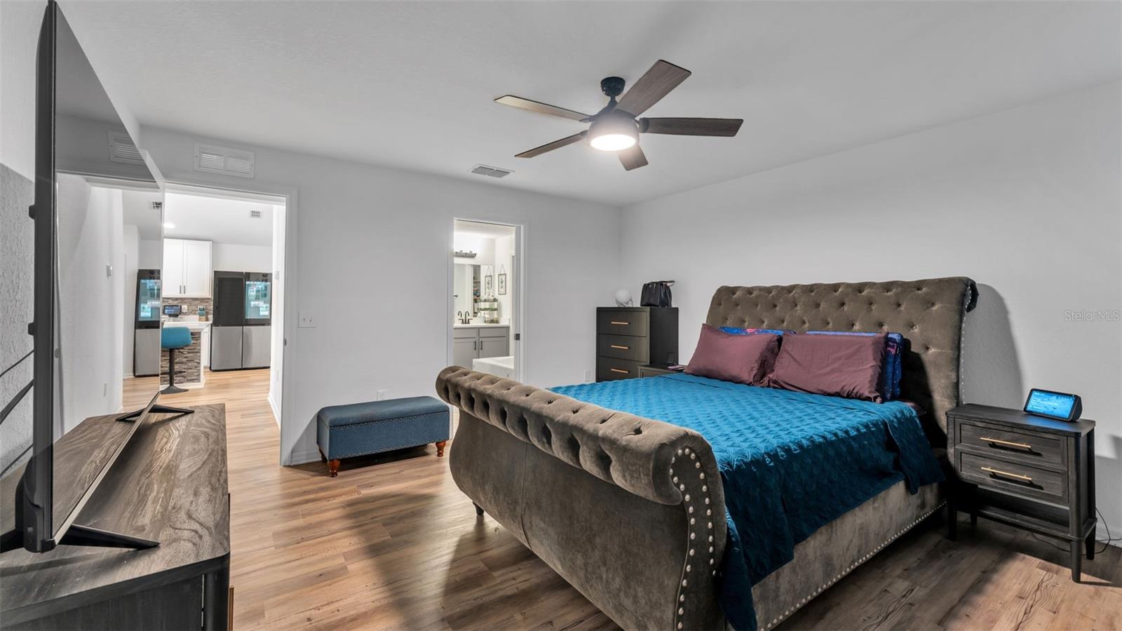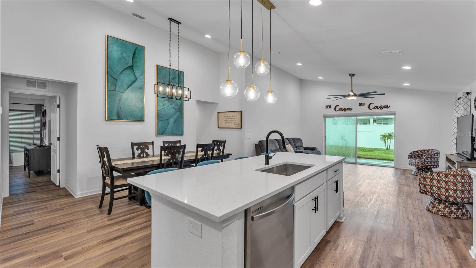 Welcome to this beautifully maintained, move-in ready home located in the highly sought-after Woodland Oaks, a gated Southern Homes development in South Lakeland. Ideally situated just off CR-540A and Carter Road, this community offers unbeatable convenience to several South Lakeland schools, shopping, dining, and more. Built in 2023 and offering 1,944 square feet of thoughtfully designed living space, this home combines comfort, functionality, and modern finishes throughout. Step inside to discover two spacious living areas--a formal great room and a cozy family room, providing ample space for both entertaining and everyday living. The home also comes equipped with upgraded ceiling fans and elegant lighting fixtures, and recently installed wood look laminate flooring throughout the entire home, including the bedrooms. The dining area overlooks the great room, creating an open, flowing layout that feels bright and welcoming. The kitchen with an island within the open living area is an absolute must see, featuring granite countertops, upgraded appliances, and sun-drenched windows throughout the common areas that flood the home with natural light. A stylish coffee bar or wine bar with built in cabinetry adds a touch of everyday luxury and flexibility to the space. Enjoy the ease of an interior laundry room with a washer and dryer included in the sale. The primary bedroom suite is privately located just off the dining area and includes a spacious ensuite bathroom with a water closet, garden tub, dual sink vanity, step-in shower, and an expansive walk-in closet. Down the hallway, you'll find three additional bedrooms, all similar in size, that share a well-appointed guest bathroom. Step outside through sliding glass doors to a large, private corner lot, fully enclosed with luxury vinyl fencing and a double gate for side yard access. A concrete patio just off the back offers the perfect space for outdoor relaxing, grilling, or entertaining guests. A home security system comes already installed with this home. The home's curb appeal shines with stone accents and a welcoming covered front entryway. But the lifestyle doesn't stop at your front door--Woodland Oaks comes packed with resort-style amenities, including a community pool, a covered lounge area with restrooms, dog park, and tennis, pickleball and basketball courts--all within this peaceful, gated community. Don't miss this opportunity to own a like-new, move-in ready home in one of South Lakeland's most desirable neighborhoods. Schedule your private tour today!