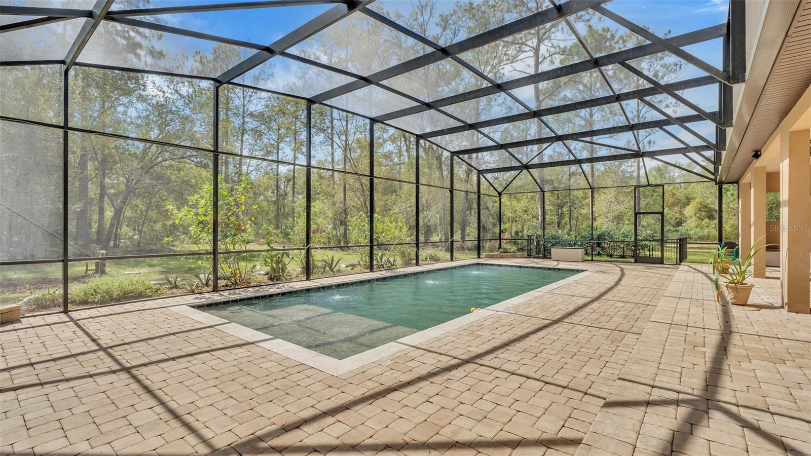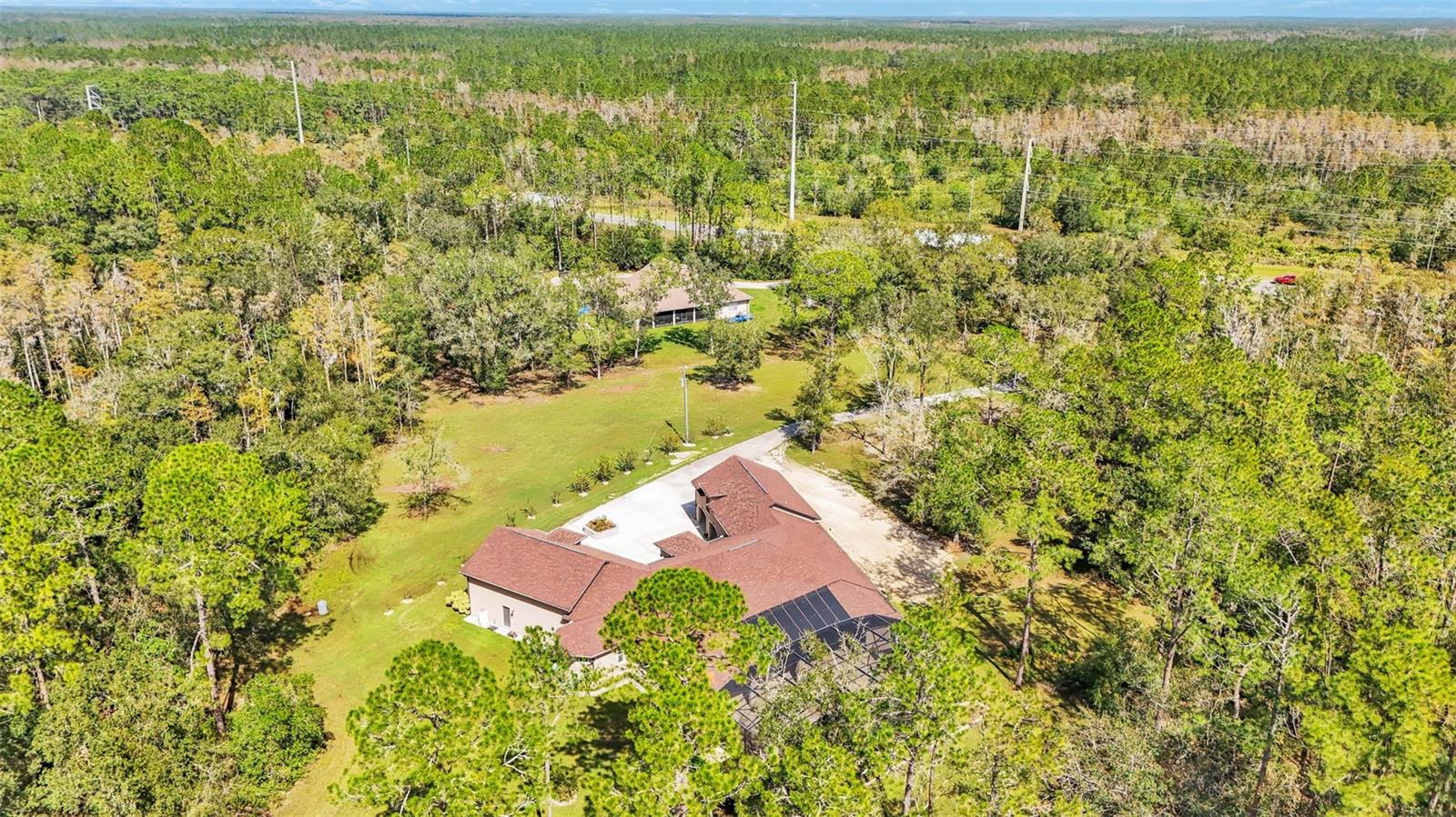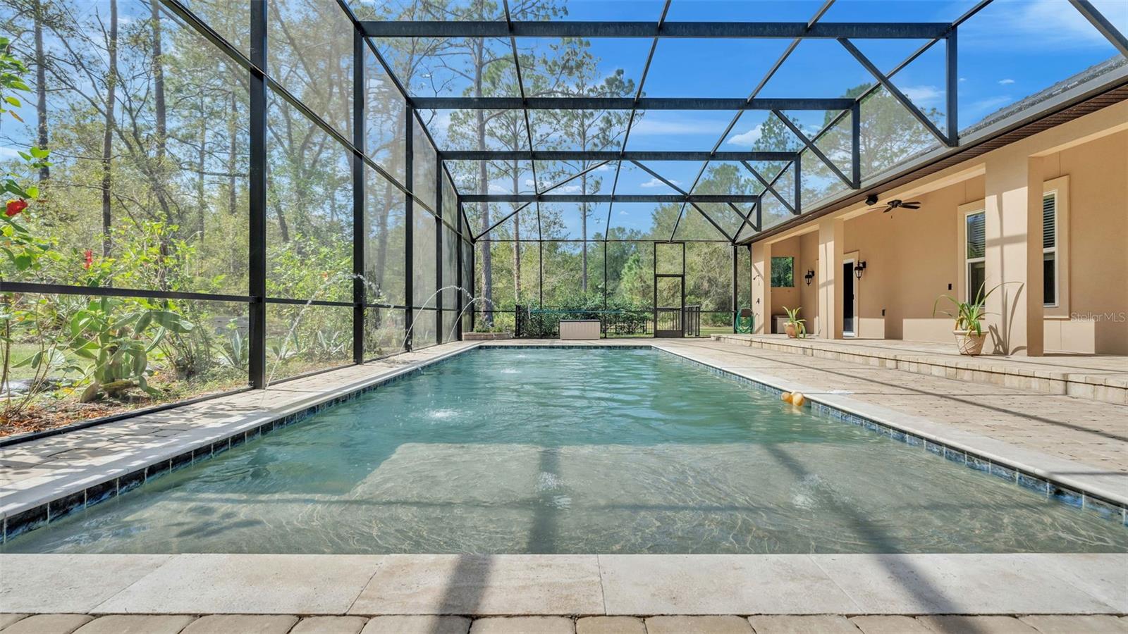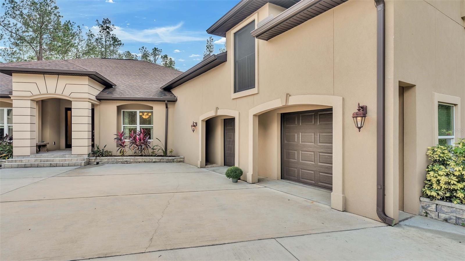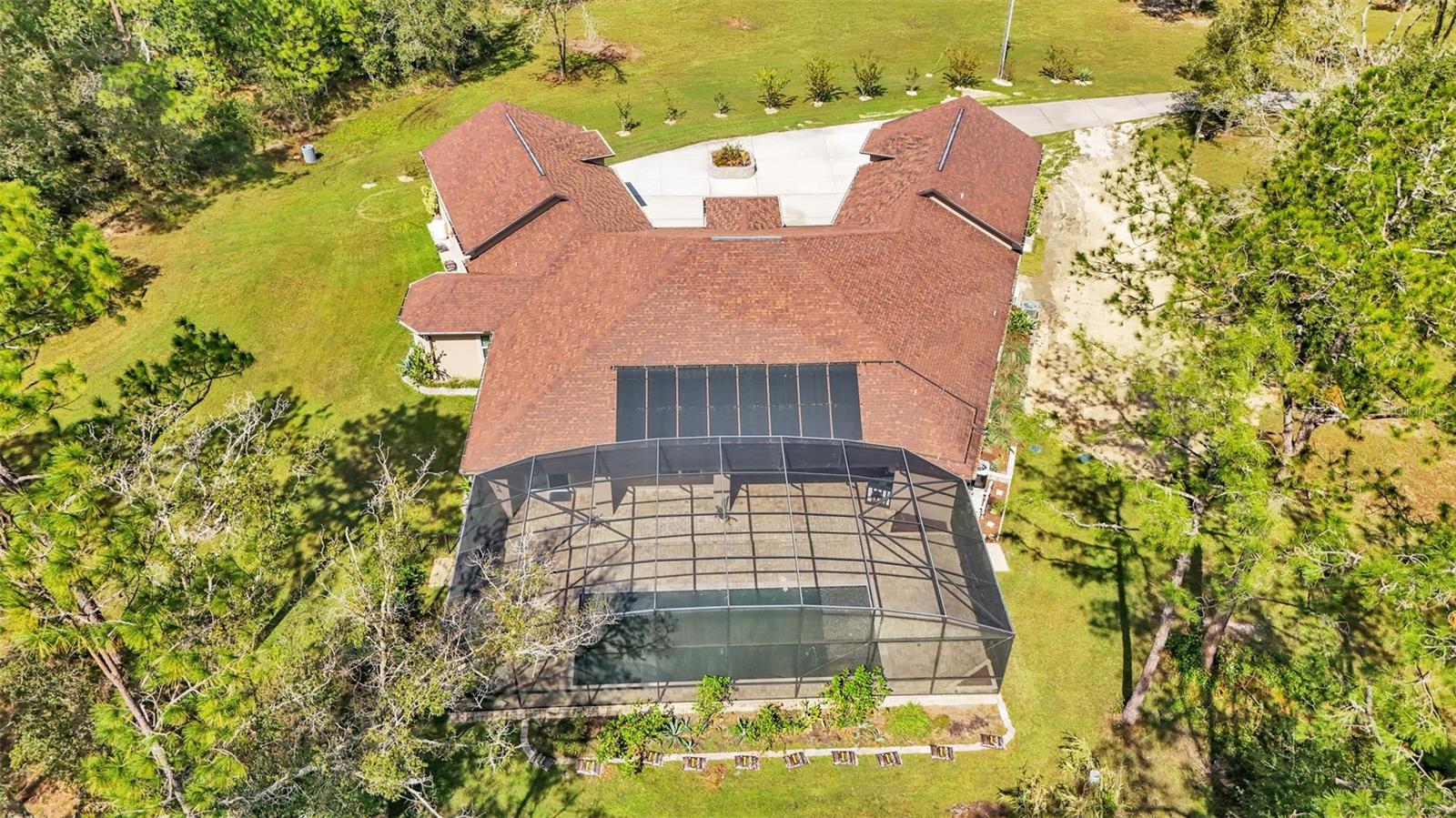 One or more photo(s) has been virtually staged. Welcome to luxury living in a country setting! You're sure to be thrilled by this custom-built 5 bedroom and 4.5 bath home, boasting 4,331 square feet of living space. The 4.94 acre property's long driveway brings you far from the street while a surrounding tree line bolsters an air of private extravagance. A pair of two-car garages flank the front entry, and beyond the glass-paned doorway you'll find elegant tiling adorning the floor of the foyer. High, 10 foot ceilings persist through the home, heightened further by tray ceilings in many of the common areas and neatly framed with beautiful crown molding. Wood pattern tiling begins at the foot of the foyer and continues through the home as well. The living room is the spacious heart of the home, its own ceiling uniquely patterned with a series of recessed rectangles. An electric fireplace and triple-pane sliding glass door to the pool patio accentuate the already-impressive room. The neighboring kitchen is spacious and pristine with light stone countertops along the walls and atop the central island with built-in microwave. Dark subway tiling gives tasteful contrast between the counter and cabinets above. The home presents a split floor plan with each of the wings containing a separate stairway to rooms on the second floor. Two of the bedrooms share a bathroom while the third and forth each enjoy their own. The primary bedroom lies on the first floor, and is a spacious room with tray ceiling and its own sliding door to the pool patio. An abundance of storage space can be found in the generously sized walk-in closet, complete with built in shelving. The primary bathroom is of a unique quality, its walk-in u-turn style shower tiled with elegant stone shades and accompanied by convenient bench seating below a pair of shower heads. Throughout the rest of the home you'll find an office with built-in Victorian shelving, a large bonus room, and screened in balcony space outside of the second-floor bedroom. But there's even more to this property as you continue to the immense covered patio at the rear of the home, furnished with its own outdoor kitchen and pair of fans along the high ceiling. Paver flooring stretches toward and around the pool, all of which is enclosed within the screened pool cage. Equipped with both a conventional and solar pool heater, this outdoor space is ready for your enjoyment no matter the weather. The home's water softener as well as gas stove and dryer are just a few of the conveniences you'll find within this private paradise. Just off of Hwy 98 N in North Lakeland, this extravagant home remains close to the city while enjoying the blissful privacy of its 4.94 acre lot. An adjacent 5 acre lot is vacant, and currently listed for sale as well.