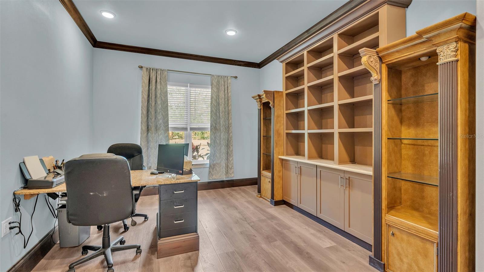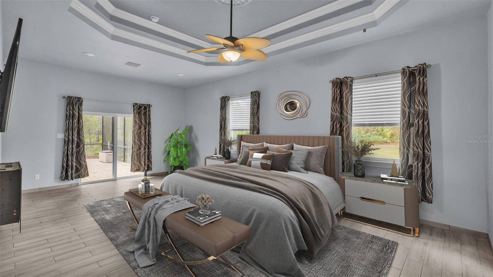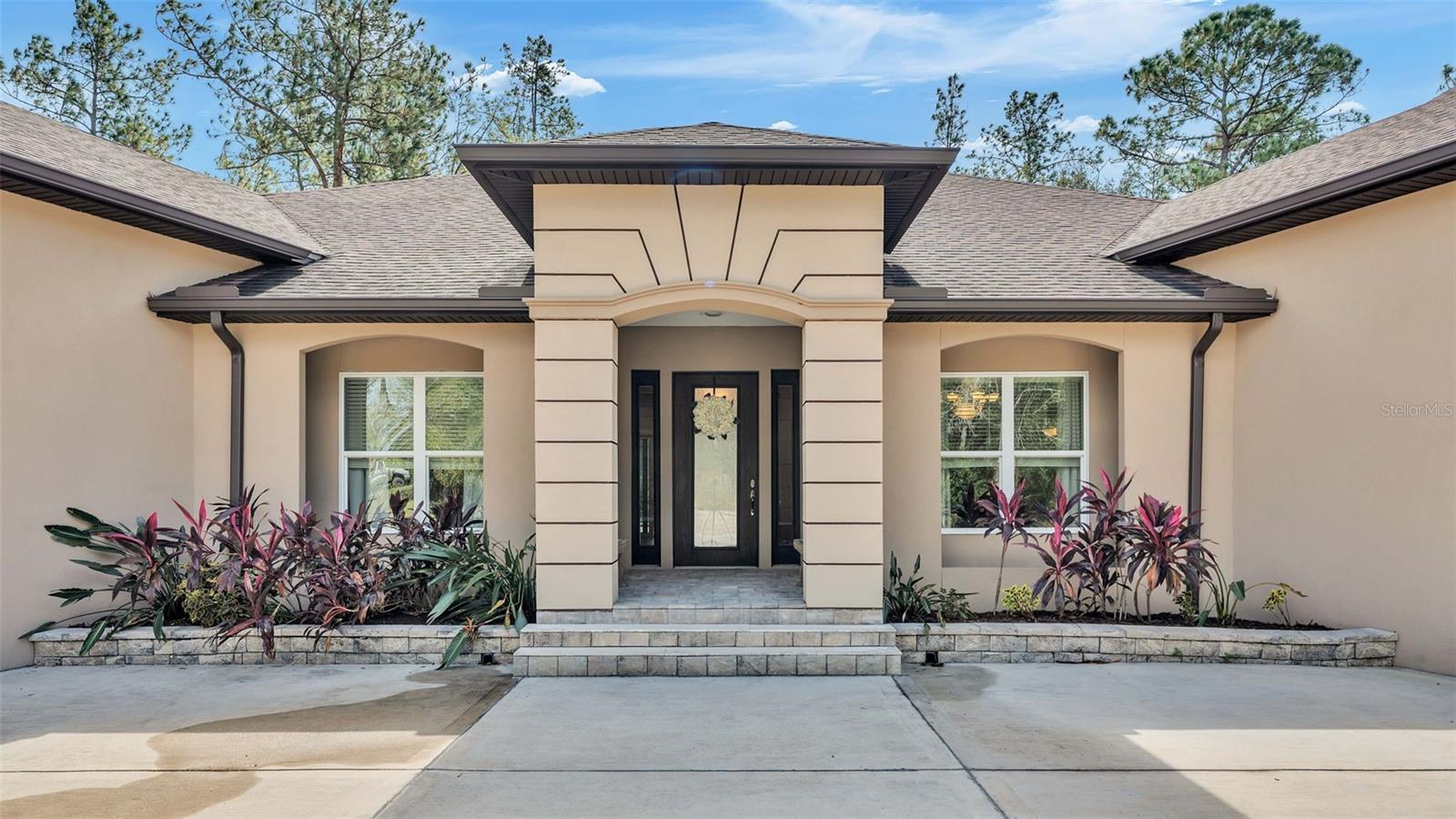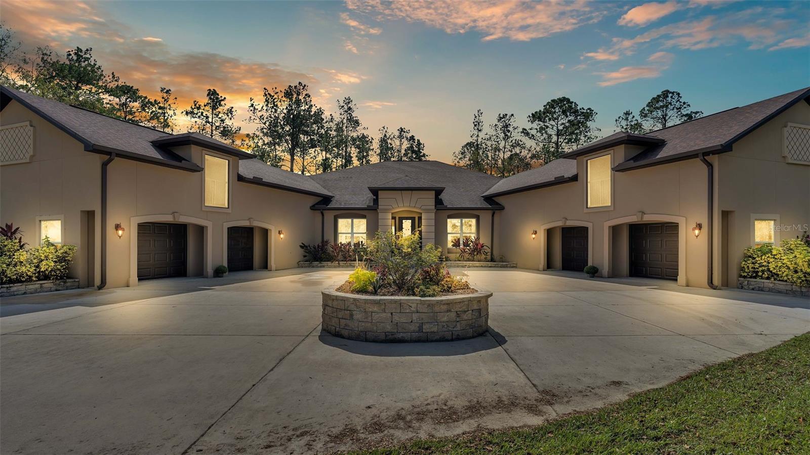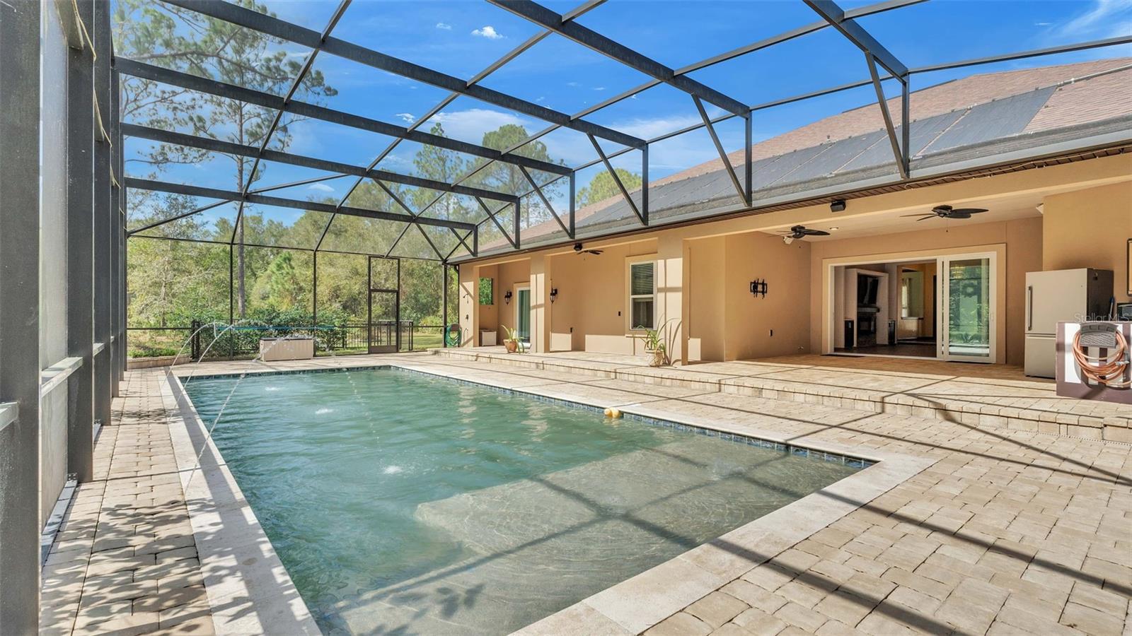 One or more photo(s) has been virtually staged. Welcome to luxury living in a country setting! You're sure to be thrilled by this custom-built 5 bedroom and 4.5 bath home, boasting 4,331 square feet of living space. The 4.94 acre property's long driveway brings you far from the street while a surrounding tree line bolsters an air of private extravagance. A pair of two-car garages flank the front entry, and beyond the glass-paned doorway you'll find elegant tiling adorning the floor of the foyer. High, 10 foot ceilings persist through the home, heightened further by tray ceilings in many of the common areas and neatly framed with beautiful crown molding. Wood pattern tiling begins at the foot of the foyer and continues through the home as well. The living room is the spacious heart of the home, its own ceiling uniquely patterned with a series of recessed rectangles. An electric fireplace and triple-pane sliding glass door to the pool patio accentuate the already-impressive room. The neighboring kitchen is spacious and pristine with light stone countertops along the walls and atop the central island with built-in microwave. Dark subway tiling gives tasteful contrast between the counter and cabinets above. The home presents a split floor plan with each of the wings containing a separate stairway to rooms on the second floor. Two of the bedrooms share a bathroom while the third and forth each enjoy their own. The primary bedroom lies on the first floor, and is a spacious room with tray ceiling and its own sliding door to the pool patio. An abundance of storage space can be found in the generously sized walk-in closet, complete with built in shelving. The primary bathroom is of a unique quality, its walk-in u-turn style shower tiled with elegant stone shades and accompanied by convenient bench seating below a pair of shower heads. Throughout the rest of the home you'll find an office with built-in Victorian shelving, a large bonus room, and screened in balcony space outside of the second-floor bedroom. But there's even more to this property as you continue to the immense covered patio at the rear of the home, furnished with its own outdoor kitchen and pair of fans along the high ceiling. Paver flooring stretches toward and around the pool, all of which is enclosed within the screened pool cage. Equipped with both a conventional and solar pool heater, this outdoor space is ready for your enjoyment no matter the weather. The home's water softener as well as gas stove and dryer are just a few of the conveniences you'll find within this private paradise. Just off of Hwy 98 N in North Lakeland, this extravagant home remains close to the city while enjoying the blissful privacy of its 4.94 acre lot. An adjacent 5 acre lot is vacant, and currently listed for sale as well.