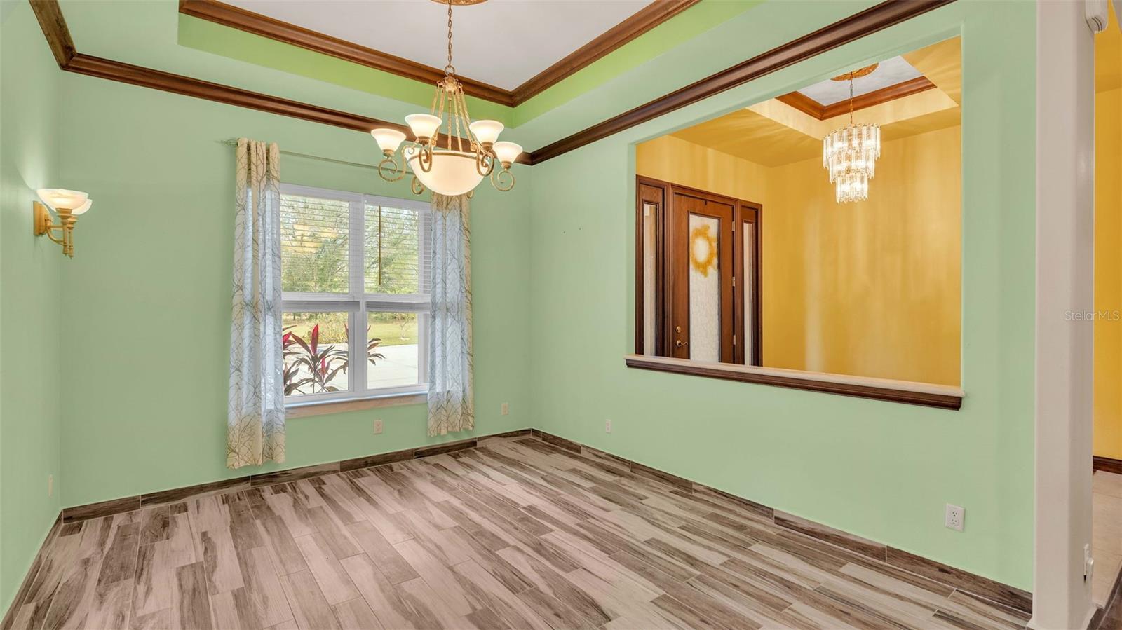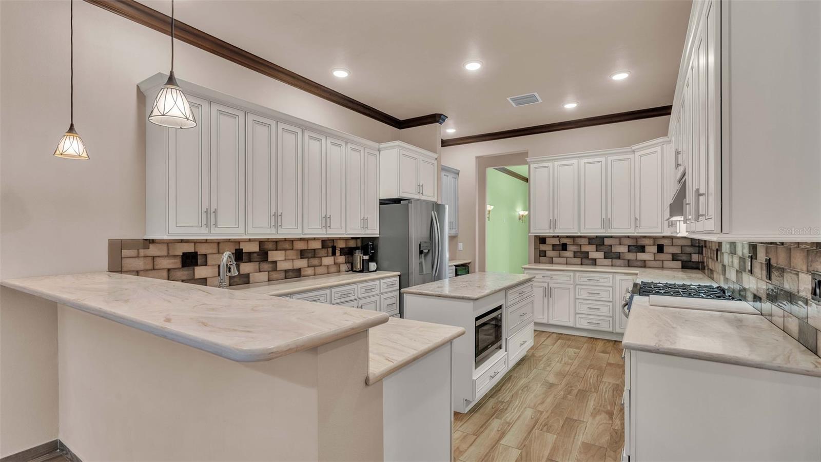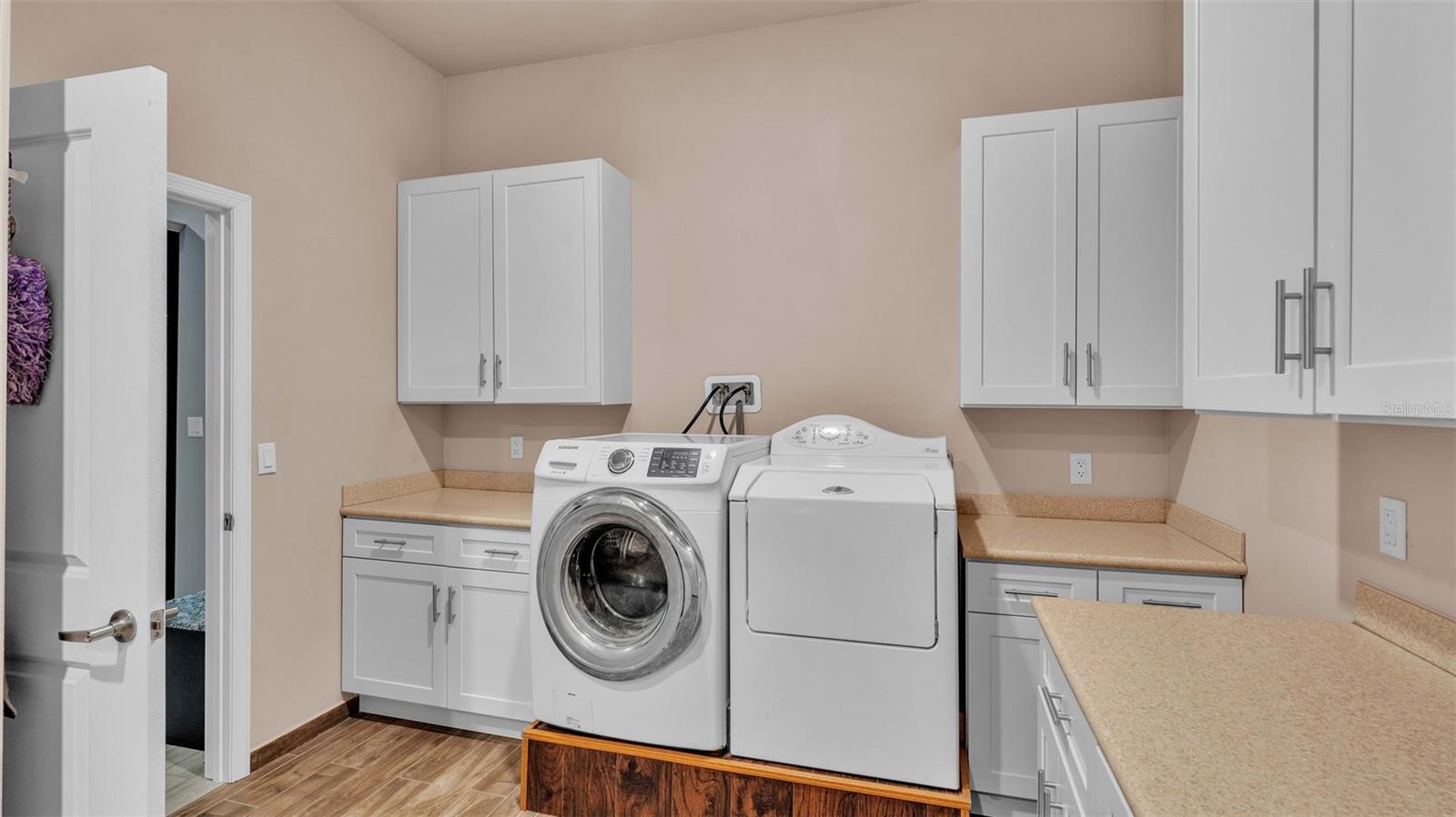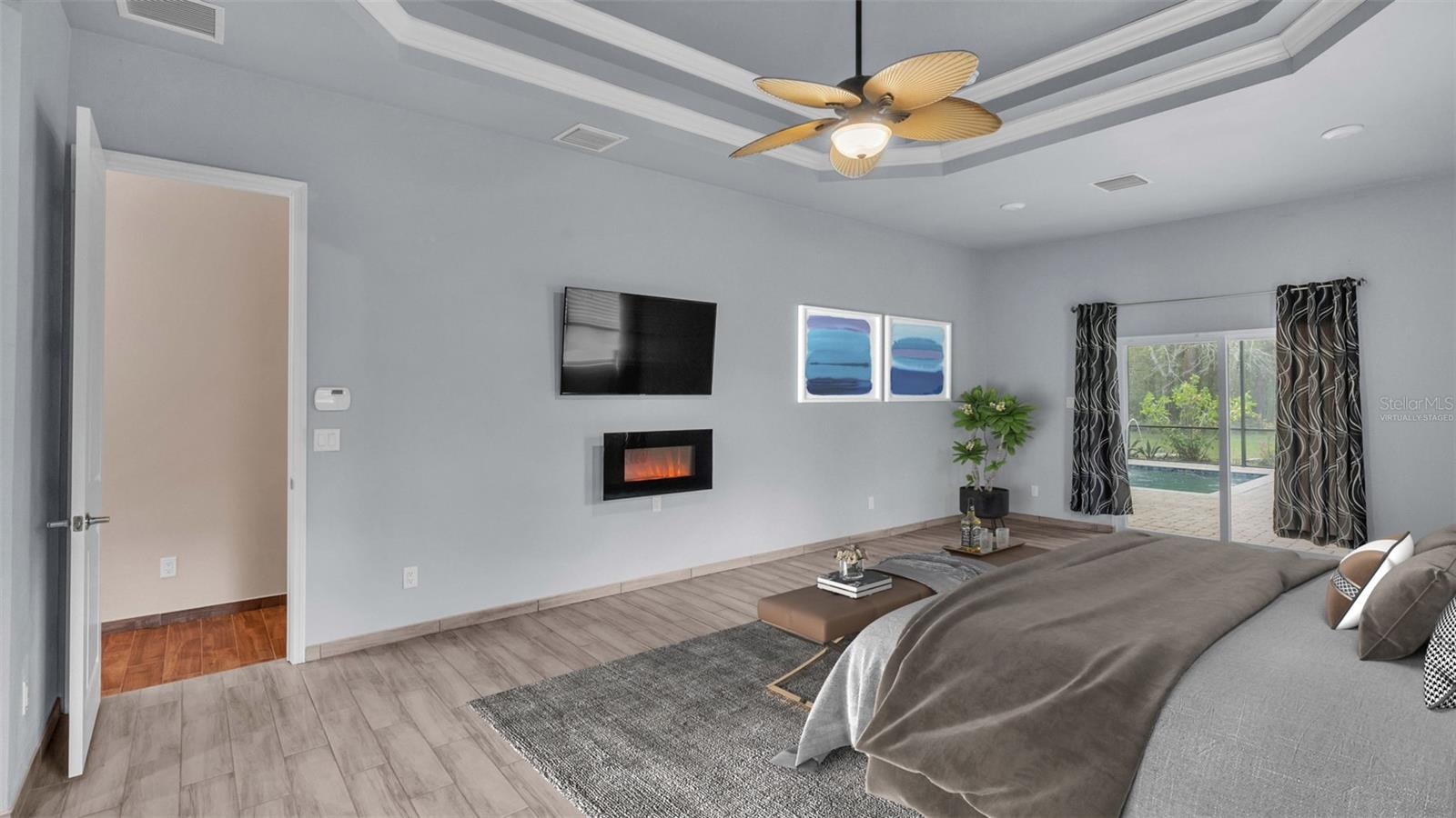 One or more photo(s) has been virtually staged. Welcome to luxury living in a country setting! You're sure to be thrilled by this custom-built 5 bedroom and 4.5 bath home, boasting 4,331 square feet of living space. The 4.94 acre property's long driveway brings you far from the street while a surrounding tree line bolsters an air of private extravagance. A pair of two-car garages flank the front entry, and beyond the glass-paned doorway you'll find elegant tiling adorning the floor of the foyer. High, 10 foot ceilings persist through the home, heightened further by tray ceilings in many of the common areas and neatly framed with beautiful crown molding. Wood pattern tiling begins at the foot of the foyer and continues through the home as well. The living room is the spacious heart of the home, its own ceiling uniquely patterned with a series of recessed rectangles. An electric fireplace and triple-pane sliding glass door to the pool patio accentuate the already-impressive room. The neighboring kitchen is spacious and pristine with light stone countertops along the walls and atop the central island with built-in microwave. Dark subway tiling gives tasteful contrast between the counter and cabinets above. The home presents a split floor plan with each of the wings containing a separate stairway to rooms on the second floor. Two of the bedrooms share a bathroom while the third and forth each enjoy their own. The primary bedroom lies on the first floor, and is a spacious room with tray ceiling and its own sliding door to the pool patio. An abundance of storage space can be found in the generously sized walk-in closet, complete with built in shelving. The primary bathroom is of a unique quality, its walk-in u-turn style shower tiled with elegant stone shades and accompanied by convenient bench seating below a pair of shower heads. Throughout the rest of the home you'll find an office with built-in Victorian shelving, a large bonus room, and screened in balcony space outside of the second-floor bedroom. But there's even more to this property as you continue to the immense covered patio at the rear of the home, furnished with its own outdoor kitchen and pair of fans along the high ceiling. Paver flooring stretches toward and around the pool, all of which is enclosed within the screened pool cage. Equipped with both a conventional and solar pool heater, this outdoor space is ready for your enjoyment no matter the weather. The home's water softener as well as gas stove and dryer are just a few of the conveniences you'll find within this private paradise. Just off of Hwy 98 N in North Lakeland, this extravagant home remains close to the city while enjoying the blissful privacy of its 4.94 acre lot. An adjacent 5 acre lot is vacant, and currently listed for sale as well.