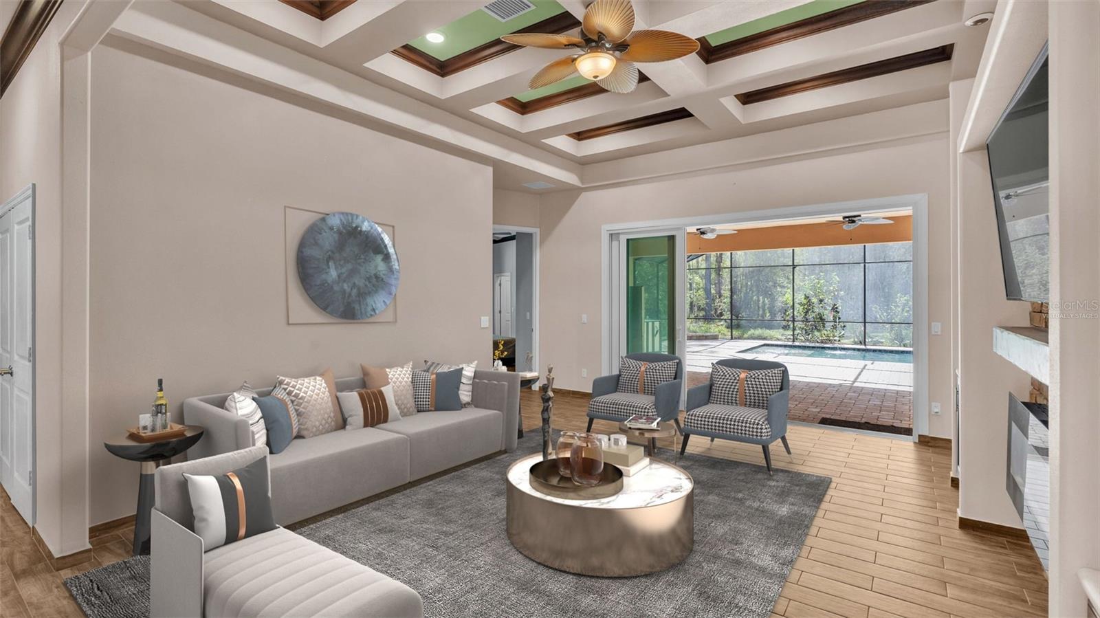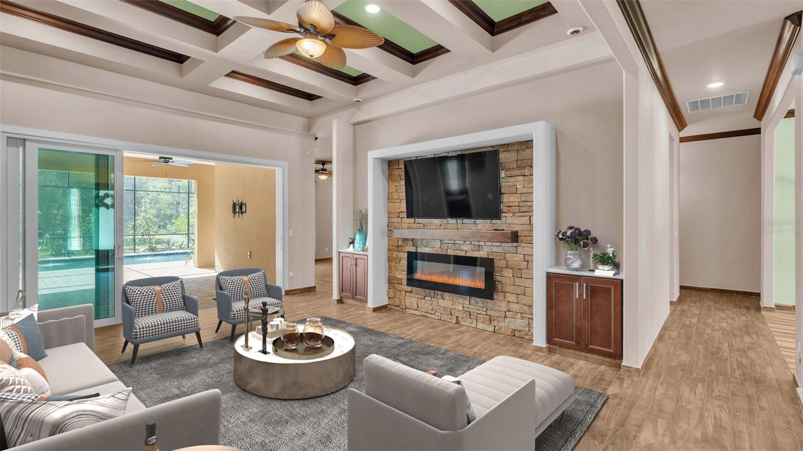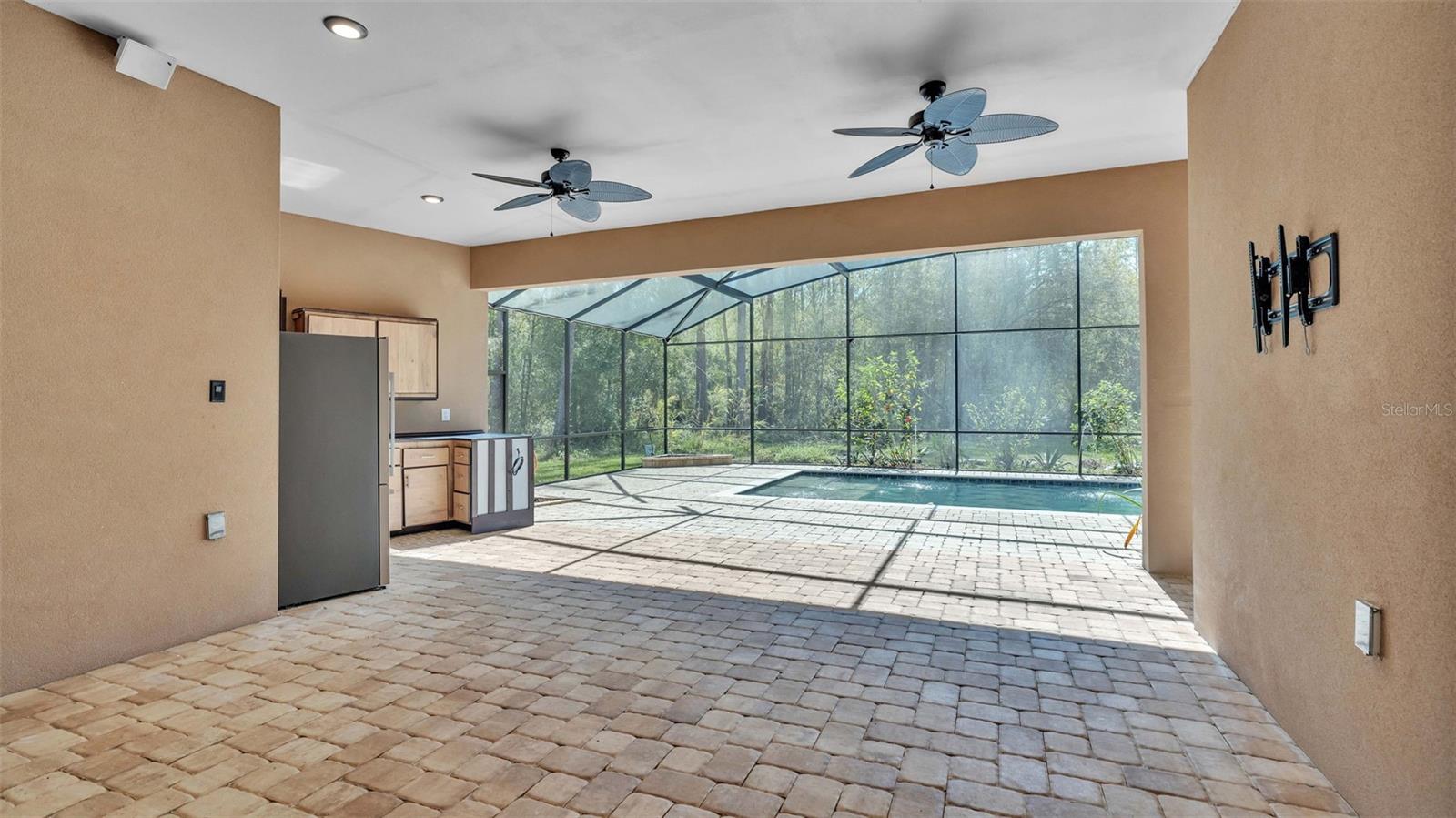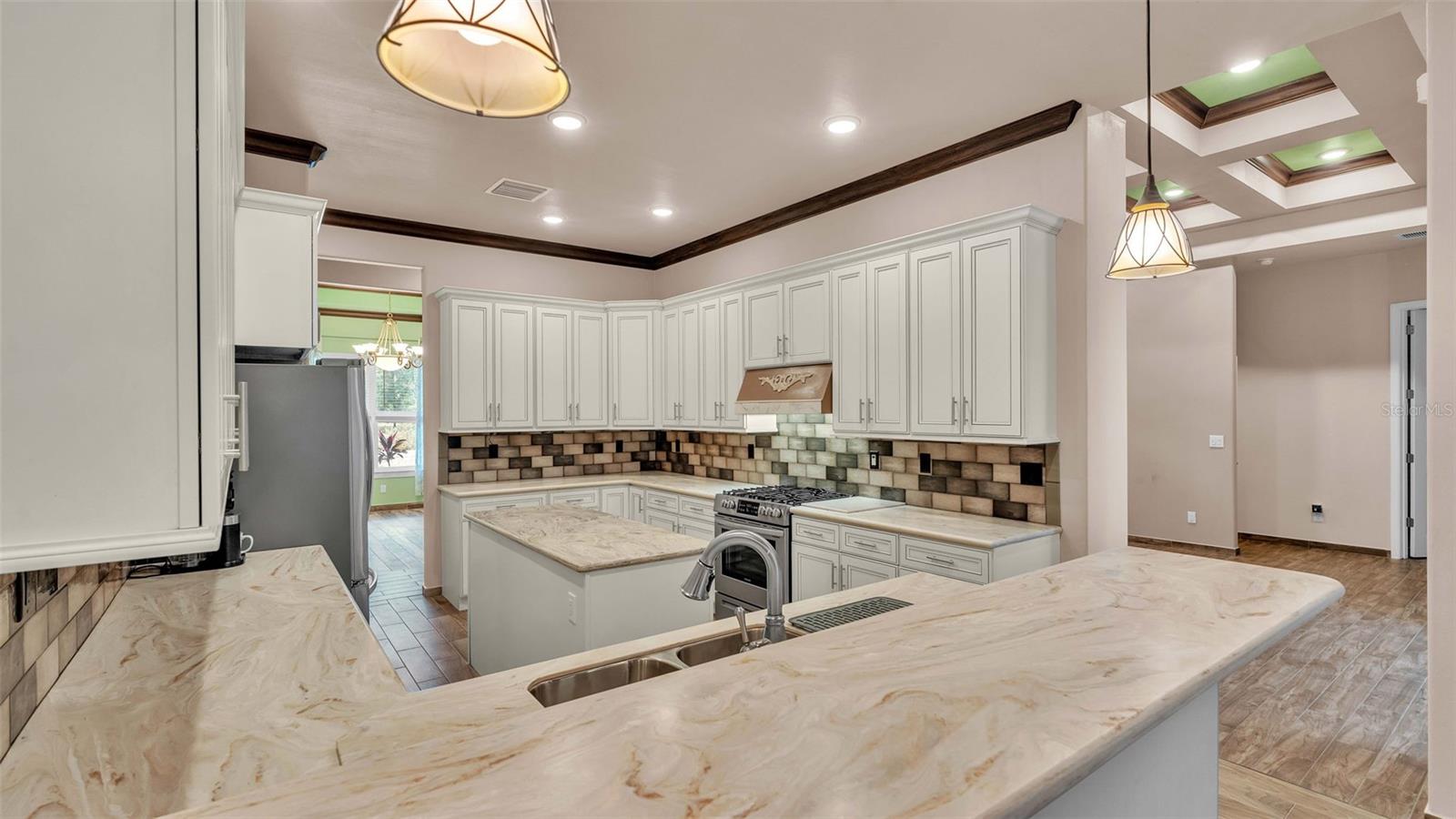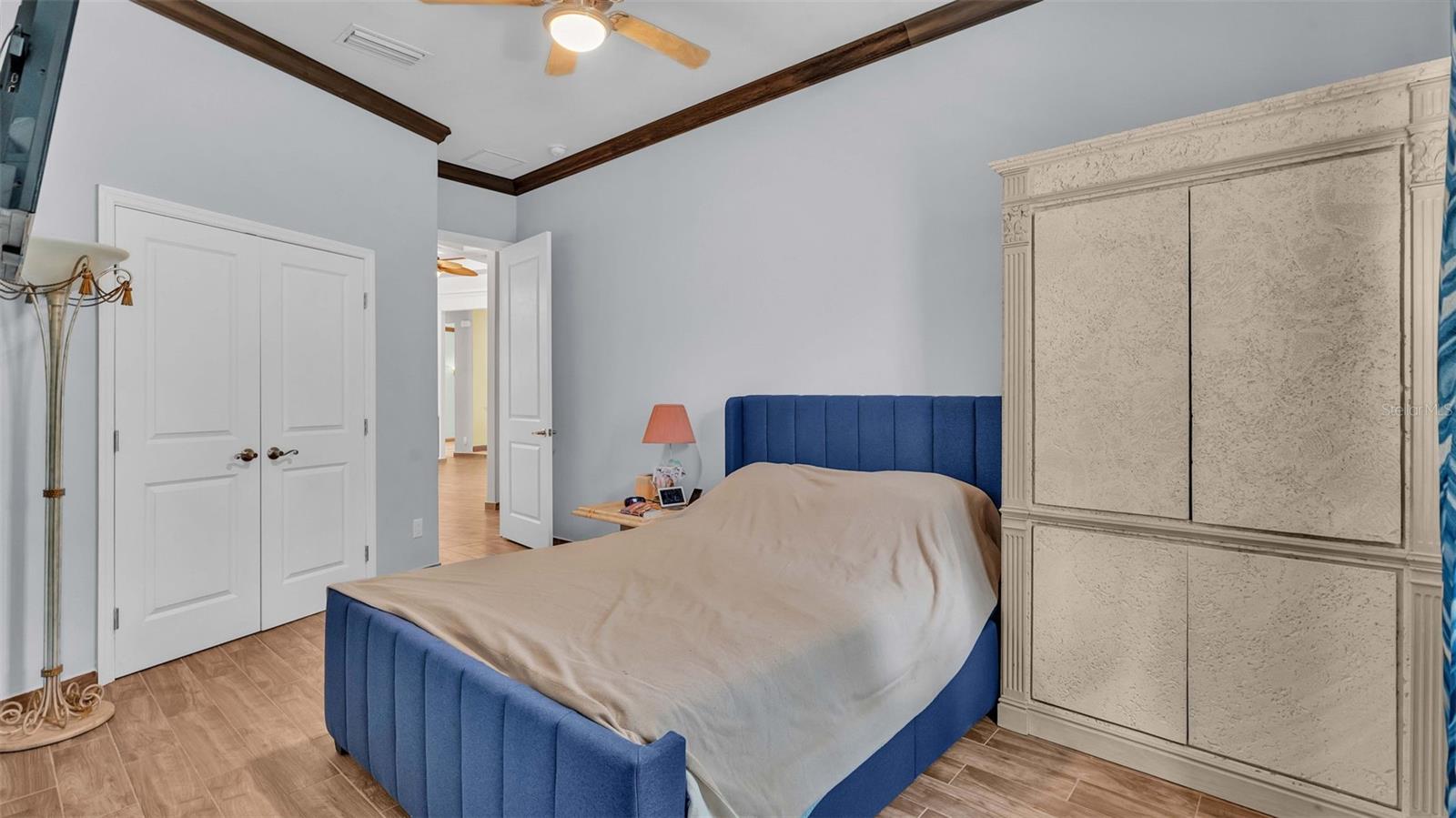 One or more photo(s) has been virtually staged. Welcome to luxury living in a country setting! You're sure to be thrilled by this custom-built 5 bedroom and 4.5 bath home, boasting 4,331 square feet of living space. The 4.94 acre property's long driveway brings you far from the street while a surrounding tree line bolsters an air of private extravagance. A pair of two-car garages flank the front entry, and beyond the glass-paned doorway you'll find elegant tiling adorning the floor of the foyer. High, 10 foot ceilings persist through the home, heightened further by tray ceilings in many of the common areas and neatly framed with beautiful crown molding. Wood pattern tiling begins at the foot of the foyer and continues through the home as well. The living room is the spacious heart of the home, its own ceiling uniquely patterned with a series of recessed rectangles. An electric fireplace and triple-pane sliding glass door to the pool patio accentuate the already-impressive room. The neighboring kitchen is spacious and pristine with light stone countertops along the walls and atop the central island with built-in microwave. Dark subway tiling gives tasteful contrast between the counter and cabinets above. The home presents a split floor plan with each of the wings containing a separate stairway to rooms on the second floor. Two of the bedrooms share a bathroom while the third and forth each enjoy their own. The primary bedroom lies on the first floor, and is a spacious room with tray ceiling and its own sliding door to the pool patio. An abundance of storage space can be found in the generously sized walk-in closet, complete with built in shelving. The primary bathroom is of a unique quality, its walk-in u-turn style shower tiled with elegant stone shades and accompanied by convenient bench seating below a pair of shower heads. Throughout the rest of the home you'll find an office with built-in Victorian shelving, a large bonus room, and screened in balcony space outside of the second-floor bedroom. But there's even more to this property as you continue to the immense covered patio at the rear of the home, furnished with its own outdoor kitchen and pair of fans along the high ceiling. Paver flooring stretches toward and around the pool, all of which is enclosed within the screened pool cage. Equipped with both a conventional and solar pool heater, this outdoor space is ready for your enjoyment no matter the weather. The home's water softener as well as gas stove and dryer are just a few of the conveniences you'll find within this private paradise. Just off of Hwy 98 N in North Lakeland, this extravagant home remains close to the city while enjoying the blissful privacy of its 4.94 acre lot. An adjacent 5 acre lot is vacant, and currently listed for sale as well.