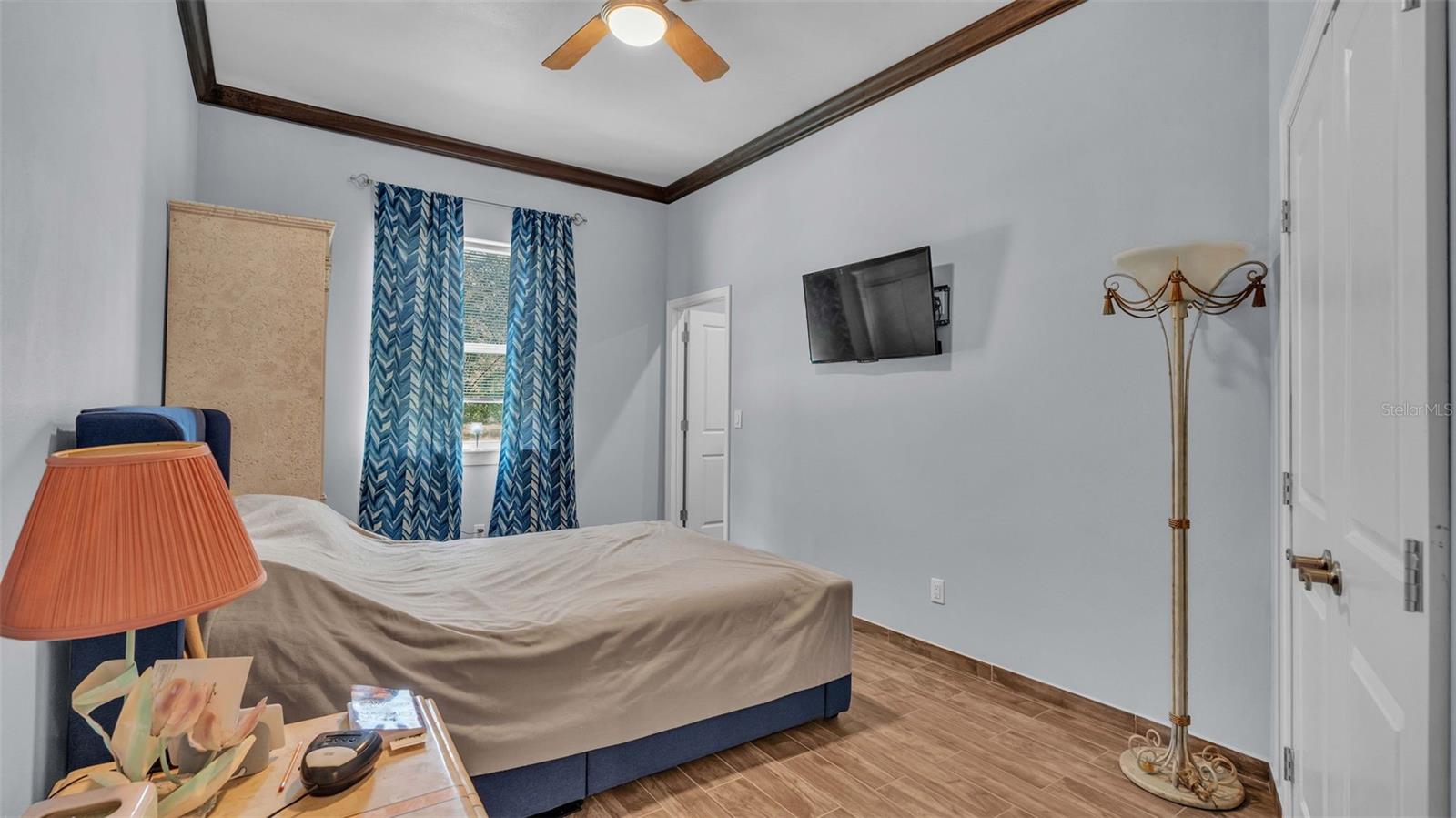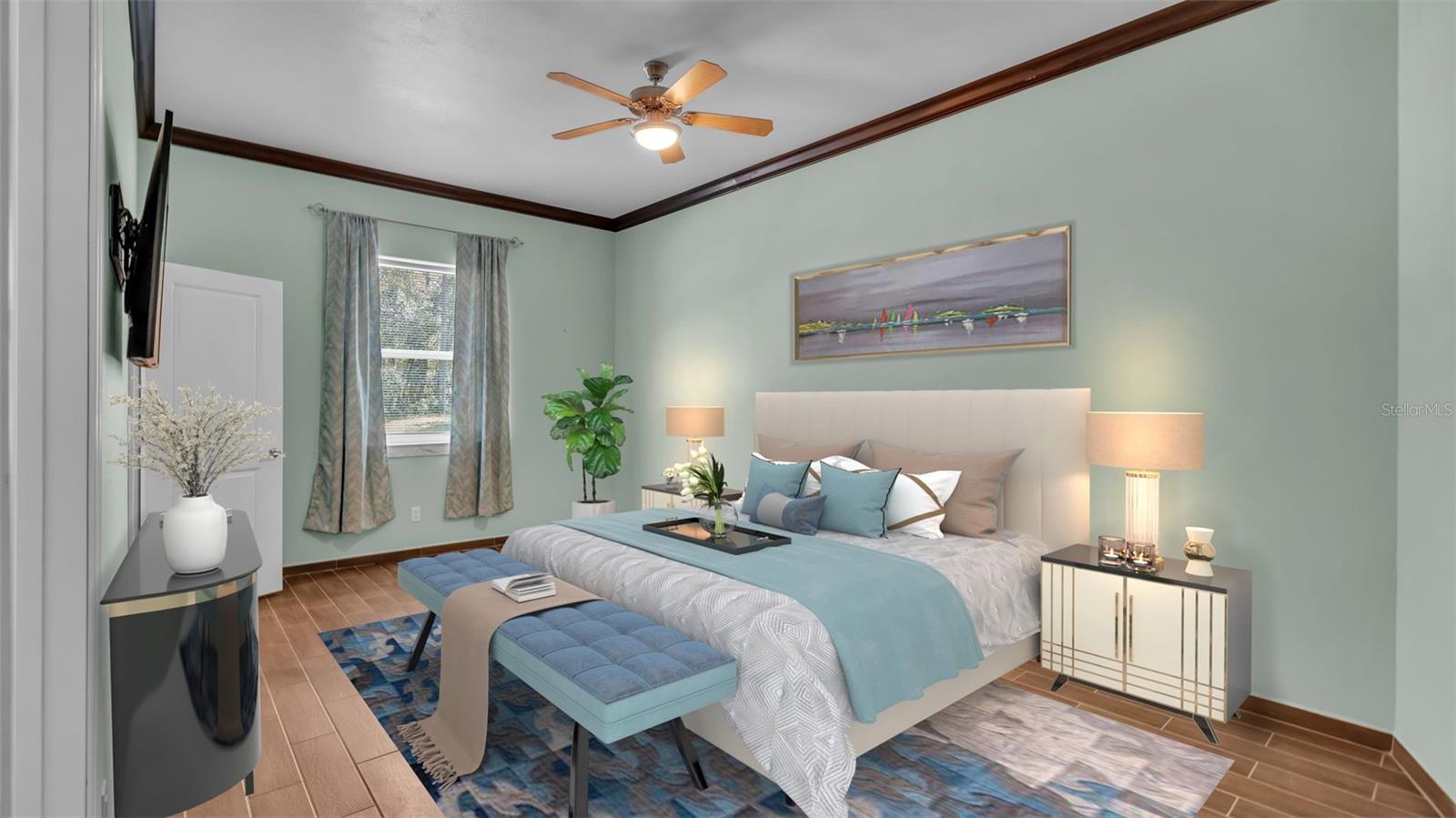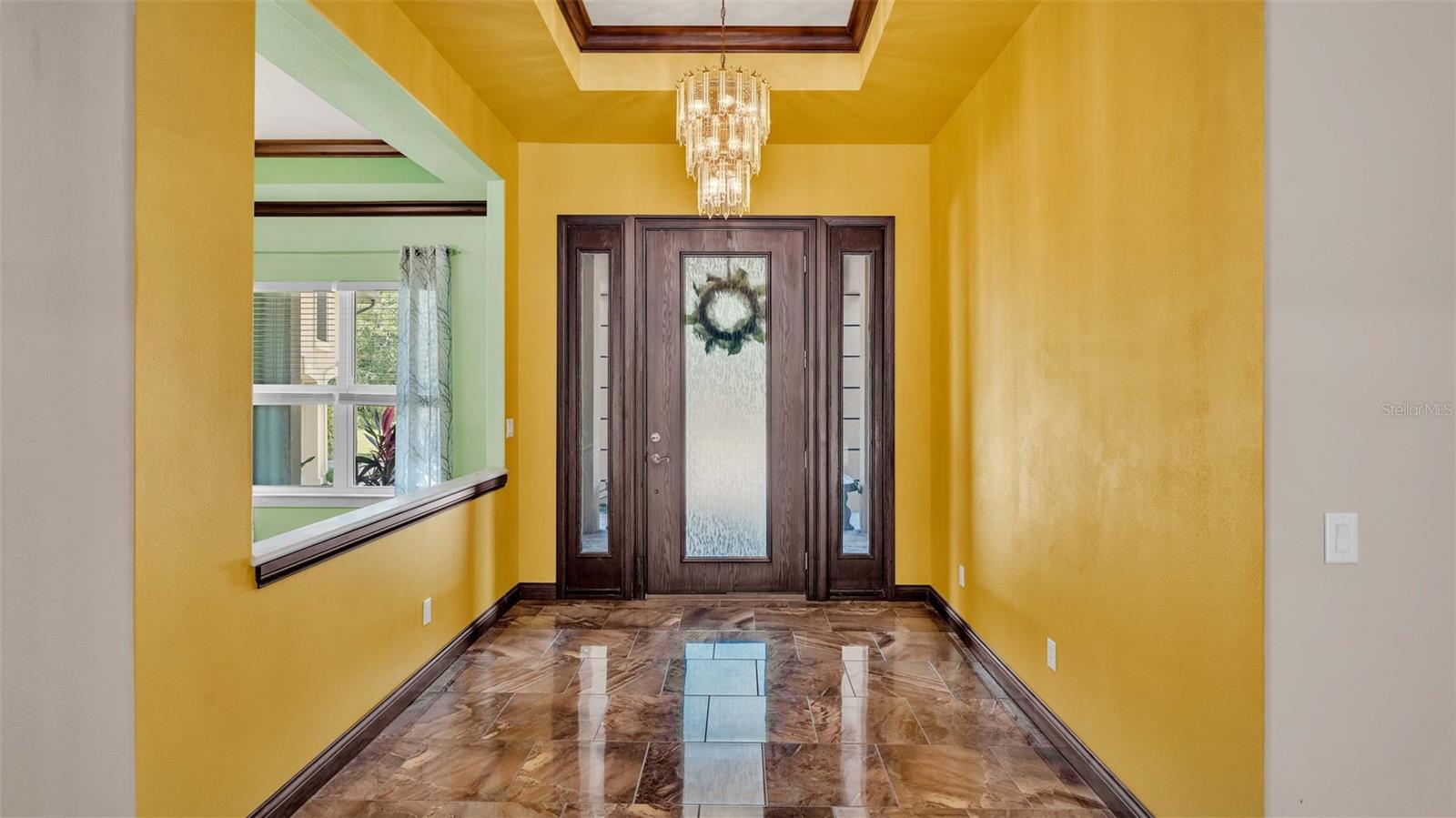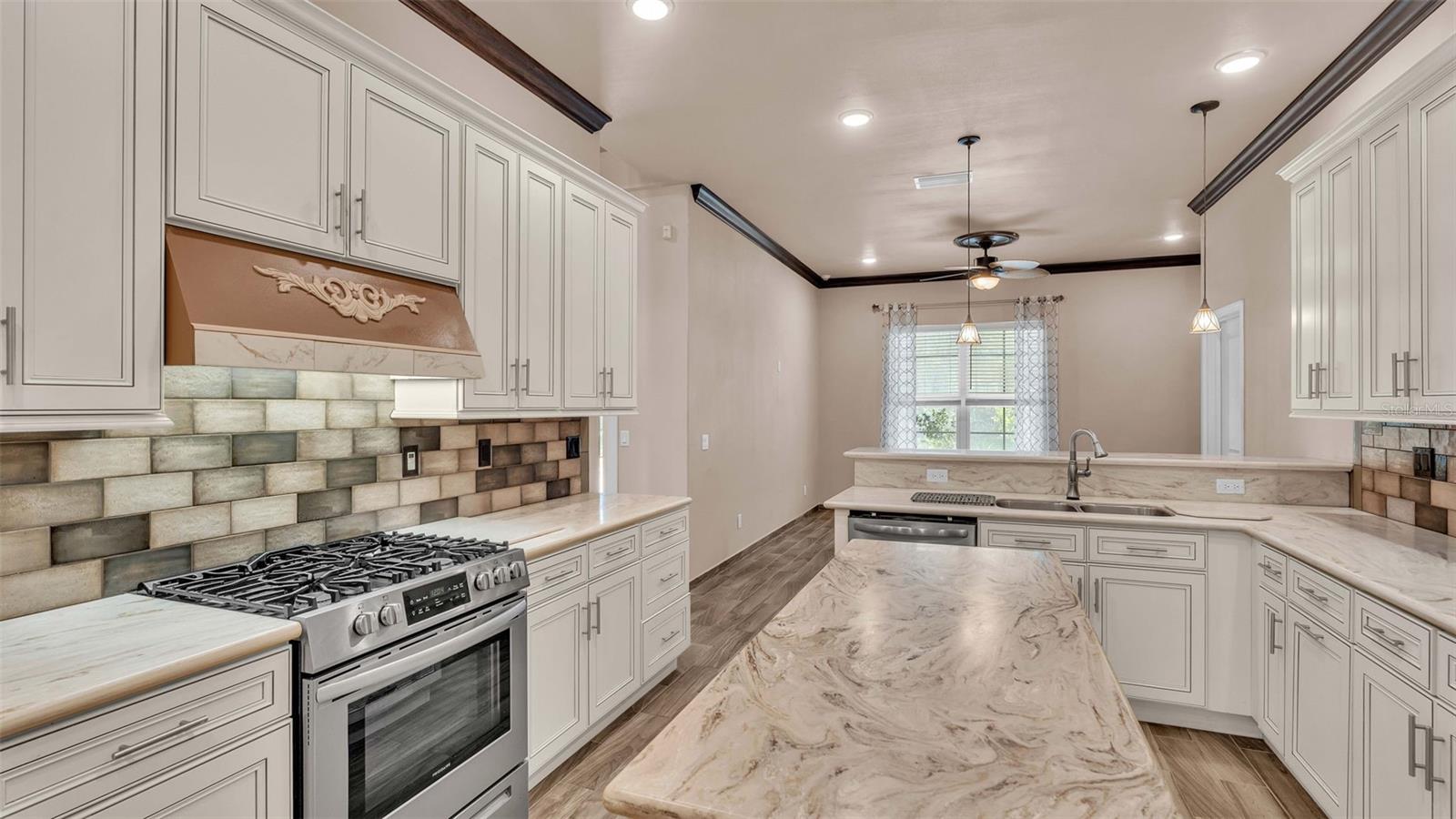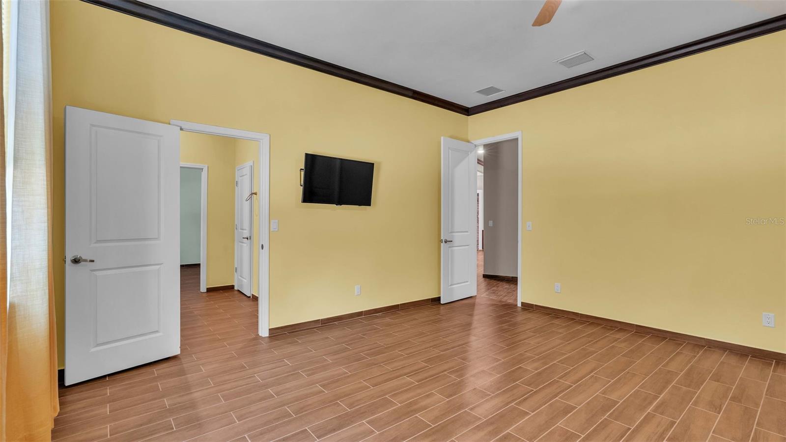 One or more photo(s) has been virtually staged. Welcome to luxury living in a country setting! You're sure to be thrilled by this custom-built 5 bedroom and 4.5 bath home, boasting 4,331 square feet of living space. The 4.94 acre property's long driveway brings you far from the street while a surrounding tree line bolsters an air of private extravagance. A pair of two-car garages flank the front entry, and beyond the glass-paned doorway you'll find elegant tiling adorning the floor of the foyer. High, 10 foot ceilings persist through the home, heightened further by tray ceilings in many of the common areas and neatly framed with beautiful crown molding. Wood pattern tiling begins at the foot of the foyer and continues through the home as well. The living room is the spacious heart of the home, its own ceiling uniquely patterned with a series of recessed rectangles. An electric fireplace and triple-pane sliding glass door to the pool patio accentuate the already-impressive room. The neighboring kitchen is spacious and pristine with light stone countertops along the walls and atop the central island with built-in microwave. Dark subway tiling gives tasteful contrast between the counter and cabinets above. The home presents a split floor plan with each of the wings containing a separate stairway to rooms on the second floor. Two of the bedrooms share a bathroom while the third and forth each enjoy their own. The primary bedroom lies on the first floor, and is a spacious room with tray ceiling and its own sliding door to the pool patio. An abundance of storage space can be found in the generously sized walk-in closet, complete with built in shelving. The primary bathroom is of a unique quality, its walk-in u-turn style shower tiled with elegant stone shades and accompanied by convenient bench seating below a pair of shower heads. Throughout the rest of the home you'll find an office with built-in Victorian shelving, a large bonus room, and screened in balcony space outside of the second-floor bedroom. But there's even more to this property as you continue to the immense covered patio at the rear of the home, furnished with its own outdoor kitchen and pair of fans along the high ceiling. Paver flooring stretches toward and around the pool, all of which is enclosed within the screened pool cage. Equipped with both a conventional and solar pool heater, this outdoor space is ready for your enjoyment no matter the weather. The home's water softener as well as gas stove and dryer are just a few of the conveniences you'll find within this private paradise. Just off of Hwy 98 N in North Lakeland, this extravagant home remains close to the city while enjoying the blissful privacy of its 4.94 acre lot. An adjacent 5 acre lot is vacant, and currently listed for sale as well.