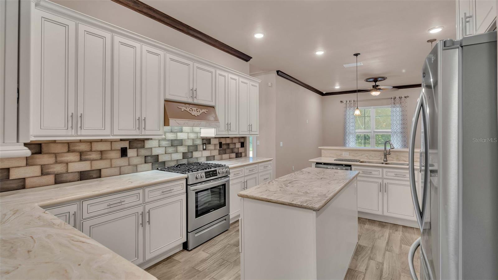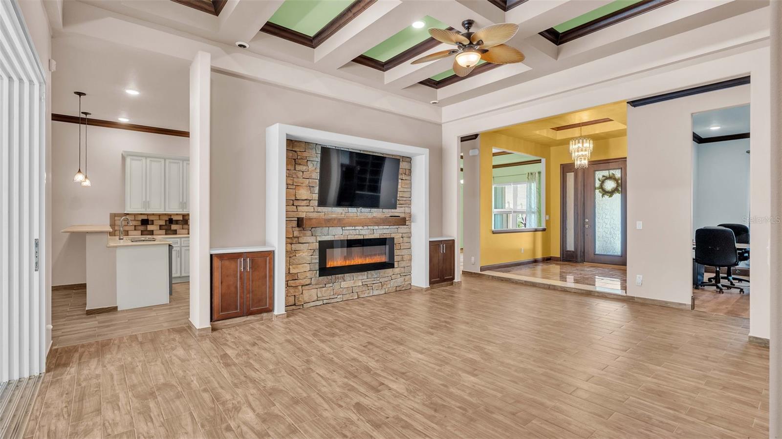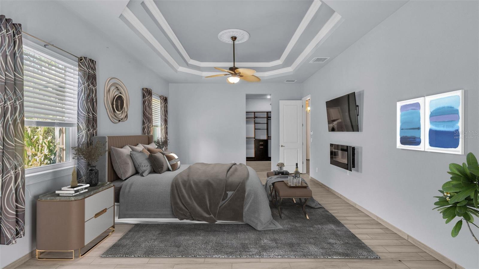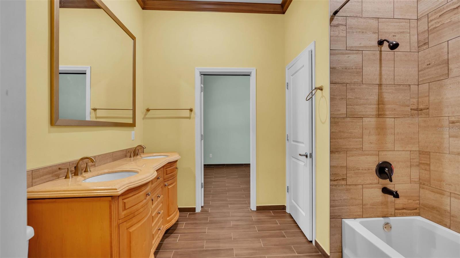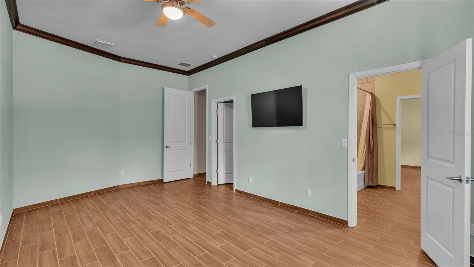 One or more photo(s) has been virtually staged. Welcome to luxury living in a country setting! You're sure to be thrilled by this custom-built 5 bedroom and 4.5 bath home, boasting 4,331 square feet of living space. The 4.94 acre property's long driveway brings you far from the street while a surrounding tree line bolsters an air of private extravagance. A pair of two-car garages flank the front entry, and beyond the glass-paned doorway you'll find elegant tiling adorning the floor of the foyer. High, 10 foot ceilings persist through the home, heightened further by tray ceilings in many of the common areas and neatly framed with beautiful crown molding. Wood pattern tiling begins at the foot of the foyer and continues through the home as well. The living room is the spacious heart of the home, its own ceiling uniquely patterned with a series of recessed rectangles. An electric fireplace and triple-pane sliding glass door to the pool patio accentuate the already-impressive room. The neighboring kitchen is spacious and pristine with light stone countertops along the walls and atop the central island with built-in microwave. Dark subway tiling gives tasteful contrast between the counter and cabinets above. The home presents a split floor plan with each of the wings containing a separate stairway to rooms on the second floor. Two of the bedrooms share a bathroom while the third and forth each enjoy their own. The primary bedroom lies on the first floor, and is a spacious room with tray ceiling and its own sliding door to the pool patio. An abundance of storage space can be found in the generously sized walk-in closet, complete with built in shelving. The primary bathroom is of a unique quality, its walk-in u-turn style shower tiled with elegant stone shades and accompanied by convenient bench seating below a pair of shower heads. Throughout the rest of the home you'll find an office with built-in Victorian shelving, a large bonus room, and screened in balcony space outside of the second-floor bedroom. But there's even more to this property as you continue to the immense covered patio at the rear of the home, furnished with its own outdoor kitchen and pair of fans along the high ceiling. Paver flooring stretches toward and around the pool, all of which is enclosed within the screened pool cage. Equipped with both a conventional and solar pool heater, this outdoor space is ready for your enjoyment no matter the weather. The home's water softener as well as gas stove and dryer are just a few of the conveniences you'll find within this private paradise. Just off of Hwy 98 N in North Lakeland, this extravagant home remains close to the city while enjoying the blissful privacy of its 4.94 acre lot. An adjacent 5 acre lot is vacant, and currently listed for sale as well.