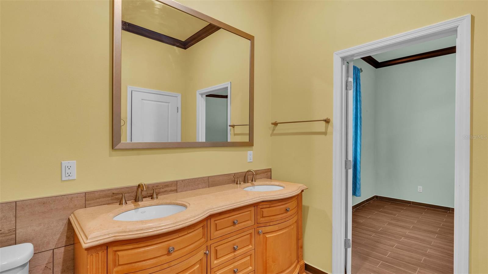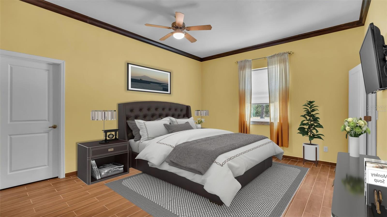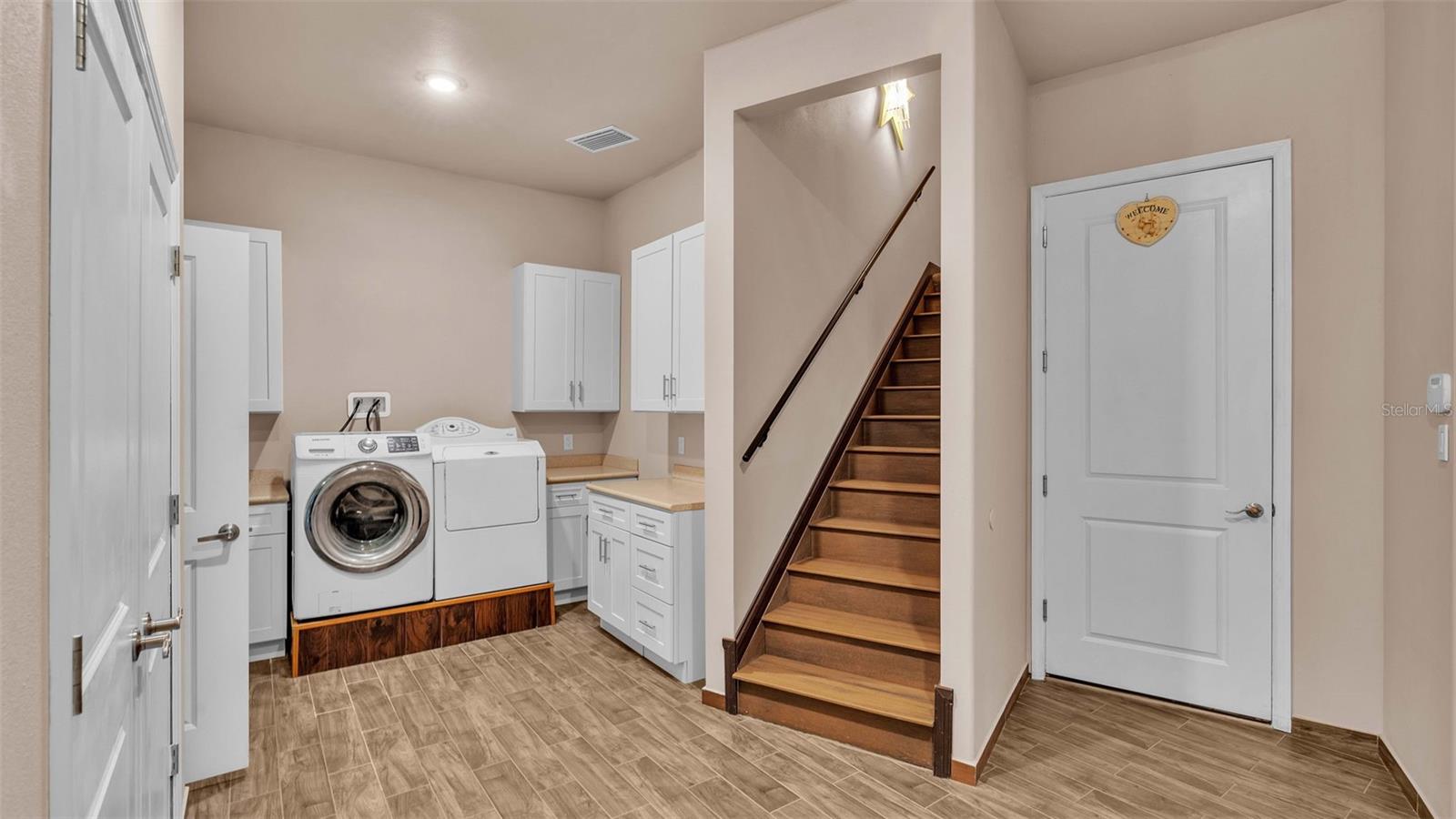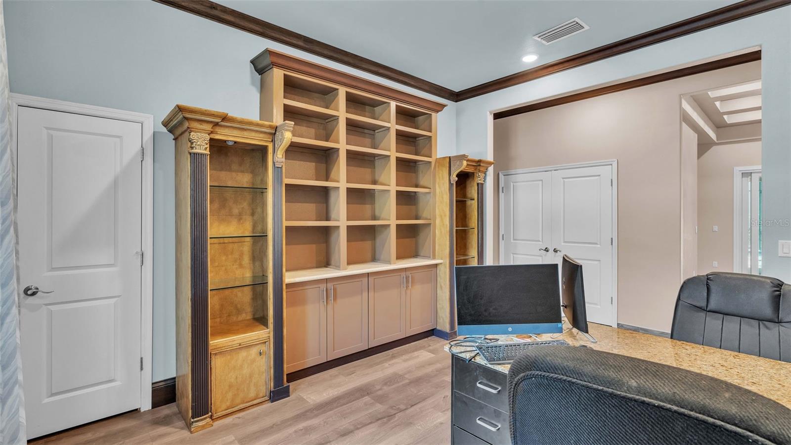 One or more photo(s) has been virtually staged. Welcome to luxury living in a country setting! You're sure to be thrilled by this custom-built 5 bedroom and 4.5 bath home, boasting 4,331 square feet of living space. The 4.94 acre property's long driveway brings you far from the street while a surrounding tree line bolsters an air of private extravagance. A pair of two-car garages flank the front entry, and beyond the glass-paned doorway you'll find elegant tiling adorning the floor of the foyer. High, 10 foot ceilings persist through the home, heightened further by tray ceilings in many of the common areas and neatly framed with beautiful crown molding. Wood pattern tiling begins at the foot of the foyer and continues through the home as well. The living room is the spacious heart of the home, its own ceiling uniquely patterned with a series of recessed rectangles. An electric fireplace and triple-pane sliding glass door to the pool patio accentuate the already-impressive room. The neighboring kitchen is spacious and pristine with light stone countertops along the walls and atop the central island with built-in microwave. Dark subway tiling gives tasteful contrast between the counter and cabinets above. The home presents a split floor plan with each of the wings containing a separate stairway to rooms on the second floor. Two of the bedrooms share a bathroom while the third and forth each enjoy their own. The primary bedroom lies on the first floor, and is a spacious room with tray ceiling and its own sliding door to the pool patio. An abundance of storage space can be found in the generously sized walk-in closet, complete with built in shelving. The primary bathroom is of a unique quality, its walk-in u-turn style shower tiled with elegant stone shades and accompanied by convenient bench seating below a pair of shower heads. Throughout the rest of the home you'll find an office with built-in Victorian shelving, a large bonus room, and screened in balcony space outside of the second-floor bedroom. But there's even more to this property as you continue to the immense covered patio at the rear of the home, furnished with its own outdoor kitchen and pair of fans along the high ceiling. Paver flooring stretches toward and around the pool, all of which is enclosed within the screened pool cage. Equipped with both a conventional and solar pool heater, this outdoor space is ready for your enjoyment no matter the weather. The home's water softener as well as gas stove and dryer are just a few of the conveniences you'll find within this private paradise. Just off of Hwy 98 N in North Lakeland, this extravagant home remains close to the city while enjoying the blissful privacy of its 4.94 acre lot. An adjacent 5 acre lot is vacant, and currently listed for sale as well.