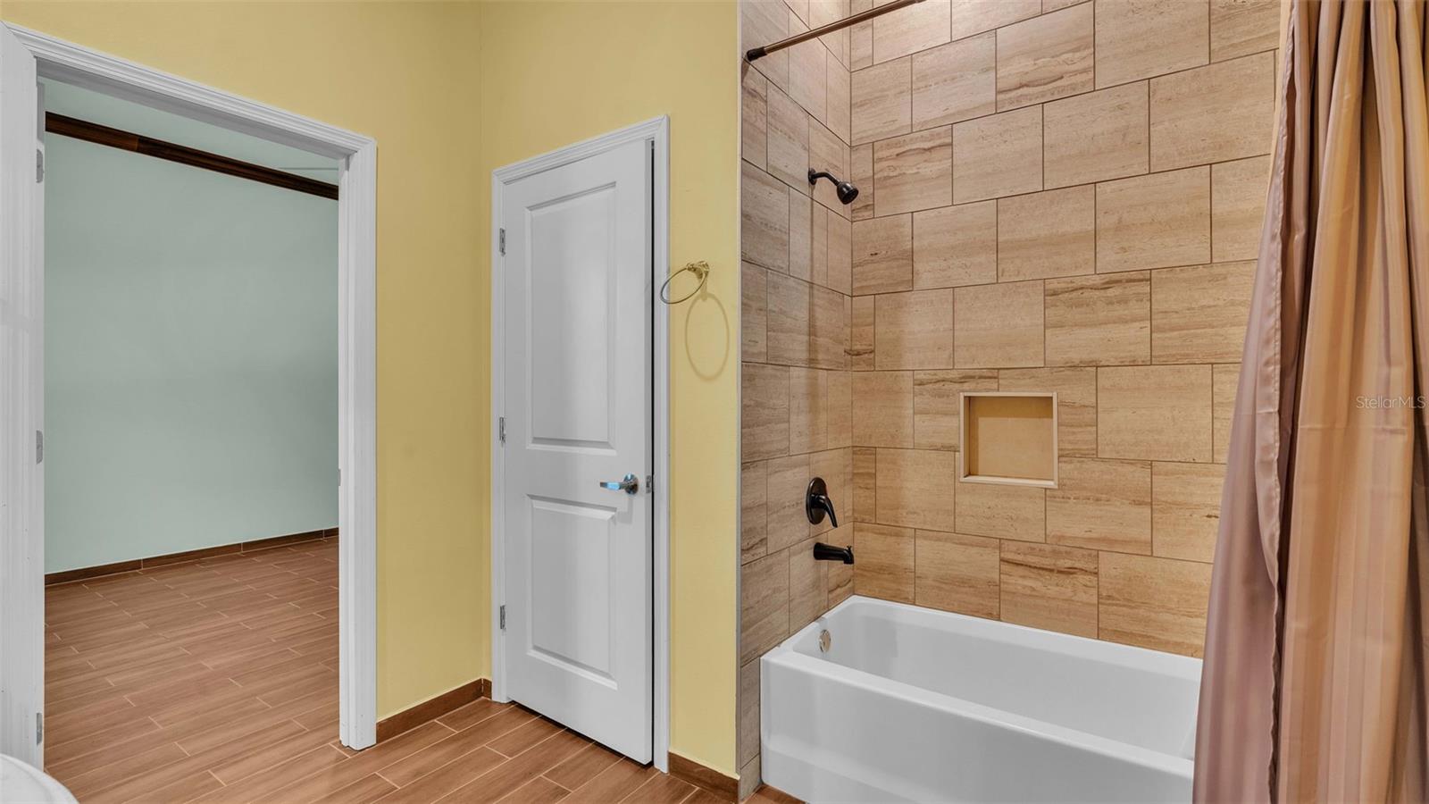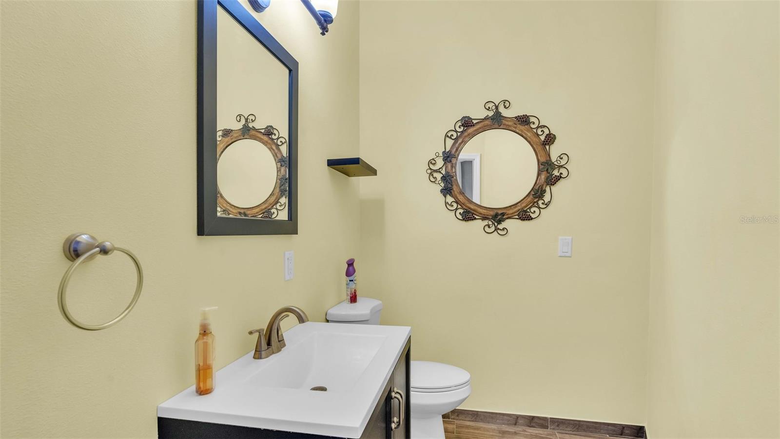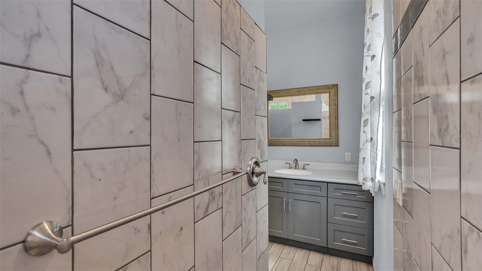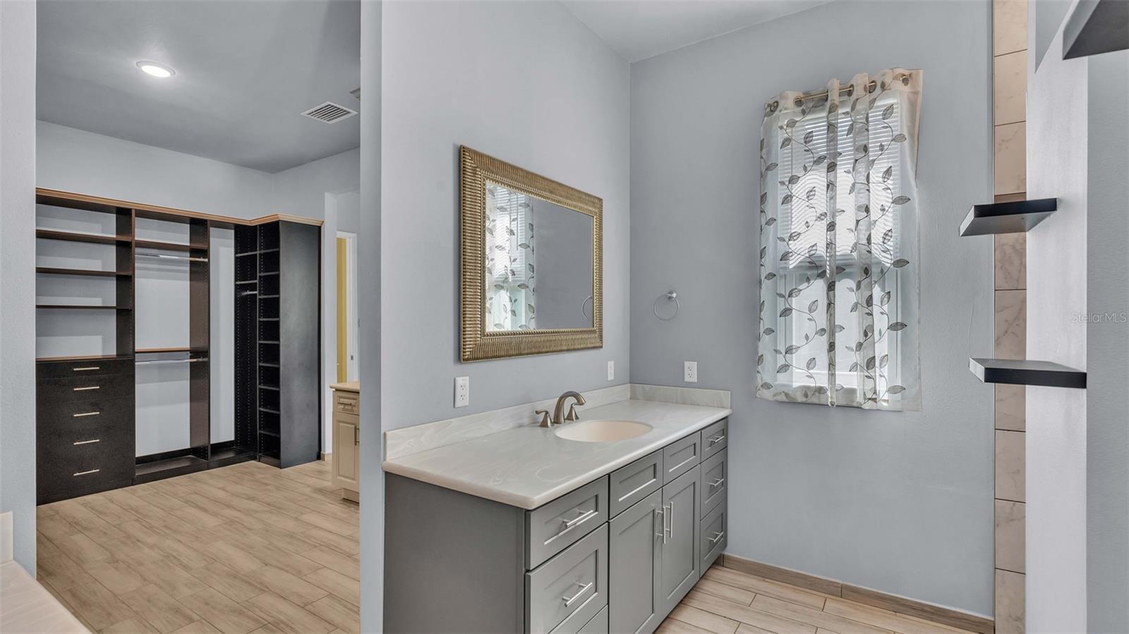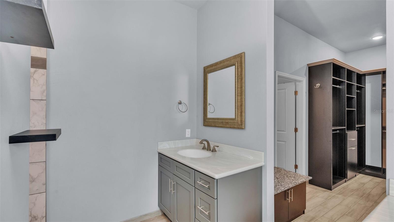 One or more photo(s) has been virtually staged. Welcome to luxury living in a country setting! You're sure to be thrilled by this custom-built 5 bedroom and 4.5 bath home, boasting 4,331 square feet of living space. The 4.94 acre property's long driveway brings you far from the street while a surrounding tree line bolsters an air of private extravagance. A pair of two-car garages flank the front entry, and beyond the glass-paned doorway you'll find elegant tiling adorning the floor of the foyer. High, 10 foot ceilings persist through the home, heightened further by tray ceilings in many of the common areas and neatly framed with beautiful crown molding. Wood pattern tiling begins at the foot of the foyer and continues through the home as well. The living room is the spacious heart of the home, its own ceiling uniquely patterned with a series of recessed rectangles. An electric fireplace and triple-pane sliding glass door to the pool patio accentuate the already-impressive room. The neighboring kitchen is spacious and pristine with light stone countertops along the walls and atop the central island with built-in microwave. Dark subway tiling gives tasteful contrast between the counter and cabinets above. The home presents a split floor plan with each of the wings containing a separate stairway to rooms on the second floor. Two of the bedrooms share a bathroom while the third and forth each enjoy their own. The primary bedroom lies on the first floor, and is a spacious room with tray ceiling and its own sliding door to the pool patio. An abundance of storage space can be found in the generously sized walk-in closet, complete with built in shelving. The primary bathroom is of a unique quality, its walk-in u-turn style shower tiled with elegant stone shades and accompanied by convenient bench seating below a pair of shower heads. Throughout the rest of the home you'll find an office with built-in Victorian shelving, a large bonus room, and screened in balcony space outside of the second-floor bedroom. But there's even more to this property as you continue to the immense covered patio at the rear of the home, furnished with its own outdoor kitchen and pair of fans along the high ceiling. Paver flooring stretches toward and around the pool, all of which is enclosed within the screened pool cage. Equipped with both a conventional and solar pool heater, this outdoor space is ready for your enjoyment no matter the weather. The home's water softener as well as gas stove and dryer are just a few of the conveniences you'll find within this private paradise. Just off of Hwy 98 N in North Lakeland, this extravagant home remains close to the city while enjoying the blissful privacy of its 4.94 acre lot. An adjacent 5 acre lot is vacant, and currently listed for sale as well.
