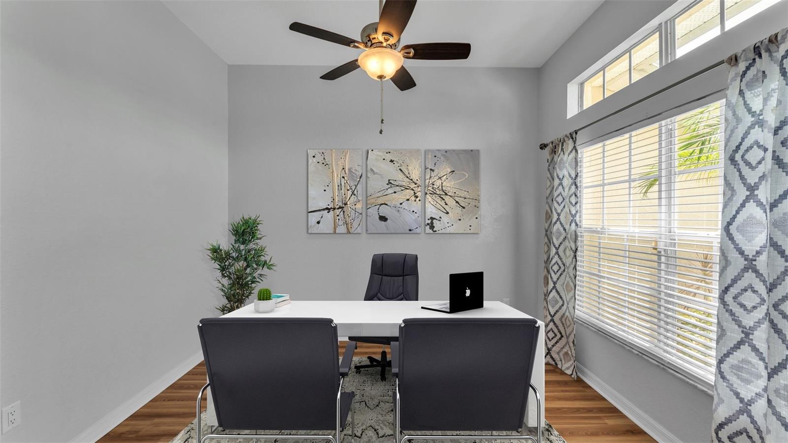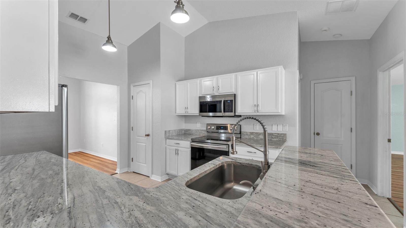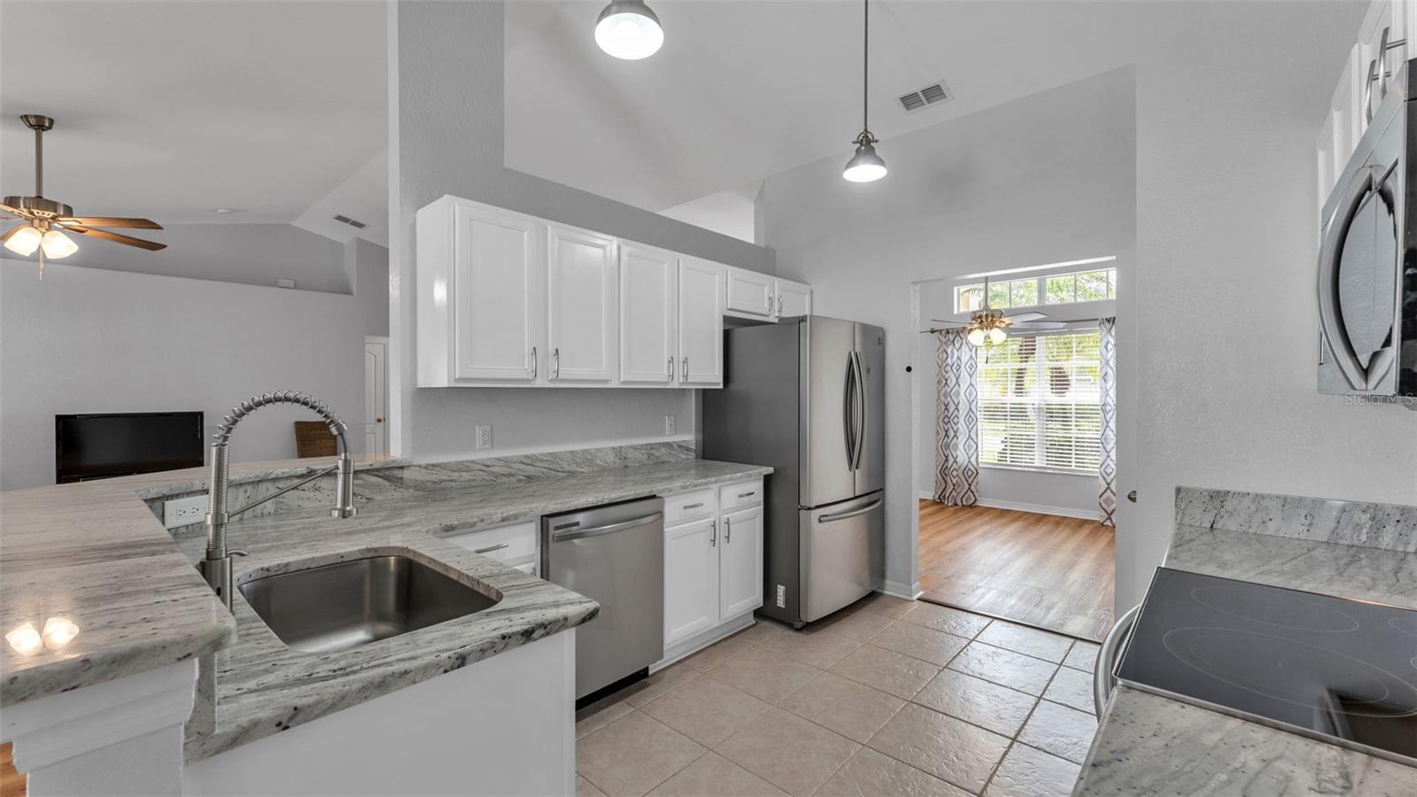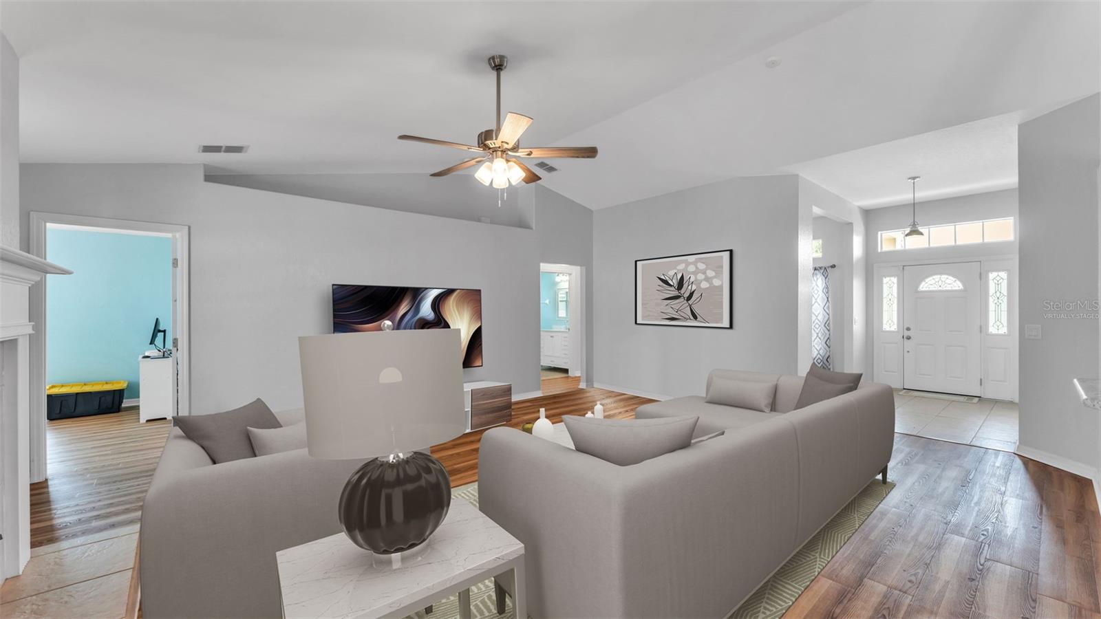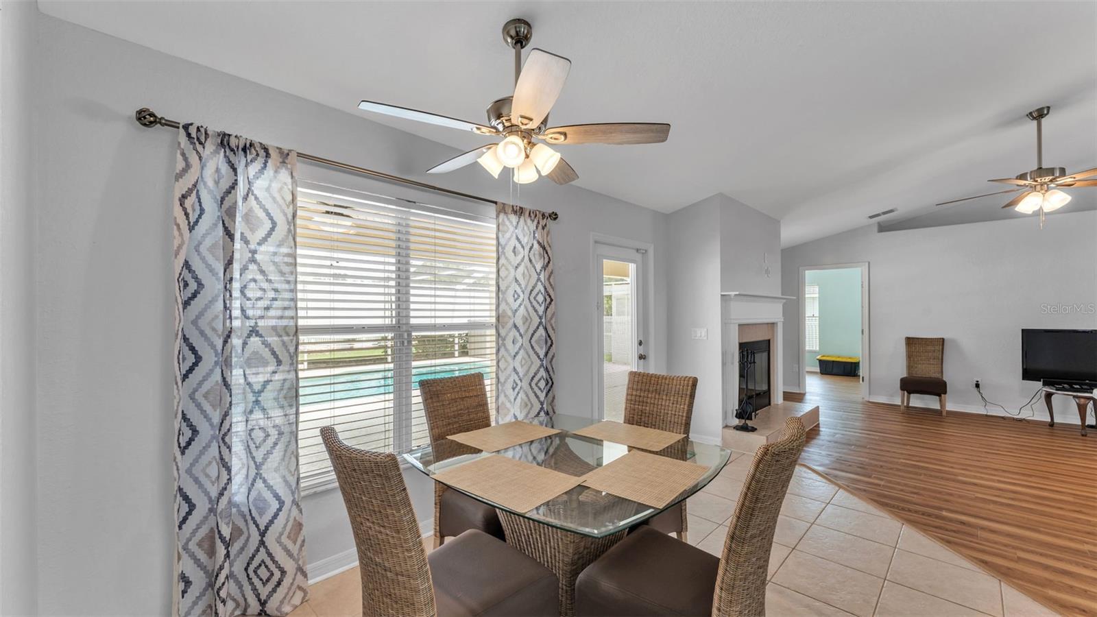 One or more photo(s) has been virtually staged. Welcome to this exquisite 4-bedroom, 2-bathroom pool home nestled in the charming Amber Estates Subdivision of Auburndale, just a block away from the picturesque Lake Ariana. This residence is designed for both comfort and style, offering an ideal living space for families and anyone seeking an inviting atmosphere. Upon entering, you are greeted by a bright and airy open floor plan that showcases luxury vinyl plank flooring throughout, providing a modern and low-maintenance touch. The heart of the home is the beautifully appointed kitchen, featuring stainless-steel appliances, stunning newer granite countertops, and ample cabinetry that caters to all your storage needs. The kitchen seamlessly overlooks the spacious living room, which boasts a cozy fireplace--perfect for family gatherings or entertaining guests. Adjacent to the kitchen, you'll find a separate formal dining room, ideal for hosting elegant dinners, as well as a versatile flex space that makes for a perfect home office or play area, accommodating your lifestyle needs. Retreat to the serene primary bedroom, which offers a generous walk-in closet and an en-suite bathroom that exudes luxury. This private oasis features dual sinks, a soothing garden tub, and a walk-in shower with convenient access to your patio, creating a perfect blend of functionality and relaxation. The three additional bedrooms are thoughtfully situated on the opposite side of the home for added privacy, along with a well-appointed second full bathroom, making it ideal for family or overnight guests. Step outside to your inviting screened-in patio, which overlooks an impressive gas heated saltwater pool and spa area --perfect for unwinding after a long day or enjoying fun-filled pool parties. The fenced-in backyard provides space for pets to play, while also offering a picturesque outdoor setting for relaxation and entertainment. This home has seen recent upgrades, including a new roof (2022), a modern HVAC system (2019), and a water heater (2020), ensuring you can move in with peace of mind. Located in a vibrant community, you'll also appreciate the convenience of multiple boat ramps and docks available for rent or sale nearby, perfect for water enthusiasts ready to explore Lake Ariana. Don't miss out on this charming move-in ready home in Amber Estates, where comfort meets modern living in a prime location. Schedule your private showing today!