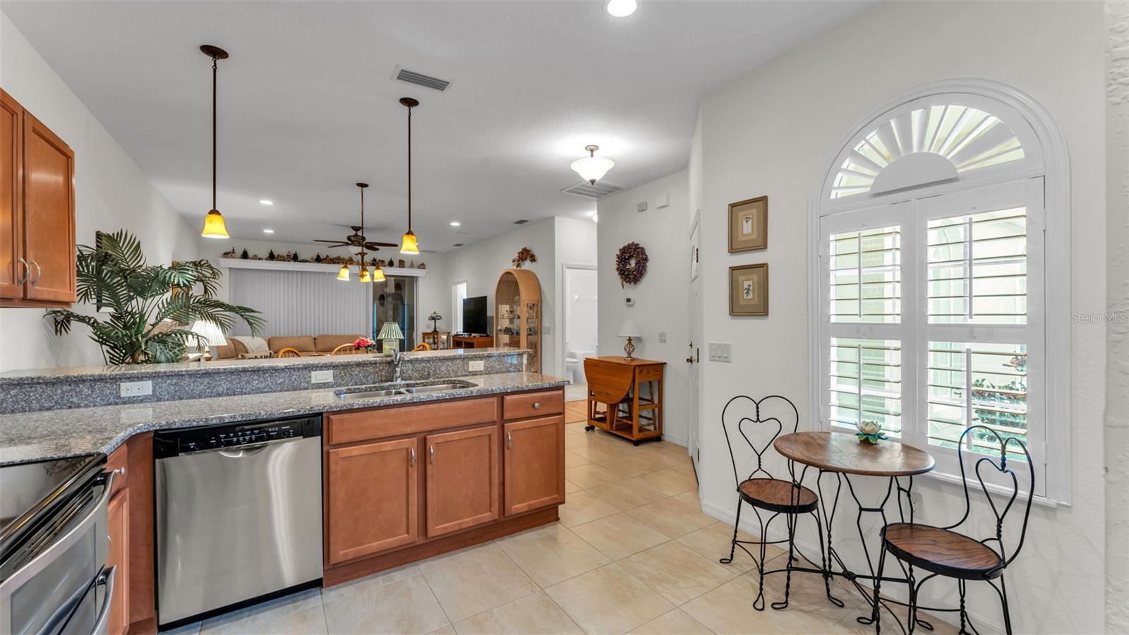 Welcome to your dream home in the serene 55-plus gated community of Vienna Square in Winter Haven! This exquisite 2-bedroom, 2-bathroom villa is designed for comfortable living and entertaining, featuring an inviting open floor plan that welcomes you with warmth and style. As you step inside, you'll appreciate the spacious layout where the dining room and living room seamlessly combine, creating an ideal space for family gatherings and social events. The heart of the home, the large kitchen, boasts stunning granite countertops, modern stainless steel appliances, a generous pantry, and ample cabinetry to meet all your culinary needs. Whether you're hosting a dinner party or enjoying a quiet evening in, this kitchen is a true delight. The primary bedroom is a serene retreat, complete with an ensuite bathroom that offers both luxury and convenience. Enjoy the convenience of a separate vanity and indulge in the refreshing walk-in shower that provides a spa-like experience. The second bedroom is versatile and is located conveniently next to the second bathroom, making it perfect for guests or family visits. An added bonus to this villa is the additional room off the living area, which can serve as a cozy office, a game room for fun nights with friends, or a peaceful reading nook--tailored to fit your lifestyle. Outside, the well-maintained exterior ensures you can spend more time enjoying the community rather than worrying about upkeep. The monthly HOA fees cover exterior paint, roof maintenance, yard care, irrigation water, and even a Spectrum TV/Internet package, allowing you to relax and enjoy your new home without the stress of added responsibilities. Residents of Vienna Square can take pleasure in an active lifestyle with access to a vibrant clubhouse, a refreshing pool, and well-maintained tennis courts. This gated community also offers the convenience of being located near major retailers and a variety of restaurants, ensuring you're never far from everything you need. Move-in ready and designed for low maintenance, this villa represents the perfect blend of comfort, luxury, and convenience in the coveted Vienna Square. Don't miss your chance to experience the joyful lifestyle this community has to offer!