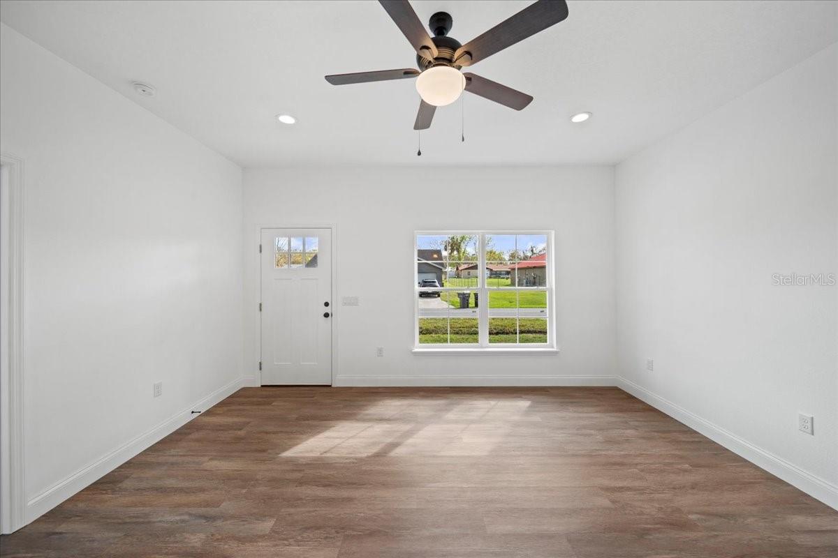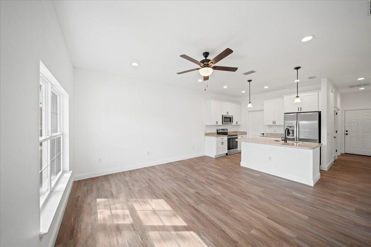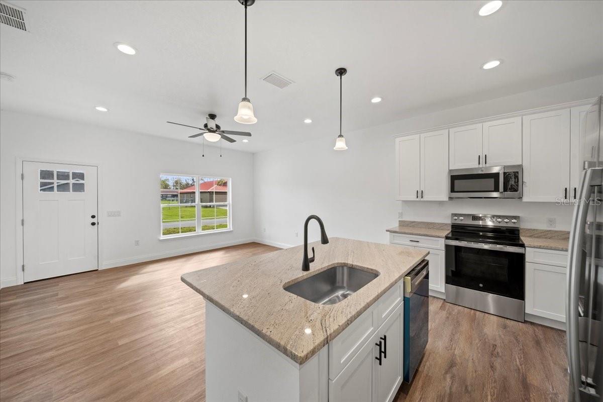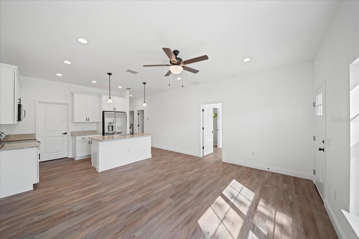 Welcome to this brand-new, beautifully crafted 3-bedroom, 2-bathroom home, nestled in the desirable South Lakeland area. This home offers an ideal location, just minutes from major employers like Geico and Publix corporate offices, and provides easy access to the Polk Parkway for effortless commuting. Boasting 9.3-foot floor-to-ceiling heights, the home features energy-efficient HVAC and luxury vinyl plank flooring throughout. The spacious living room is enhanced by recessed lighting and a large window that overlooks the front yard. The primary bedroom is a tranquil retreat, featuring a large window with a stunning view of the wooded conservation area, visible not only from the room but also from the two additional bedrooms. The ensuite bathroom is a luxurious haven, complete with a built-in closet, a frameless glass shower door, a tiled walk-in shower with an accented base, and an additional window that frames the natural beauty outside. The kitchen is a chef's dream, featuring level two granite countertops, a large island with seating for three, two pendant lights, and recessed lighting. Brand-new GE stainless steel appliances, including a refrigerator, dishwasher, and built-in microwave, are complemented by slow-shut cabinets and an undermount single farm-style sink. The laundry room, accessible from the kitchen, includes a 40-gallon water heater and ample space for a side-by-side washer and dryer. The home provides privacy on the right side and in the backyard, where you can enjoy scenic views of the conservation area and the soothing sounds of nature. Perfectly located minutes from Publix, Target, Lakeside Village, and Lakeland Airport, this home combines comfort, convenience, and serenity. Schedule your tour today and experience all this home has to offer!
