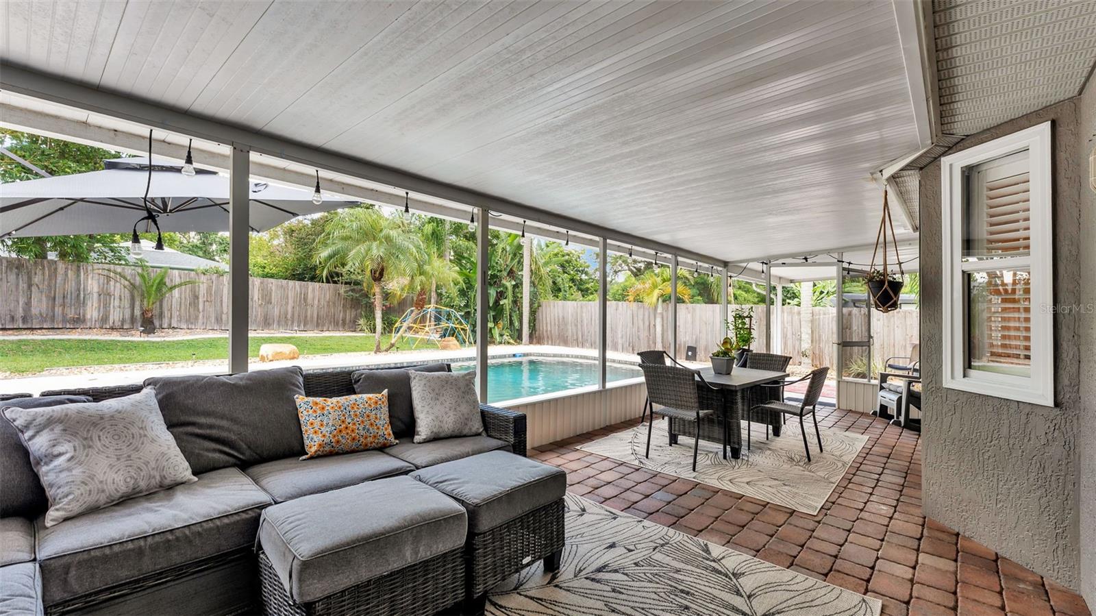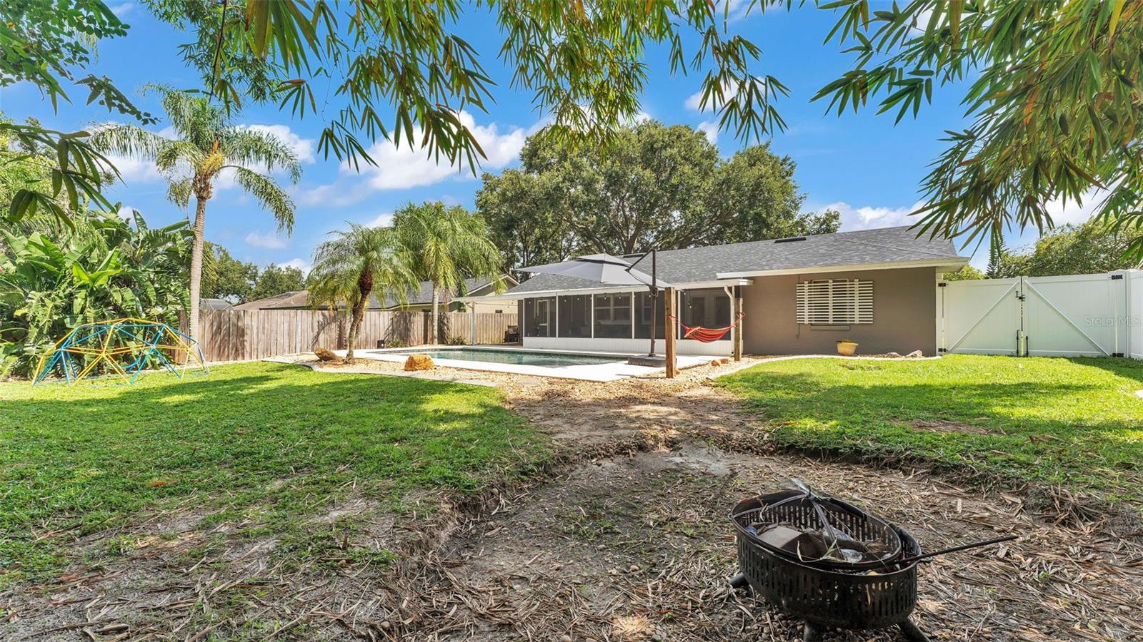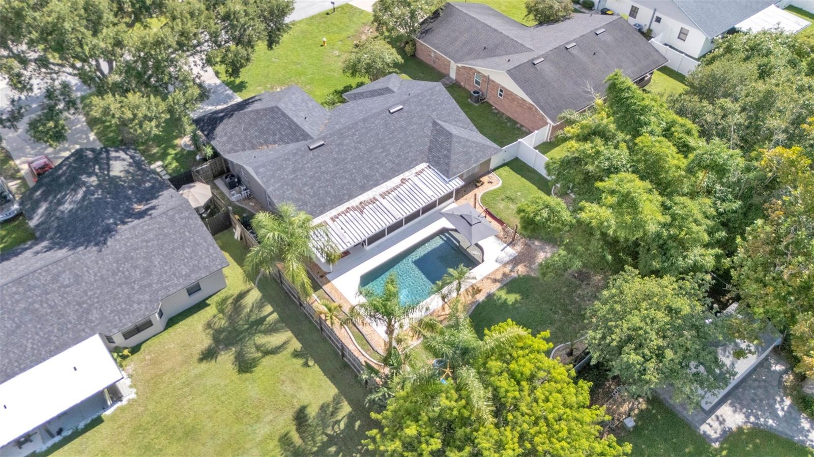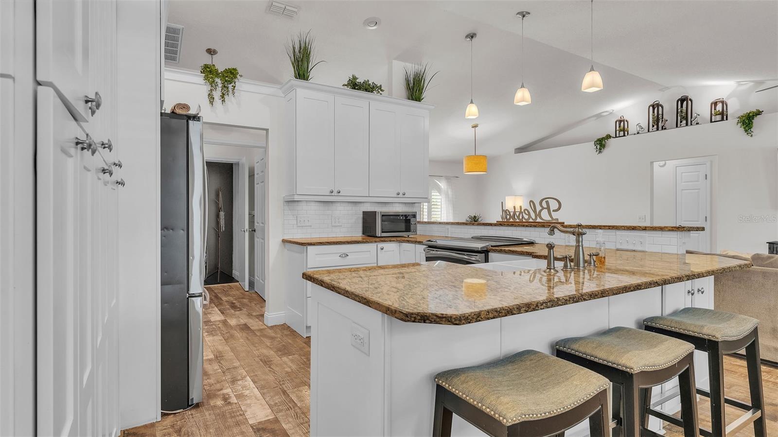 Welcome to your dream home in the heart of South Lakeland! This beautifully maintained 4-bedroom, 2-bathroom residence with an additional office or bonus room is perfectly move-in ready--and packed with features you'll love. Step inside to an elegant kitchen that serves as the heart of the home, featuring granite countertops, stainless steel appliances, stylish tile backsplash, and an abundance of cabinet storage. There's even space for a dining table, with a seamless view into the wide-open living area--ideal for entertaining or everyday living. Down the hallway, you'll find three spacious guest bedrooms that share a full bathroom, offering both comfort and functionality. The home's split floor plan ensures privacy, with the primary suite tucked away for your own personal retreat. Outside, your screened-in back lanai overlooks a sparkling inground pool and a fully fenced, expansive backyard--perfect for relaxing, entertaining, or outdoor play. The tropical landscaping and privacy fencing create a serene, resort-like atmosphere right in your own backyard. Located just minutes from the Polk Parkway, commuting is a breeze, and you'll love the proximity to Highlands Grove Elementary, Parkway Christian Academy, shopping, dining, and the upcoming Orlando Health campus. With newer wood-look tile throughout, vaulted ceilings, and an abundance of natural light, this home is the perfect blend of style, space, and location. Don't miss out on this South Lakeland gem--schedule your private tour today!