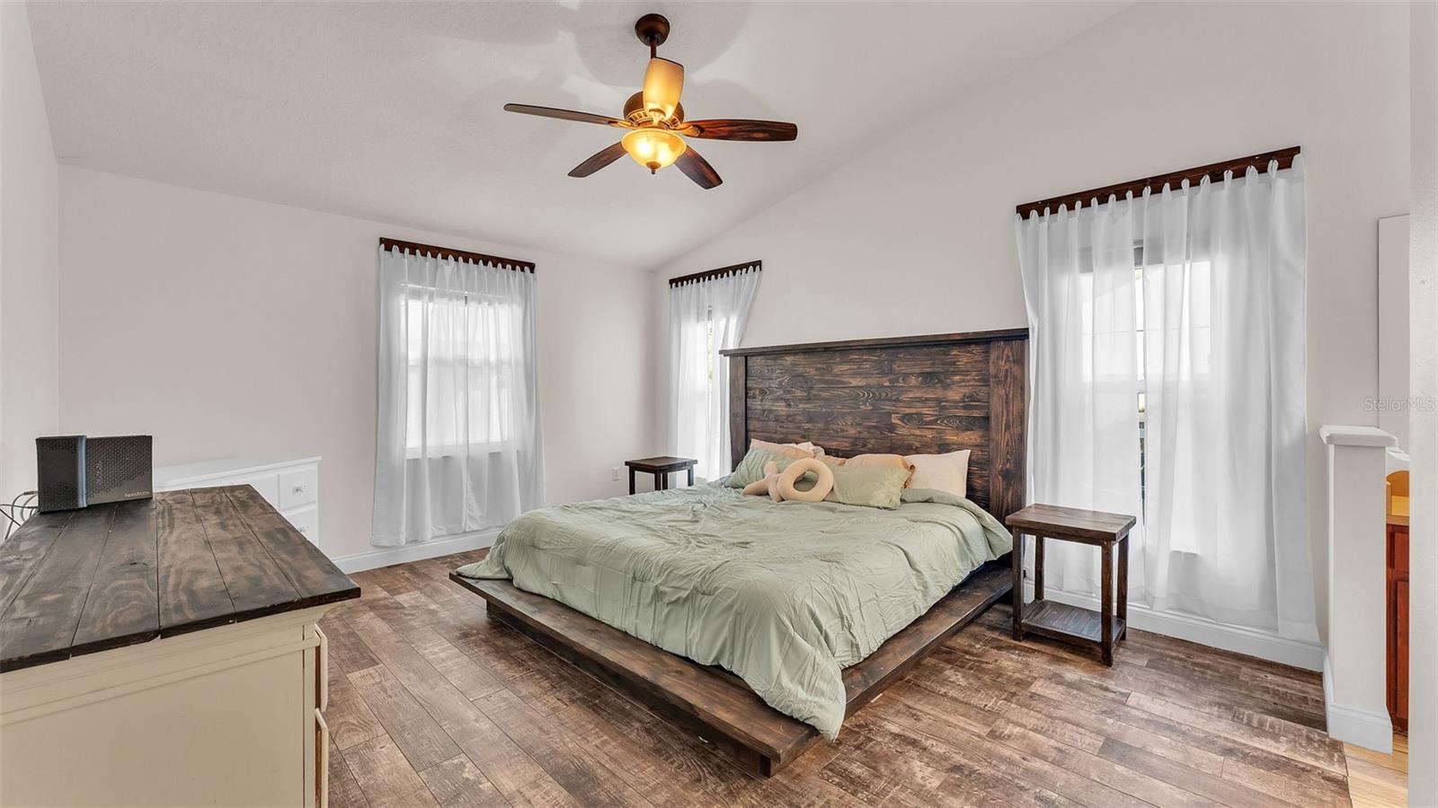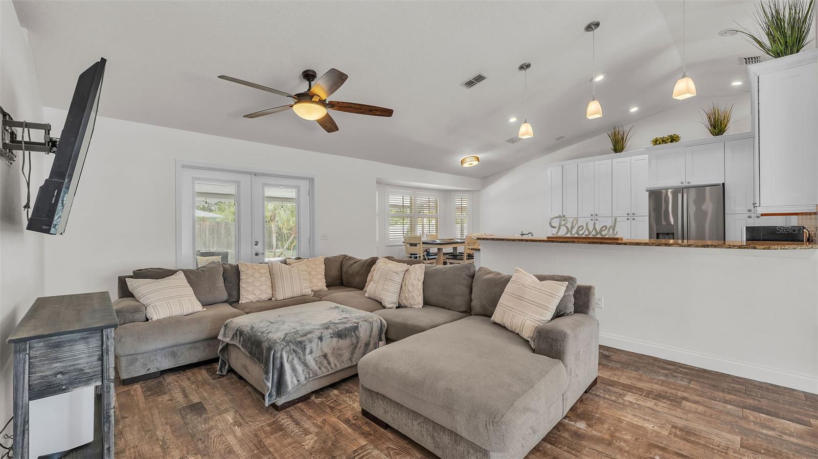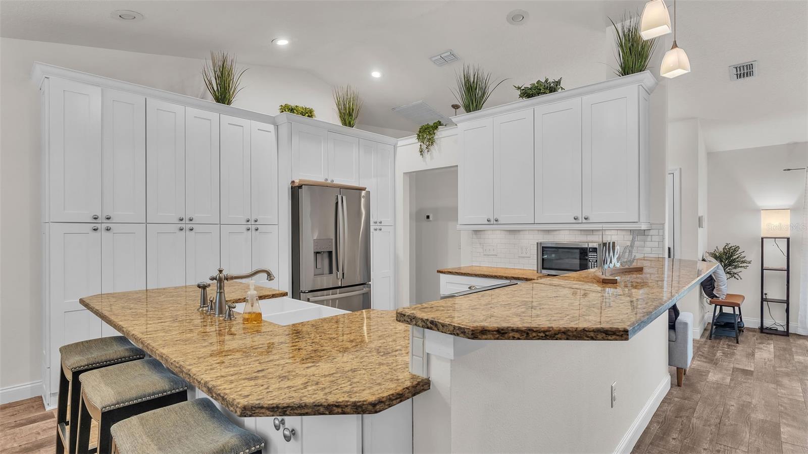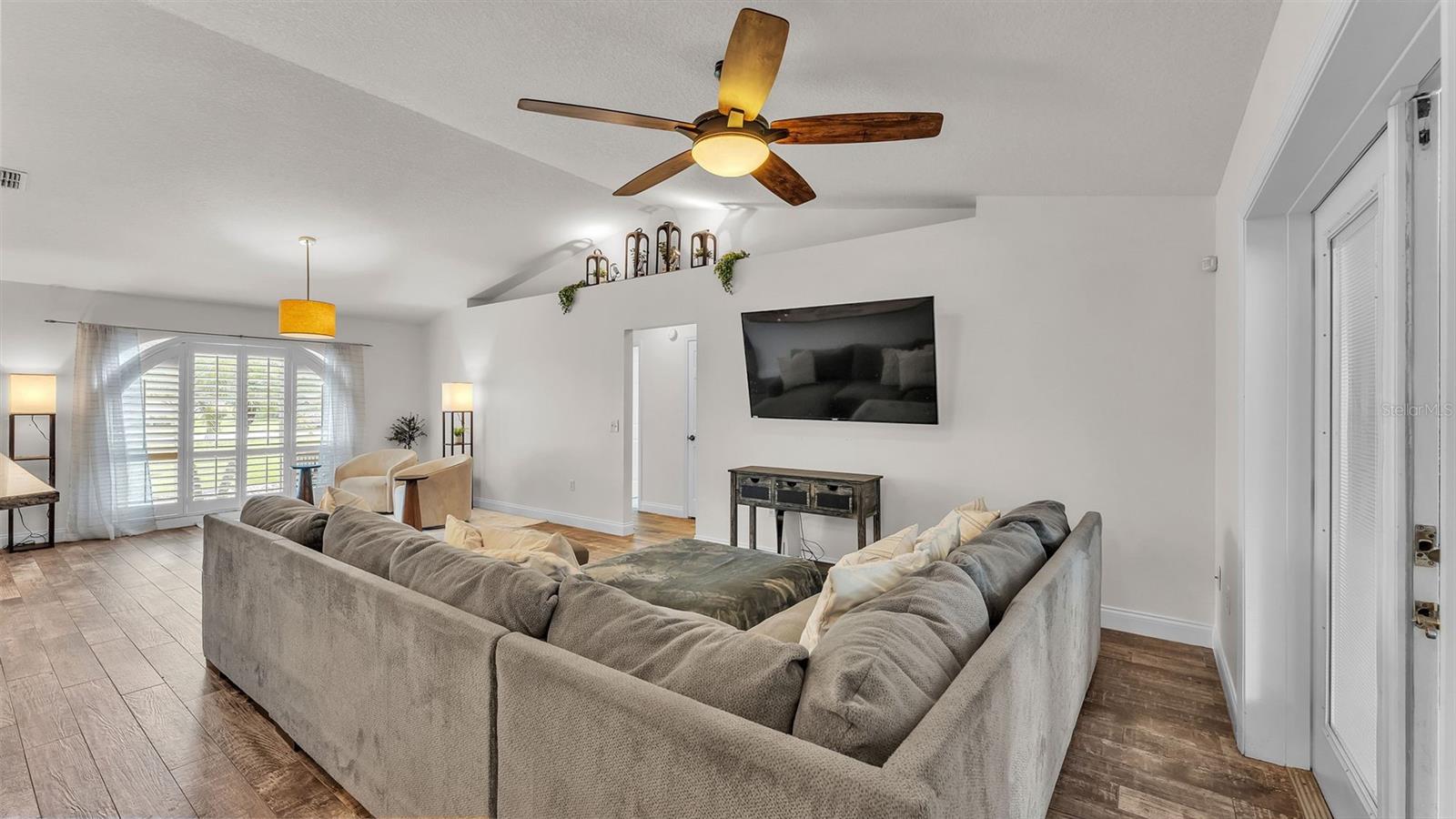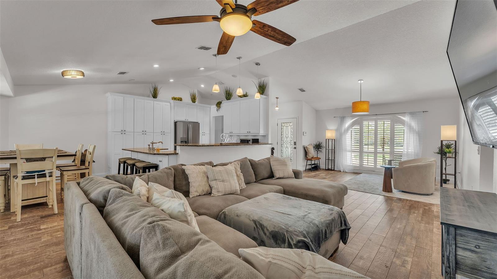 Welcome to your dream home in the heart of South Lakeland! This beautifully maintained 4-bedroom, 2-bathroom residence with an additional office or bonus room is perfectly move-in ready--and packed with features you'll love. Step inside to an elegant kitchen that serves as the heart of the home, featuring granite countertops, stainless steel appliances, stylish tile backsplash, and an abundance of cabinet storage. There's even space for a dining table, with a seamless view into the wide-open living area--ideal for entertaining or everyday living. Down the hallway, you'll find three spacious guest bedrooms that share a full bathroom, offering both comfort and functionality. The home's split floor plan ensures privacy, with the primary suite tucked away for your own personal retreat. Outside, your screened-in back lanai overlooks a sparkling inground pool and a fully fenced, expansive backyard--perfect for relaxing, entertaining, or outdoor play. The tropical landscaping and privacy fencing create a serene, resort-like atmosphere right in your own backyard. Located just minutes from the Polk Parkway, commuting is a breeze, and you'll love the proximity to Highlands Grove Elementary, Parkway Christian Academy, shopping, dining, and the upcoming Orlando Health campus. With newer wood-look tile throughout, vaulted ceilings, and an abundance of natural light, this home is the perfect blend of style, space, and location. Don't miss out on this South Lakeland gem--schedule your private tour today!