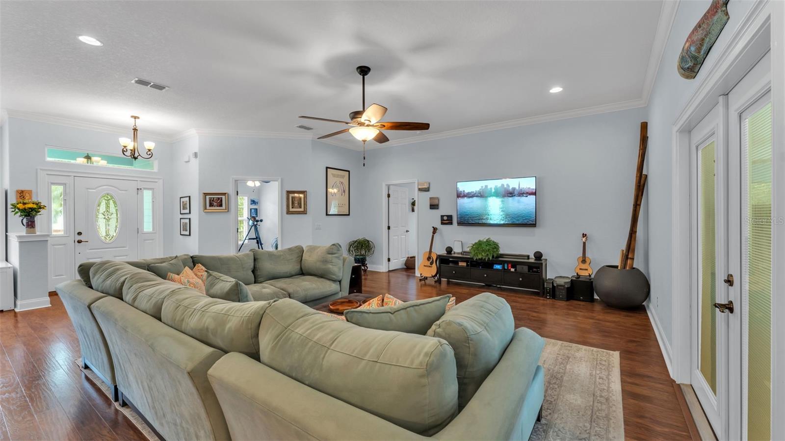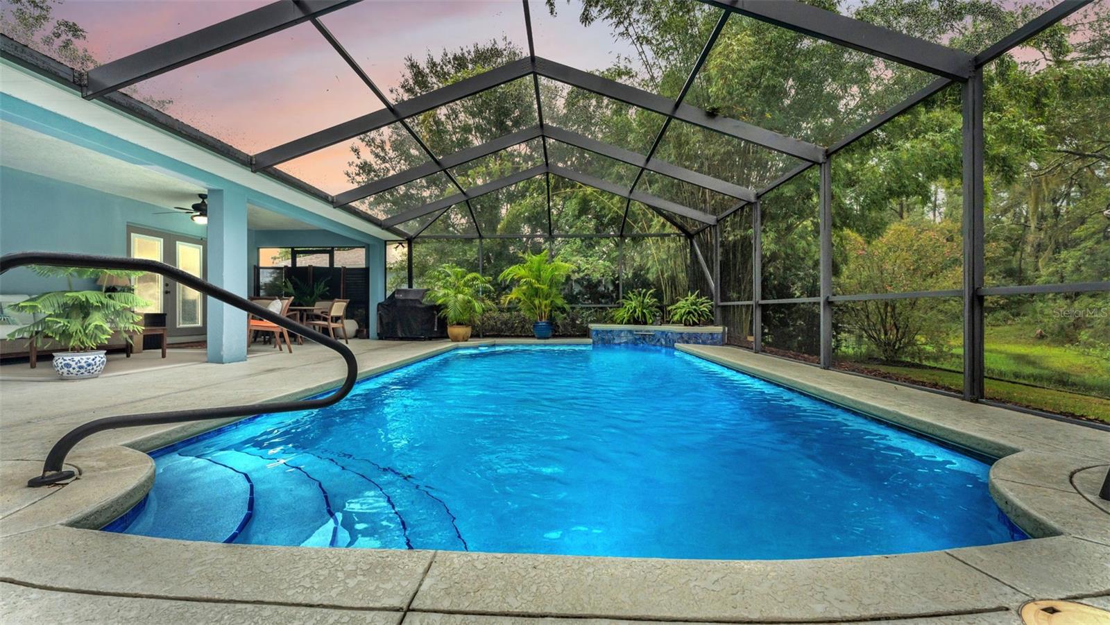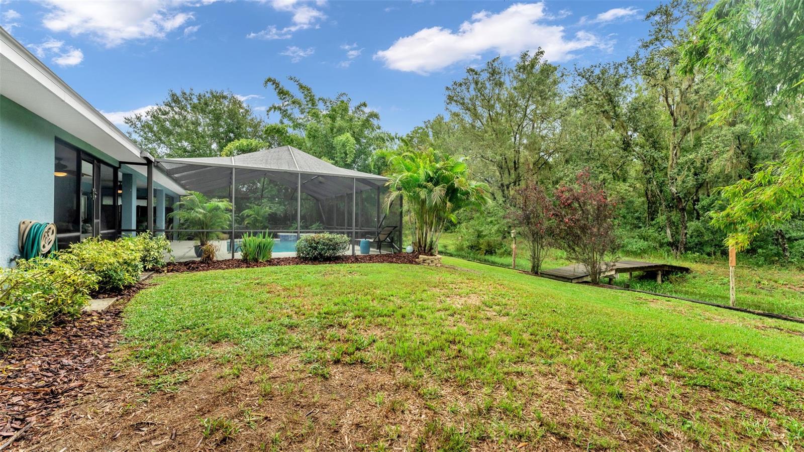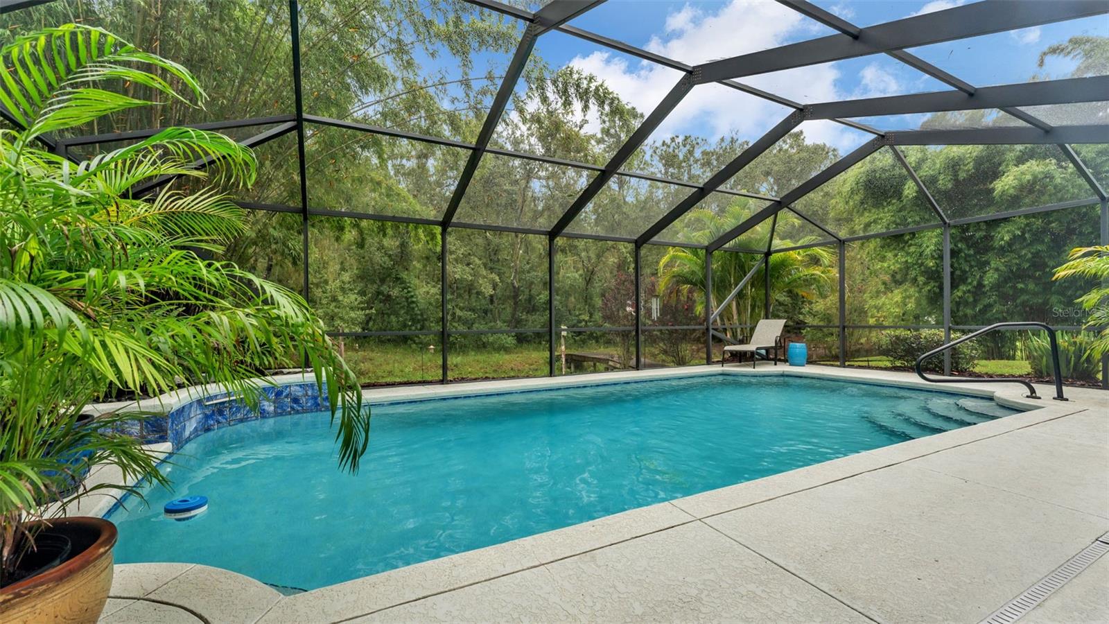 Welcome to this exquisite 3-bedroom, 2-bathroom pool home with a dedicated office, set on a spacious half-acre lot in the highly desirable Deer Brooke subdivision of South Lakeland. Built in 2015 by Danny Sadler, Inc., this custom-crafted masterpiece blends modern design with timeless craftsmanship, offering the perfect combination of style, comfort, and functionality. As you step inside, soaring ceilings and elegant crown molding immediately create a sense of openness and sophistication. Beautiful wood laminate flooring runs seamlessly throughout, adding both warmth and durability. The expansive living room is designed for family gatherings and entertaining, offering effortless flow and connection between the main living spaces. At the heart of the home, the chef's kitchen is a true showstopper, featuring gleaming granite countertops, stainless steel appliances--including a newer dishwasher and induction oven--and abundant cabinetry and counter space to inspire your culinary creativity. A formal dining room, currently styled as a cozy study, provides versatile space to suit your lifestyle. The primary suite is an elegant private retreat, highlighted by tray ceilings and French doors leading directly to the serene lanai and pool. The spa-like en-suite bathroom features dual vanities, a walk-in tiled shower, and a soaking garden tub, creating the ultimate space to relax, unwind, and recharge at the end of the day. The spacious home office offers a quiet space for work or study at the front of the home. Two additional bedrooms on the opposite wing each include walk-in closets, ensuring comfort, privacy, and ample storage for family or guests. A thoughtfully designed second bathroom opens directly to the screened-in patio and pool--perfect for outdoor living. Step outside to your poolside paradise, where you can relax and entertain under the screened-in patio while taking in the tranquility of your backyard. With no rear neighbors and a natural backdrop, the sparkling pool invites you to unwind. Open the French doors and the outdoor living area seamlessly blends with the open floor plan, creating the ideal setting for a festive celebration or a memorable family barbecue. Conveniently located near shopping, dining, and with quick access to the Polk Parkway, commuting to Tampa or Orlando is a breeze. Move-in ready and meticulously maintained, this exceptional property is awaiting new owners ready to enjoy all it has to offer. Don't miss the opportunity to make this South Lakeland pool home your own!