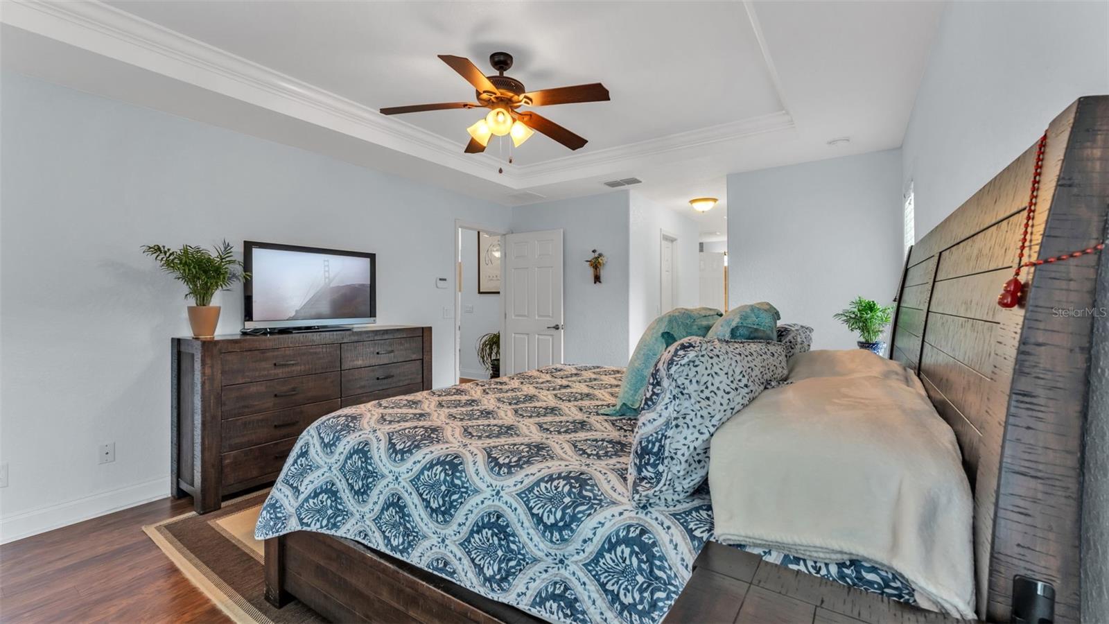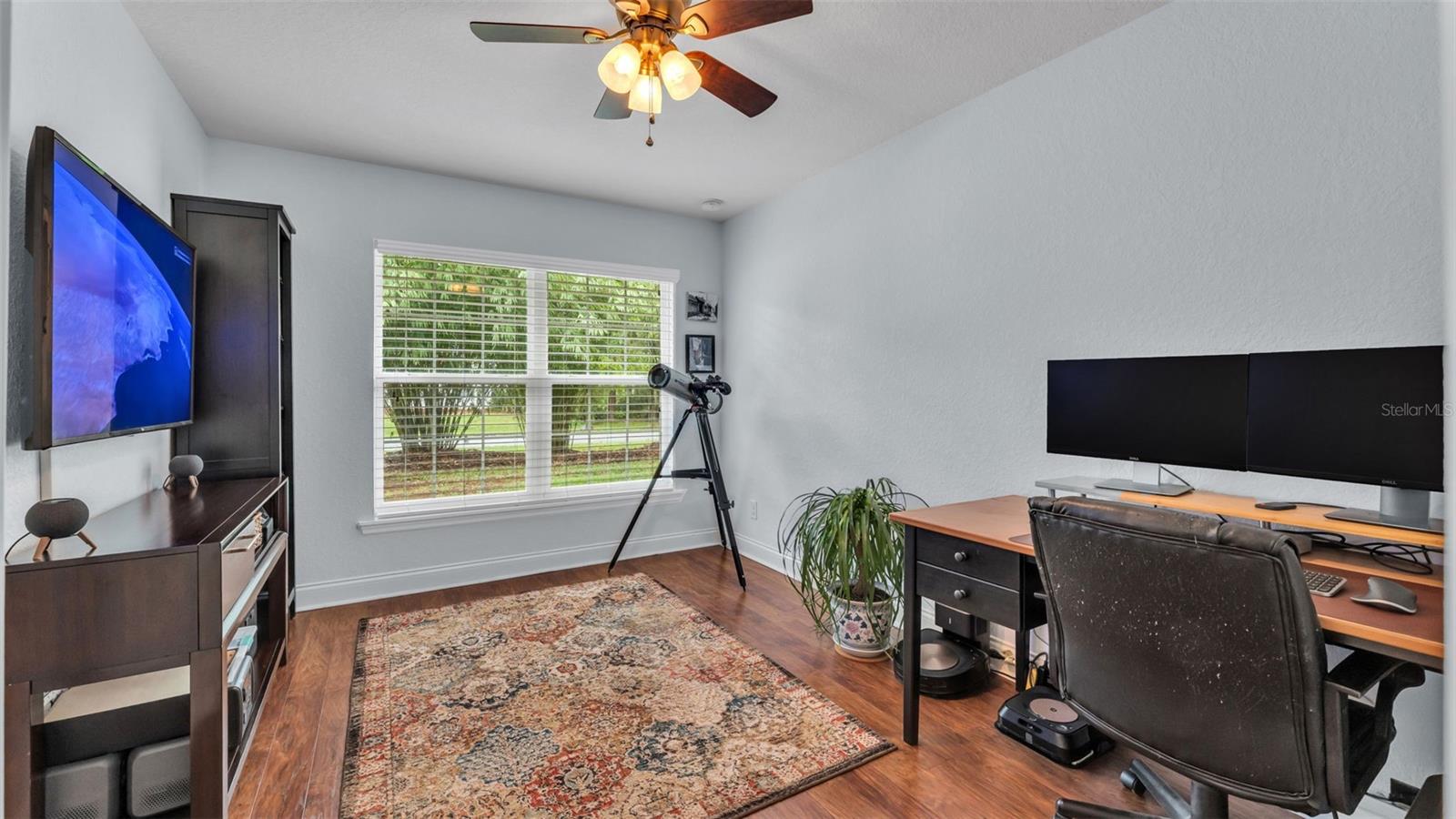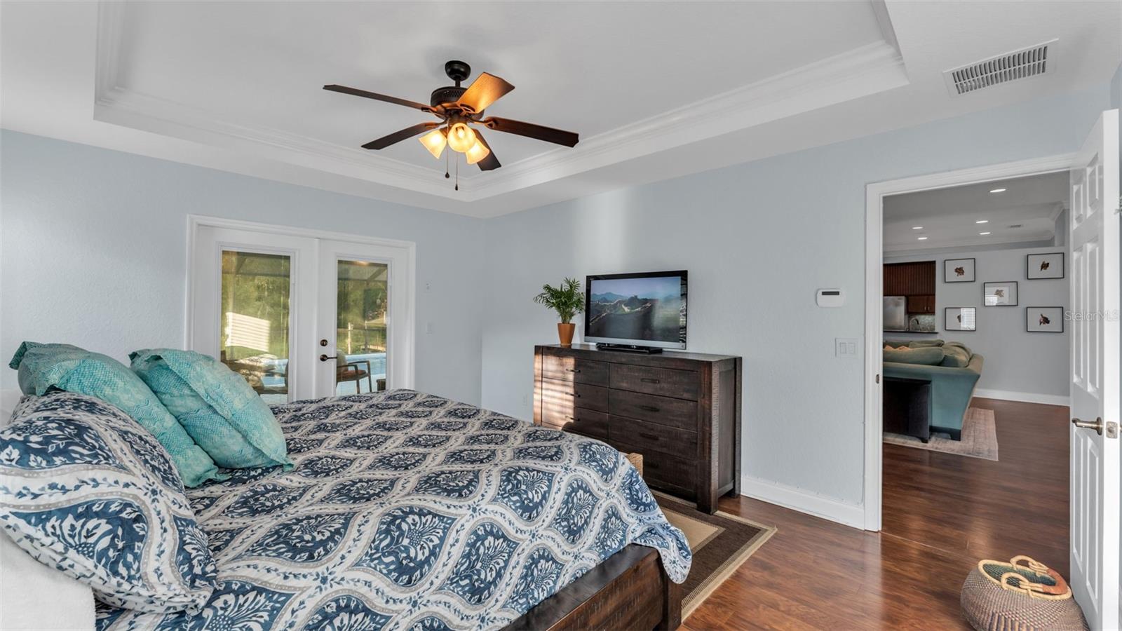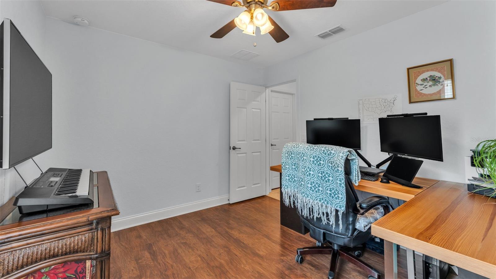Welcome to this exquisite 3-bedroom, 2-bathroom pool home with a dedicated office, set on a spacious half-acre lot in the highly desirable Deer Brooke subdivision of South Lakeland. Built in 2015 by Danny Sadler, Inc., this custom-crafted masterpiece blends modern design with timeless craftsmanship, offering the perfect combination of style, comfort, and functionality. As you step inside, soaring ceilings and elegant crown molding immediately create a sense of openness and sophistication. Beautiful wood laminate flooring runs seamlessly throughout, adding both warmth and durability. The expansive living room is designed for family gatherings and entertaining, offering effortless flow and connection between the main living spaces. At the heart of the home, the chef's kitchen is a true showstopper, featuring gleaming granite countertops, stainless steel appliances--including a newer dishwasher and induction oven--and abundant cabinetry and counter space to inspire your culinary creativity. A formal dining room, currently styled as a cozy study, provides versatile space to suit your lifestyle. The primary suite is an elegant private retreat, highlighted by tray ceilings and French doors leading directly to the serene lanai and pool. The spa-like en-suite bathroom features dual vanities, a walk-in tiled shower, and a soaking garden tub, creating the ultimate space to relax, unwind, and recharge at the end of the day. The spacious home office offers a quiet space for work or study at the front of the home. Two additional bedrooms on the opposite wing each include walk-in closets, ensuring comfort, privacy, and ample storage for family or guests. A thoughtfully designed second bathroom opens directly to the screened-in patio and pool--perfect for outdoor living. Step outside to your poolside paradise, where you can relax and entertain under the screened-in patio while taking in the tranquility of your backyard. With no rear neighbors and a natural backdrop, the sparkling pool invites you to unwind. Open the French doors and the outdoor living area seamlessly blends with the open floor plan, creating the ideal setting for a festive celebration or a memorable family barbecue. Conveniently located near shopping, dining, and with quick access to the Polk Parkway, commuting to Tampa or Orlando is a breeze. Move-in ready and meticulously maintained, this exceptional property is awaiting new owners ready to enjoy all it has to offer. Don't miss the opportunity to make this South Lakeland pool home your own!