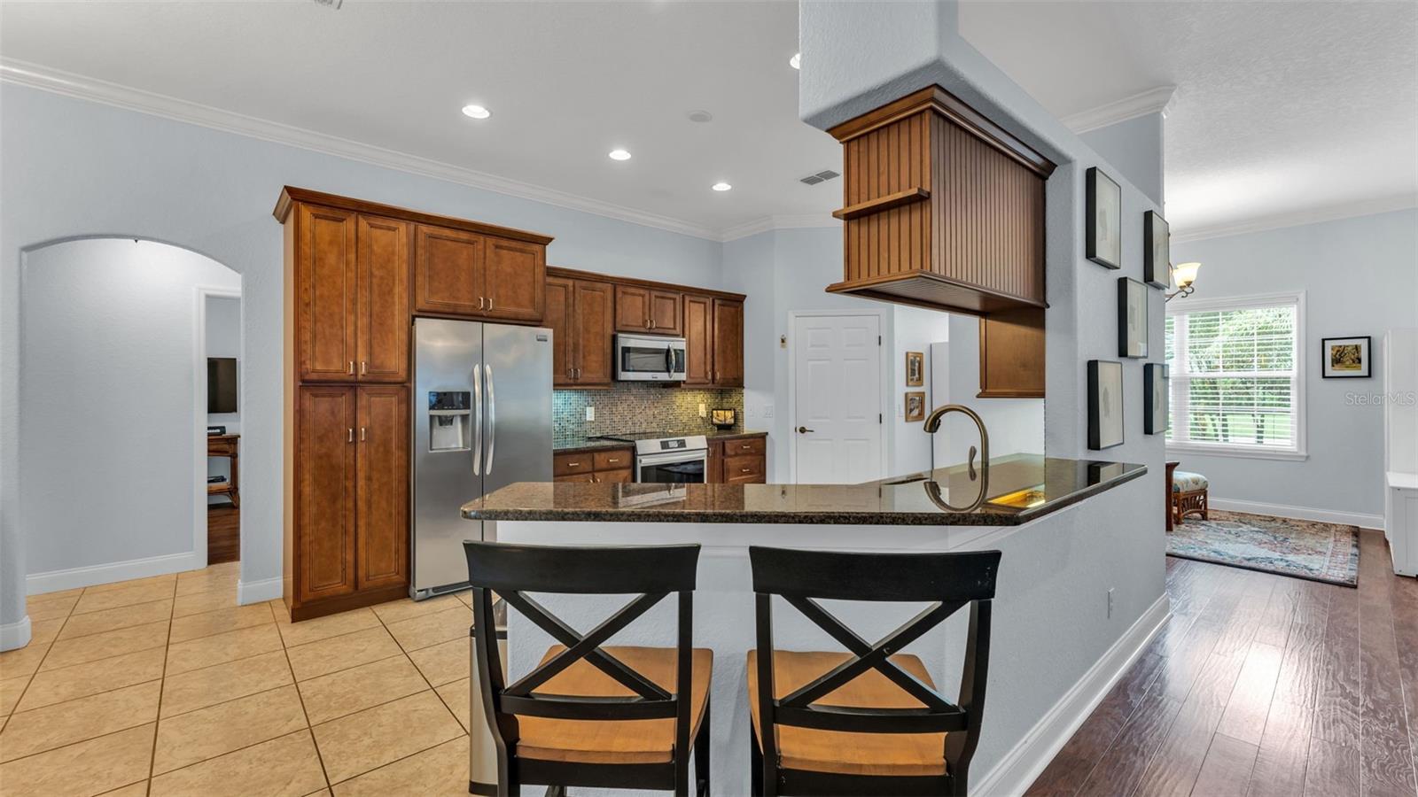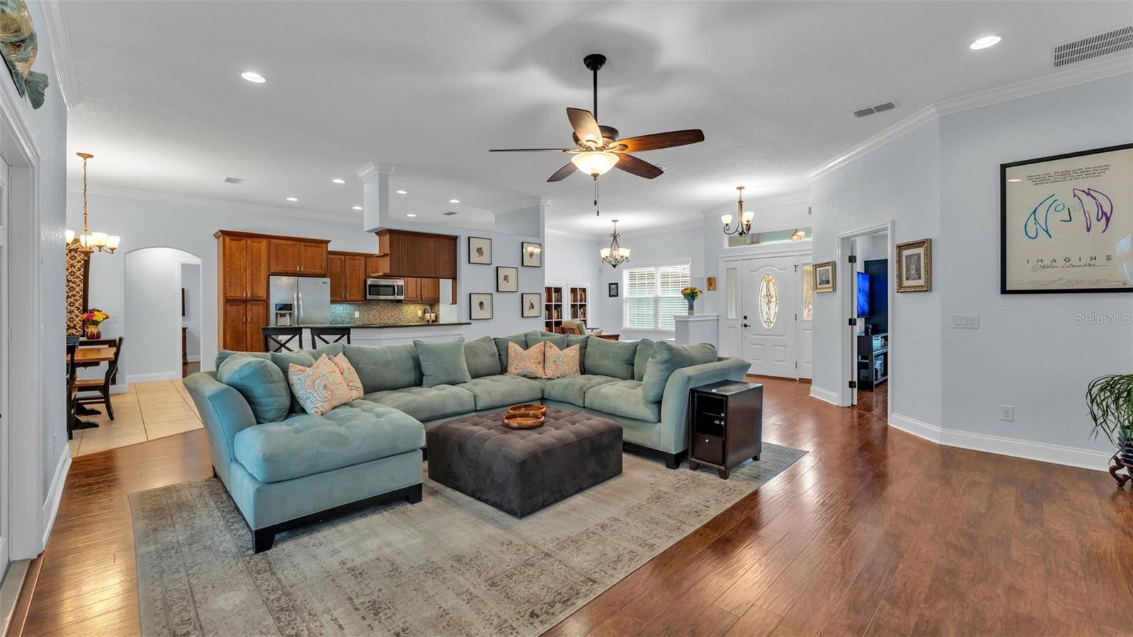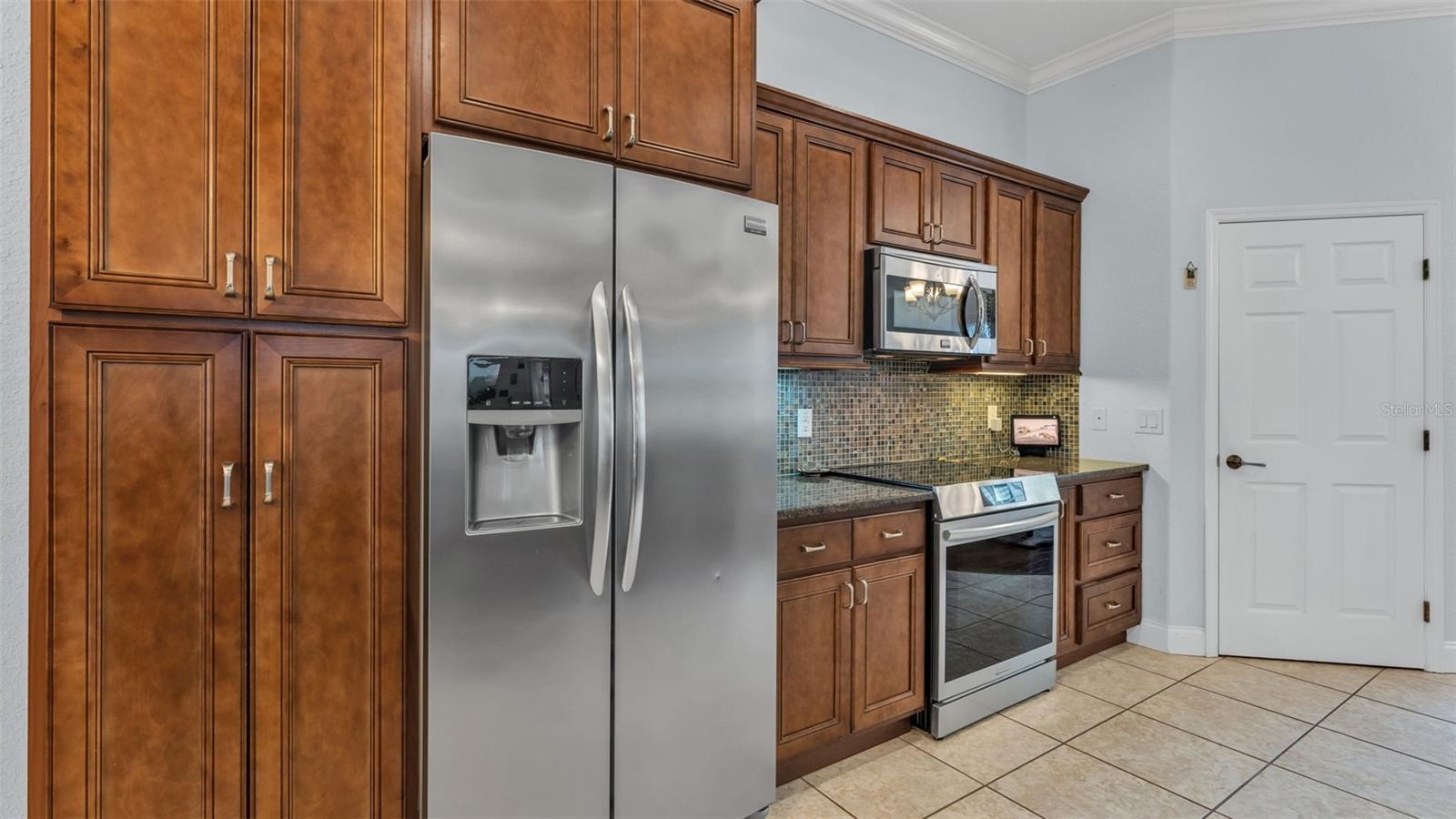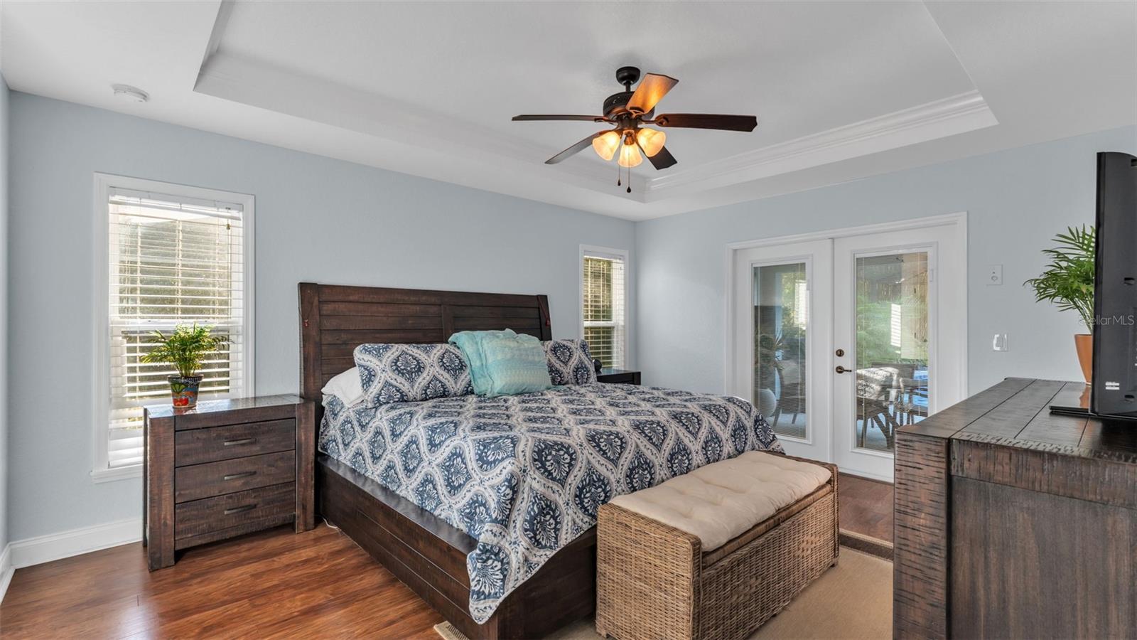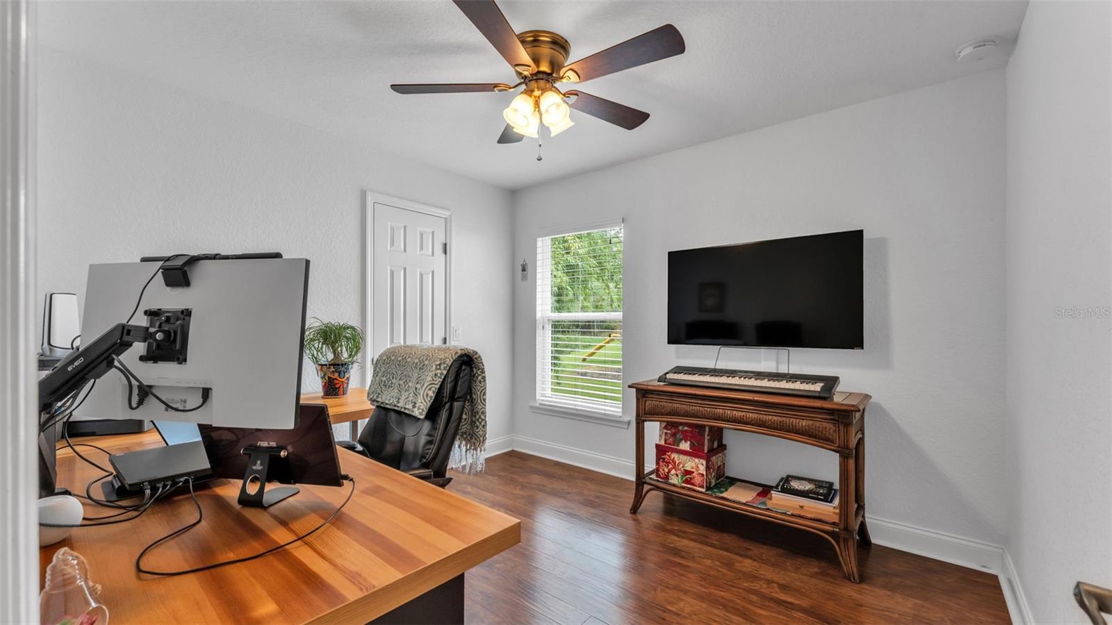 Welcome to this exquisite 3-bedroom, 2-bathroom pool home with a dedicated office, set on a spacious half-acre lot in the highly desirable Deer Brooke subdivision of South Lakeland. Built in 2015 by Danny Sadler, Inc., this custom-crafted masterpiece blends modern design with timeless craftsmanship, offering the perfect combination of style, comfort, and functionality. As you step inside, soaring ceilings and elegant crown molding immediately create a sense of openness and sophistication. Beautiful wood laminate flooring runs seamlessly throughout, adding both warmth and durability. The expansive living room is designed for family gatherings and entertaining, offering effortless flow and connection between the main living spaces. At the heart of the home, the chef's kitchen is a true showstopper, featuring gleaming granite countertops, stainless steel appliances--including a newer dishwasher and induction oven--and abundant cabinetry and counter space to inspire your culinary creativity. A formal dining room, currently styled as a cozy study, provides versatile space to suit your lifestyle. The primary suite is an elegant private retreat, highlighted by tray ceilings and French doors leading directly to the serene lanai and pool. The spa-like en-suite bathroom features dual vanities, a walk-in tiled shower, and a soaking garden tub, creating the ultimate space to relax, unwind, and recharge at the end of the day. The spacious home office offers a quiet space for work or study at the front of the home. Two additional bedrooms on the opposite wing each include walk-in closets, ensuring comfort, privacy, and ample storage for family or guests. A thoughtfully designed second bathroom opens directly to the screened-in patio and pool--perfect for outdoor living. Step outside to your poolside paradise, where you can relax and entertain under the screened-in patio while taking in the tranquility of your backyard. With no rear neighbors and a natural backdrop, the sparkling pool invites you to unwind. Open the French doors and the outdoor living area seamlessly blends with the open floor plan, creating the ideal setting for a festive celebration or a memorable family barbecue. Conveniently located near shopping, dining, and with quick access to the Polk Parkway, commuting to Tampa or Orlando is a breeze. Move-in ready and meticulously maintained, this exceptional property is awaiting new owners ready to enjoy all it has to offer. Don't miss the opportunity to make this South Lakeland pool home your own!