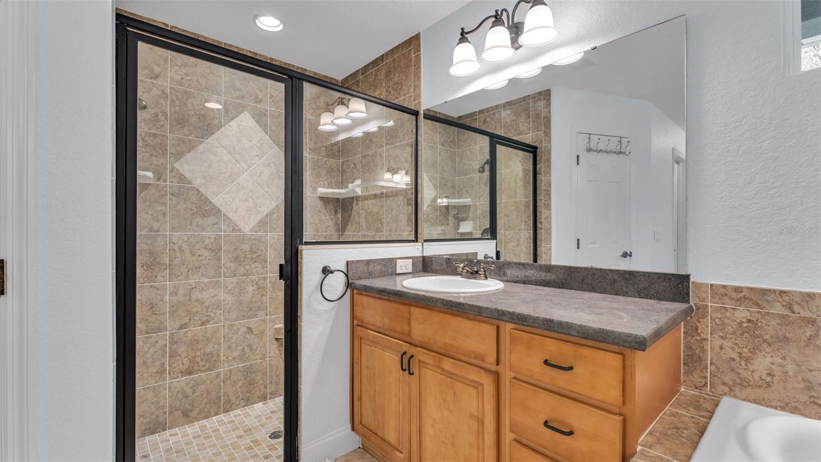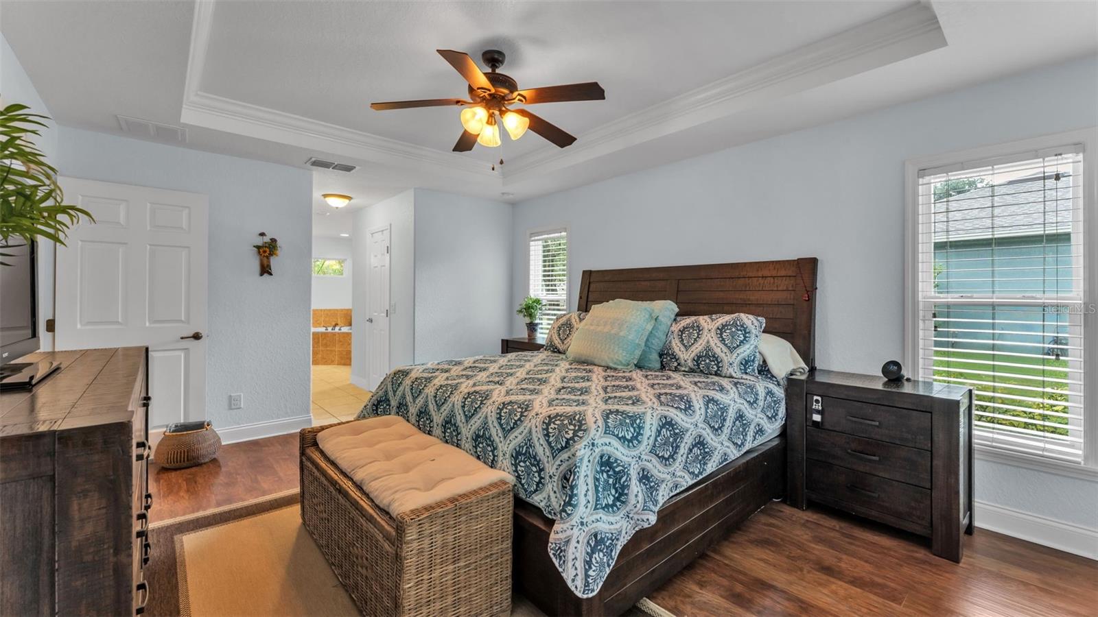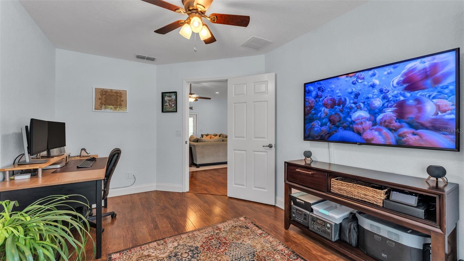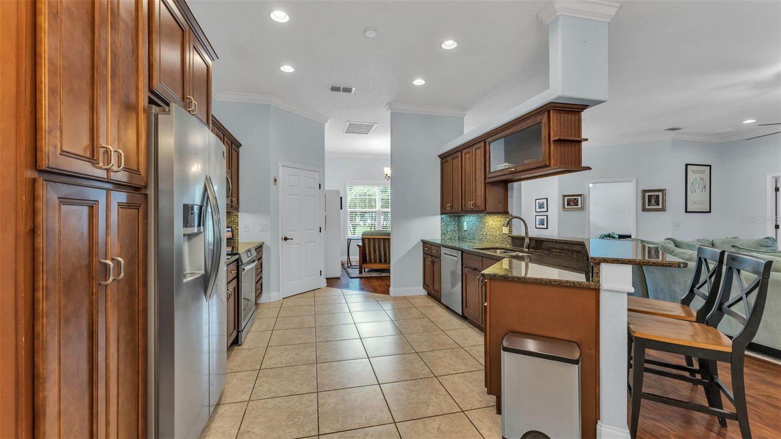 Welcome to this exquisite 3-bedroom, 2-bathroom pool home with a dedicated office, set on a spacious half-acre lot in the highly desirable Deer Brooke subdivision of South Lakeland. Built in 2015 by Danny Sadler, Inc., this custom-crafted masterpiece blends modern design with timeless craftsmanship, offering the perfect combination of style, comfort, and functionality. As you step inside, soaring ceilings and elegant crown molding immediately create a sense of openness and sophistication. Beautiful wood laminate flooring runs seamlessly throughout, adding both warmth and durability. The expansive living room is designed for family gatherings and entertaining, offering effortless flow and connection between the main living spaces. At the heart of the home, the chef's kitchen is a true showstopper, featuring gleaming granite countertops, stainless steel appliances--including a newer dishwasher and induction oven--and abundant cabinetry and counter space to inspire your culinary creativity. A formal dining room, currently styled as a cozy study, provides versatile space to suit your lifestyle. The primary suite is an elegant private retreat, highlighted by tray ceilings and French doors leading directly to the serene lanai and pool. The spa-like en-suite bathroom features dual vanities, a walk-in tiled shower, and a soaking garden tub, creating the ultimate space to relax, unwind, and recharge at the end of the day. The spacious home office offers a quiet space for work or study at the front of the home. Two additional bedrooms on the opposite wing each include walk-in closets, ensuring comfort, privacy, and ample storage for family or guests. A thoughtfully designed second bathroom opens directly to the screened-in patio and pool--perfect for outdoor living. Step outside to your poolside paradise, where you can relax and entertain under the screened-in patio while taking in the tranquility of your backyard. With no rear neighbors and a natural backdrop, the sparkling pool invites you to unwind. Open the French doors and the outdoor living area seamlessly blends with the open floor plan, creating the ideal setting for a festive celebration or a memorable family barbecue. Conveniently located near shopping, dining, and with quick access to the Polk Parkway, commuting to Tampa or Orlando is a breeze. Move-in ready and meticulously maintained, this exceptional property is awaiting new owners ready to enjoy all it has to offer. Don't miss the opportunity to make this South Lakeland pool home your own!