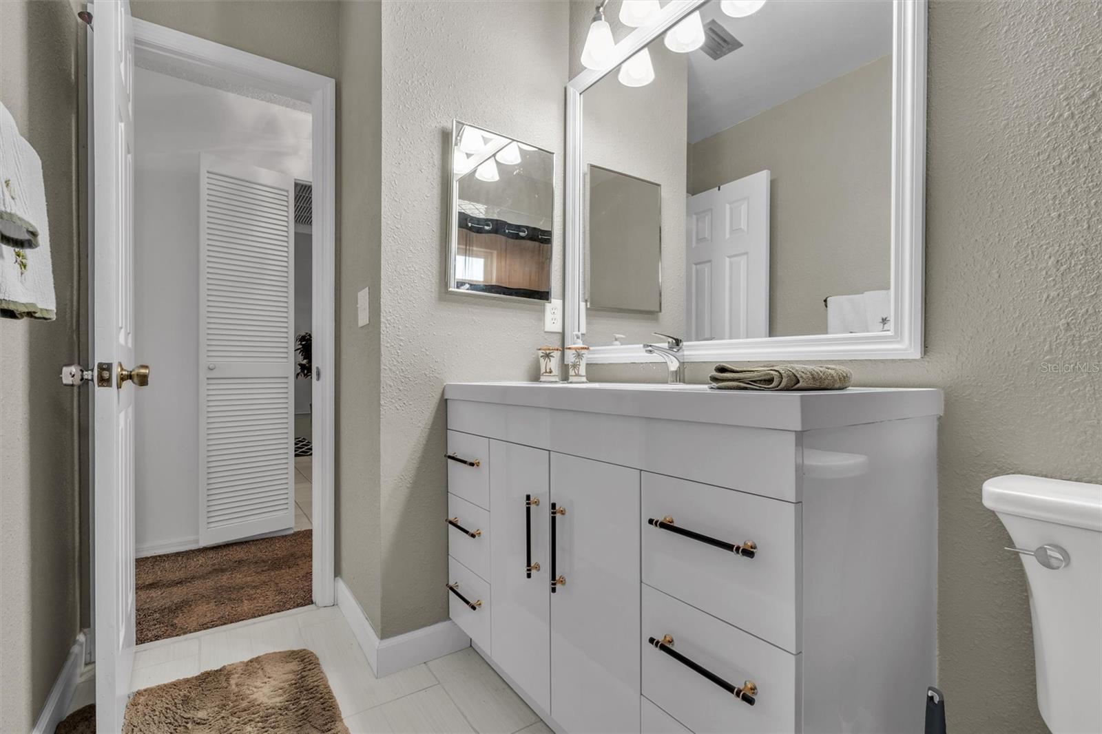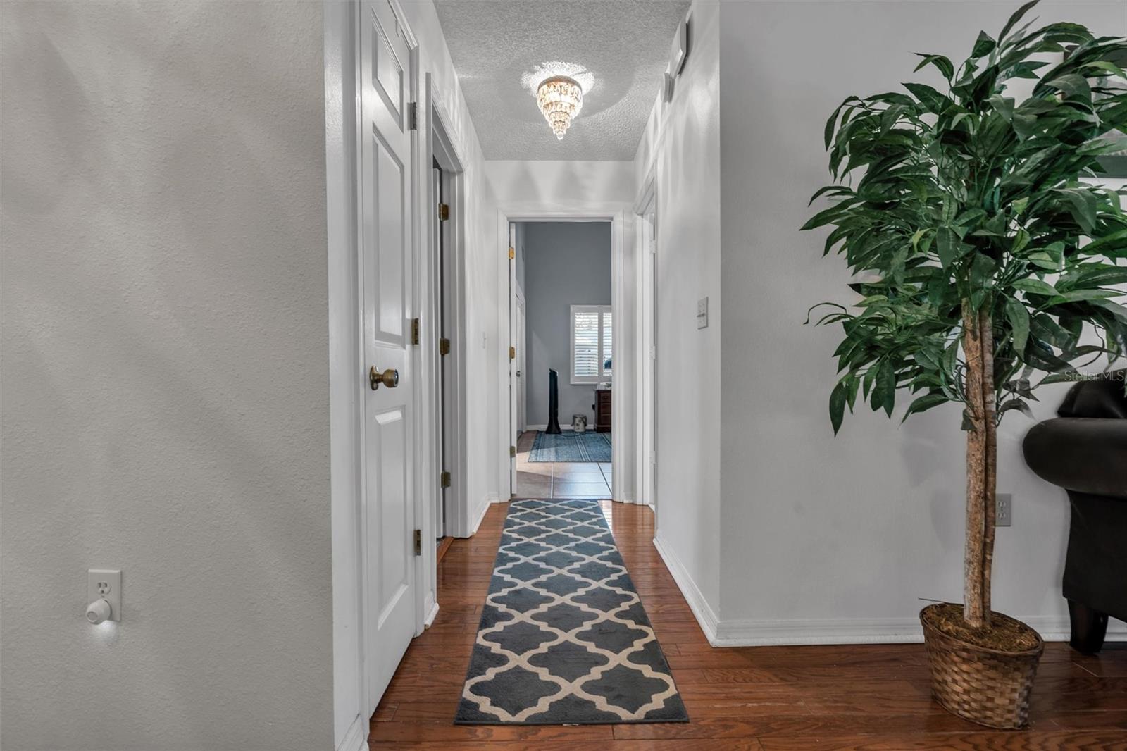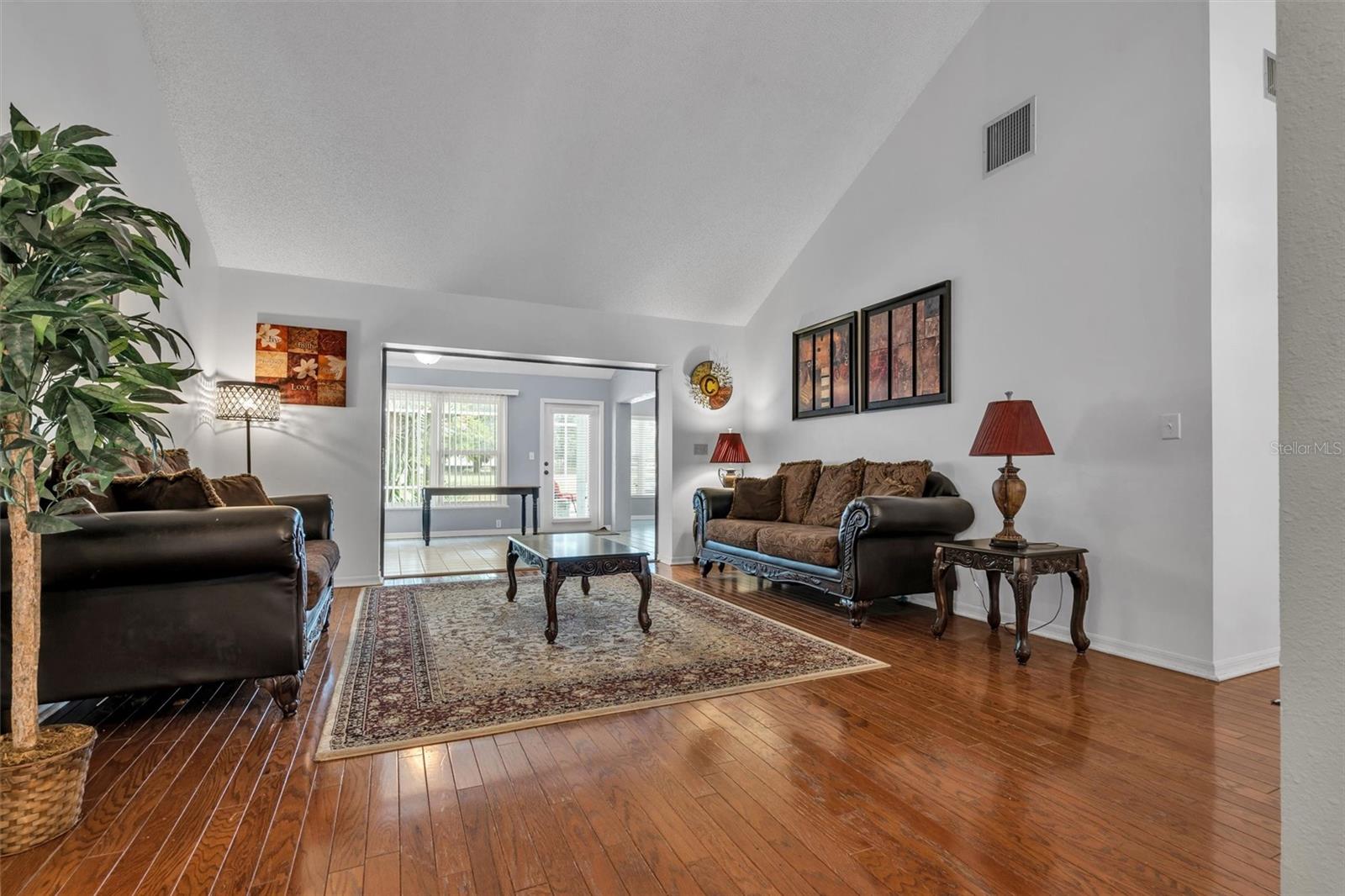 This well-maintained 4 bedroom, 3 bathroom pool home is in the desirable gated community of Cypresswood, offering stunning views of the golf course from your backyard. The family room, living room, and formal dining room are all adorned with beautifully polished hardwood flooring. The interior has been freshly painted, and all bedrooms and the formal dining room have plantation shutters. The kitchen has been updated with quartz countertops, stainless steel appliances, including a smart fridge and convection oven with built-in air fryer. The spacious family room has a cozy gas fireplace and overlooks the pool and golf course. The master suite boasts a recently renovated bathroom complete with quartz countertops, dual sinks, a large garden tub, and an exquisite walk-in titled shower. Enjoy a split floor plan for privacy. The screened patio overlooking the golf course is perfect for entertaining. Additionally, the roof is newer (2017), both AC units updated (one in 2018 and the other in 2022), exterior paint refreshed (2019), and a new gas hot water heater installed. This beautiful home is ready for you to make it your own!