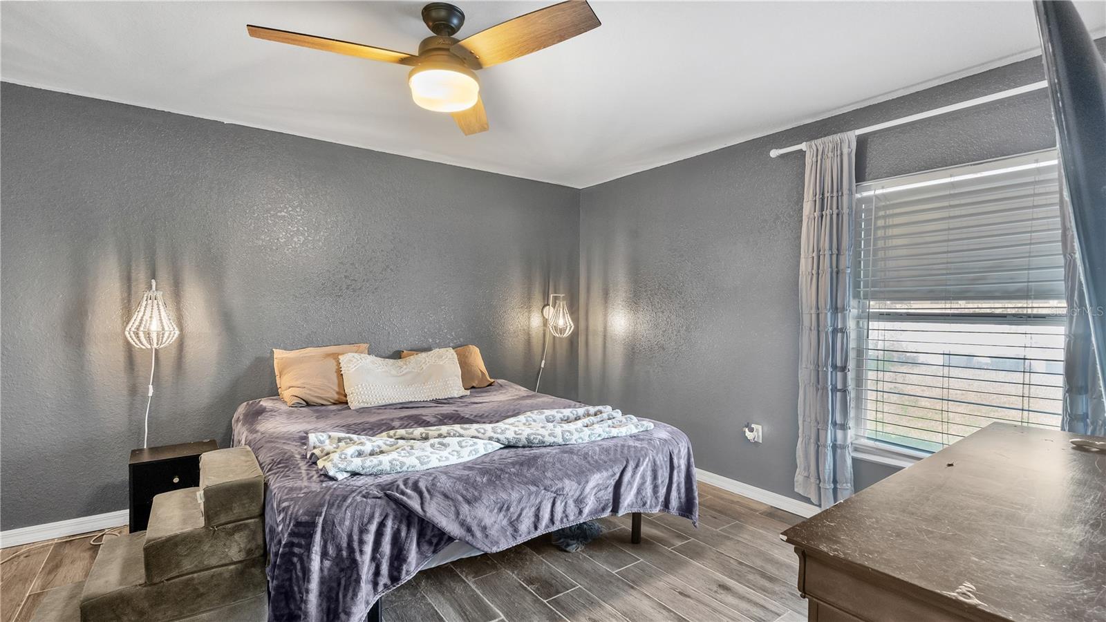 This stunning three-bedroom 2-bathroom North Lakeland home offers not only a spacious living room but also a formal dining area or flex room. As you step through the gorgeous double doors with keyless entry, you'll find yourself in a welcoming foyer leading to an open and airy floorplan. To the right, a versatile office/den space awaits behind elegant French doors, while on the left, a formal dining area or flex room provides the perfect backdrop for special occasions. The heart of this home is the light and bright open kitchen, featuring a stylish backsplash, decorative shelving, and stainless steel appliances that beautifully complement the granite countertops. The indoor utility room, adorned with custom decor, adds a touch of charm to the functionality of the space. Connected to the kitchen is a delightful cafe area with a window overlooking the lanai. The open floor plan seamlessly integrates the kitchen with the spacious living room, creating a perfect flow for both everyday living and entertaining. The living room is further enhanced by a large sliding glass door that not only overlooks the lanai but also provides a picturesque view of the privacy-fenced backyard. Step outside to the lanai and imagine enjoying your morning coffee or hosting gatherings in this private outdoor space. The well-designed split bedroom floor plan includes an Owner's Suite with a walk-in closet and an en-suite bath featuring a large garden soaking tub, a stand-up shower, dual vanities, and waterproof vinyl flooring. On the opposite side of the home, two additional bedrooms and a shared bath offer comfort and convenience, with easy access to the lanai. This home's open floor plan, stylish kitchen features, and private lanai overlooking the fenced backyard make it a truly exceptional residence. Conveniently located with easy access to I-4, grocery stores, and shopping, this home also qualifies for USDA 100% financing. Don't miss the chance to make this dream home yours--call now to schedule your private tour!