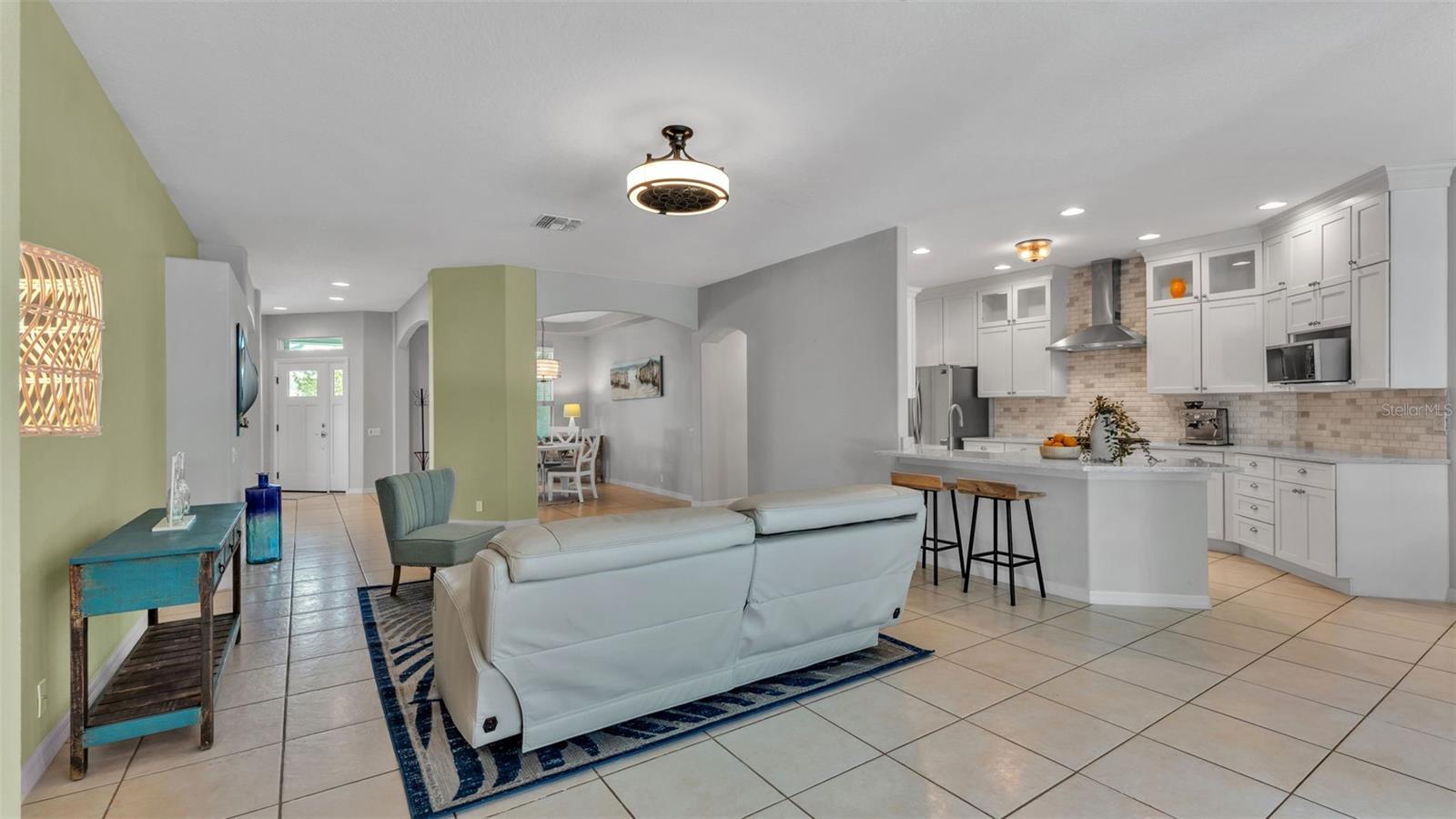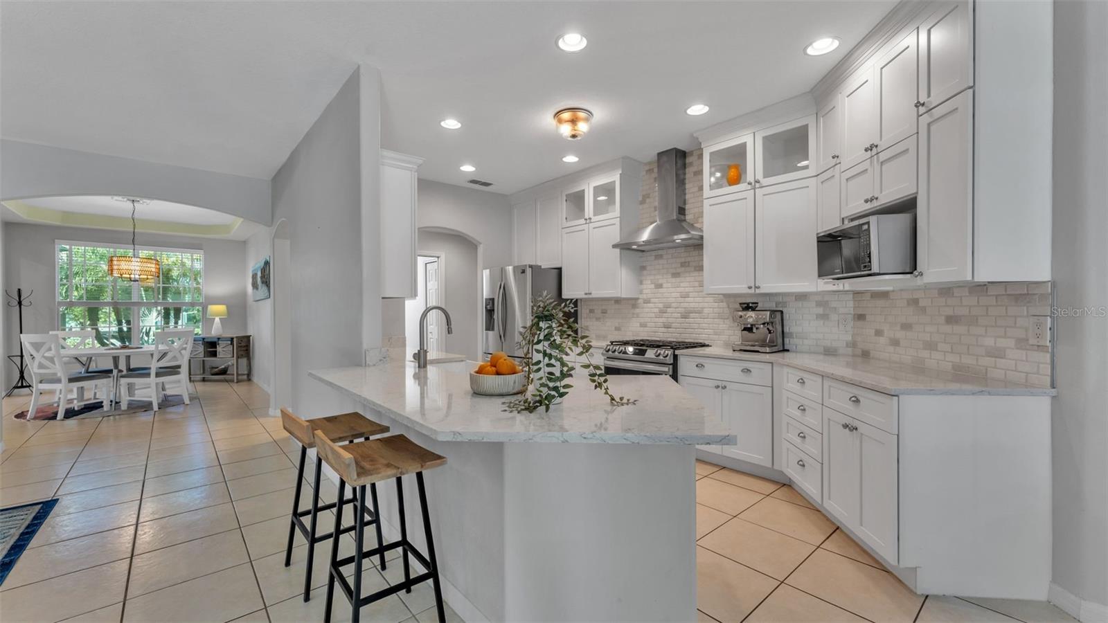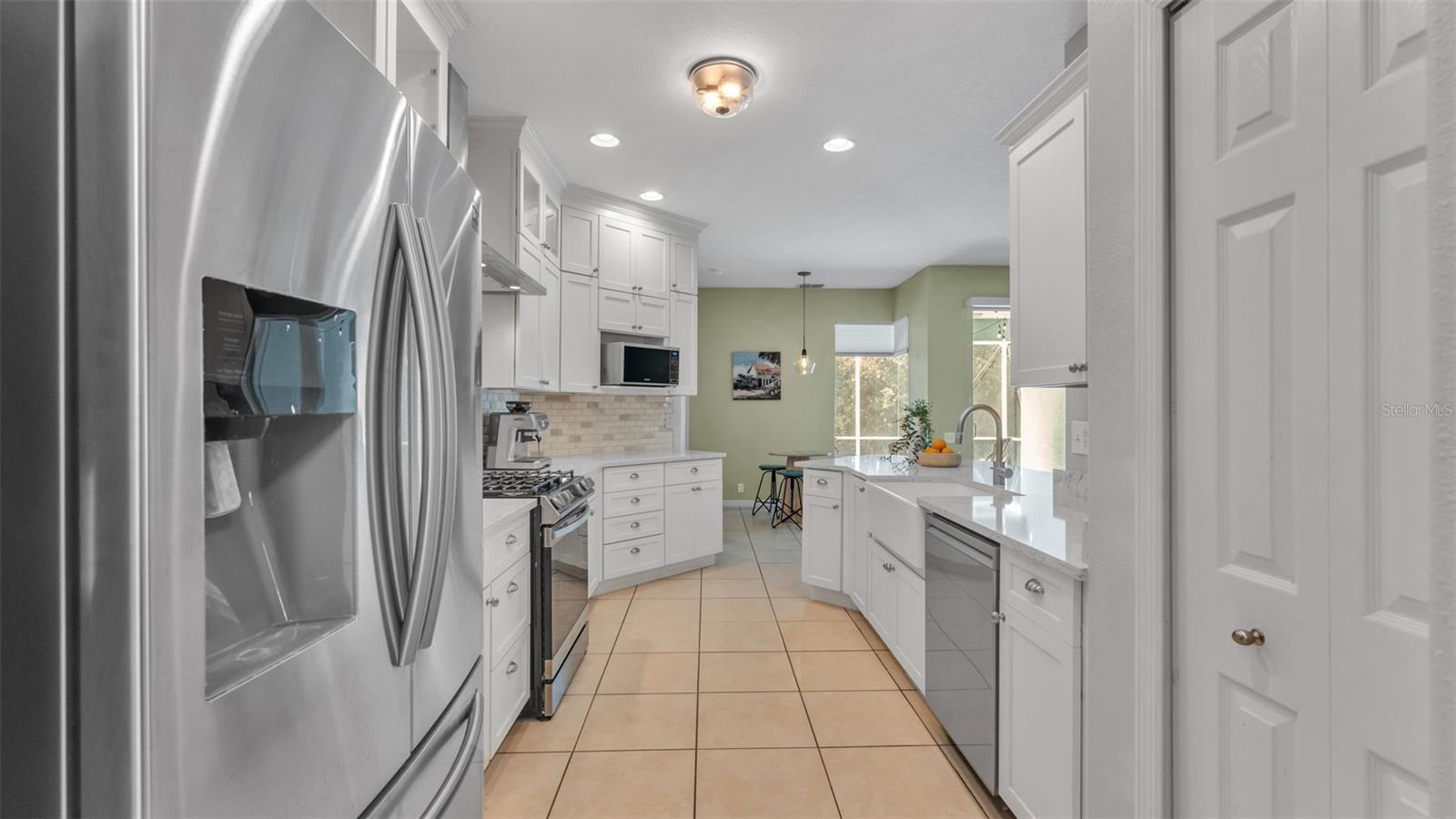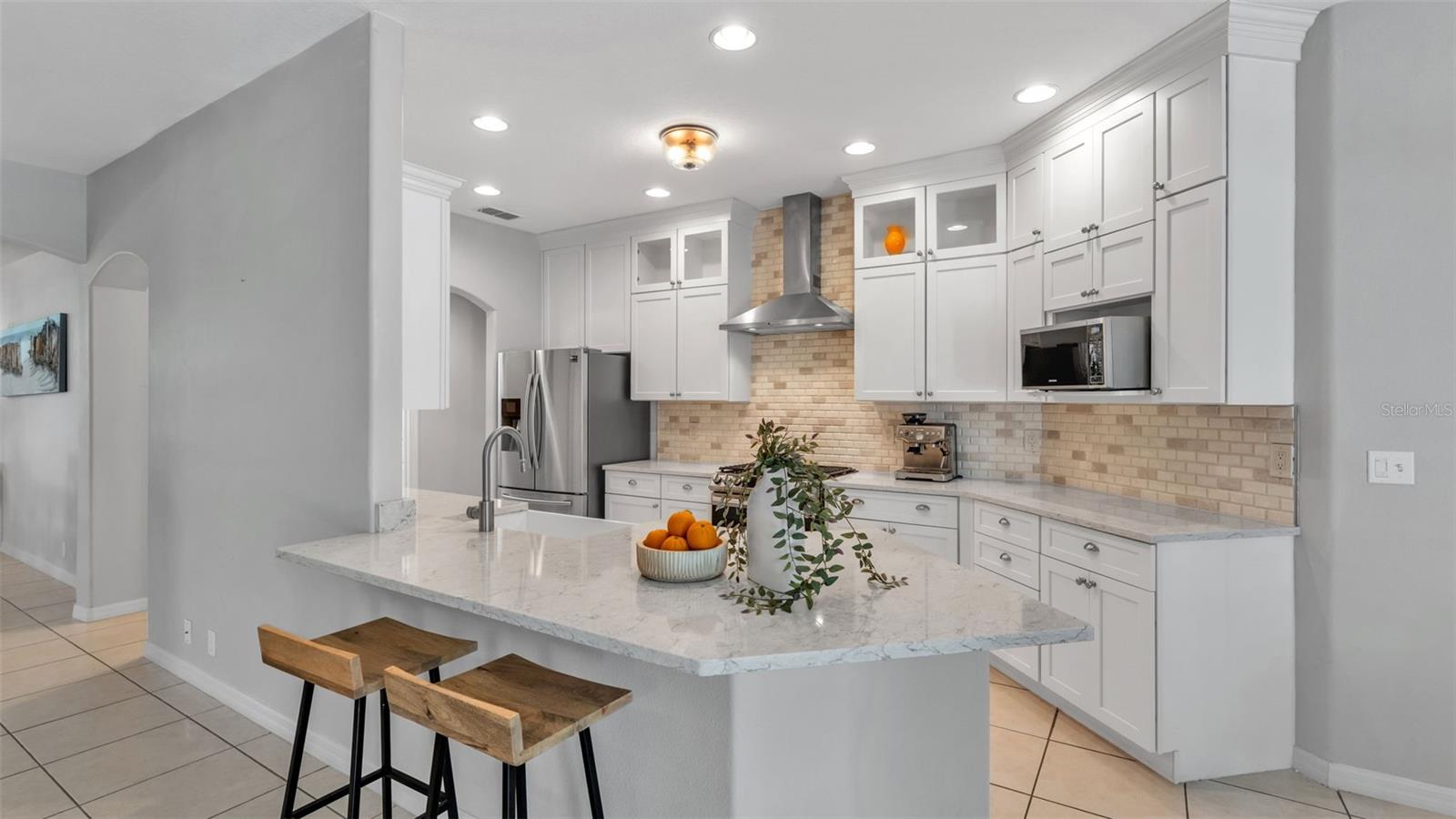 Welcome home to this stunning 4-bedroom, 3-bathroom residence in the highly sought-after 24/7 guard-gated community of Carillon Lakes in southwest Lakeland. From the moment you step inside, you'll notice the thoughtfully designed quad-split floor plan offering versatility and comfort. The home features split living areas plus an office at the front right with windows overlooking the yard--ideal for remote work or study. To the left, a formal dining area sets the stage for gatherings, while a flex room to the right serves perfectly as a cozy library or reading nook. The remodeled kitchen shines with Pompeii Quartz countertops, Italian marble backsplash, and upgraded appliances including a gas stove and dishwasher--both under warranty. This space opens into the main living area designed for comfort and connection. The home has been impeccably maintained with modern updates: GAF Silver roof (5 years), new AC and processor (2023), water heater (2023), front door (2024), and LiftMaster garage opener (2021). Smart features include a Google Nest doorbell and Sensi Smart Thermostat. The primary suite is a true retreat with a spa-style bath, glass-enclosed shower, floating tub, and custom California closet. Two guest bedrooms share a full bath, while a private guest suite with its own bath on the far left adds comfort and privacy--creating a triple-split layout plus office for flexibility. Outdoors, enjoy your extended screened lanai backing up to a wooded preserve, offering peace and privacy. The PVC-fenced dog area, rescreened lanai (2021), and updated landscaping and sprinklers (2024) make outdoor living effortless. Interior and exterior colors from the Sherwin-Williams Coastal Collection perfectly complement Florida's natural charm. Located in a prime southwest Lakeland location, Carillon Lakes blends peaceful suburban living with exceptional convenience. Residents enjoy quick access to the Polk Parkway and I-4, making commutes to Tampa and Orlando easy. The neighborhood is minutes from Publix Corporate, GEICO, Lakeland Linder Airport, and premier shopping and dining at Lakeside Village. Carillon Lakes offers a secure, amenity-rich community featuring a clubhouse with fitness center, billiards room, library, and event spaces, plus a resort pool and spa, pickleball and tennis courts, basketball, scenic trails, playground, and gazebo overlooking the water. The HOA covers lawn care, cable, and internet, providing a truly low-maintenance lifestyle. This combination of amenities, location, and lifestyle makes Carillon Lakes an exceptional choice for buyers seeking comfort, community, and convenience.