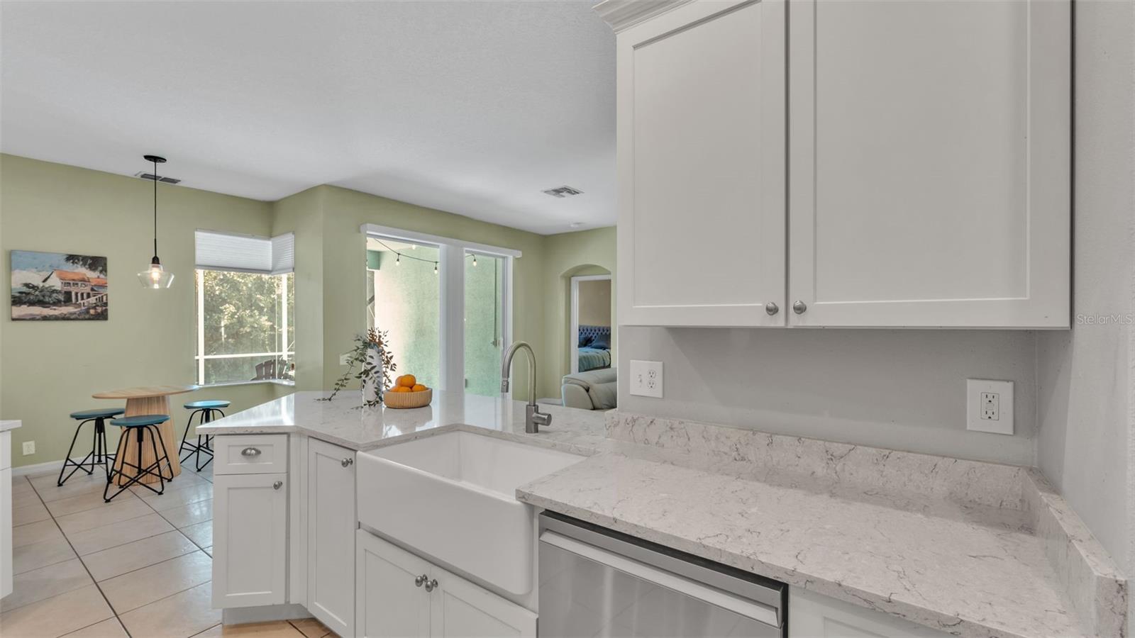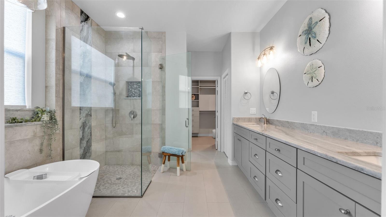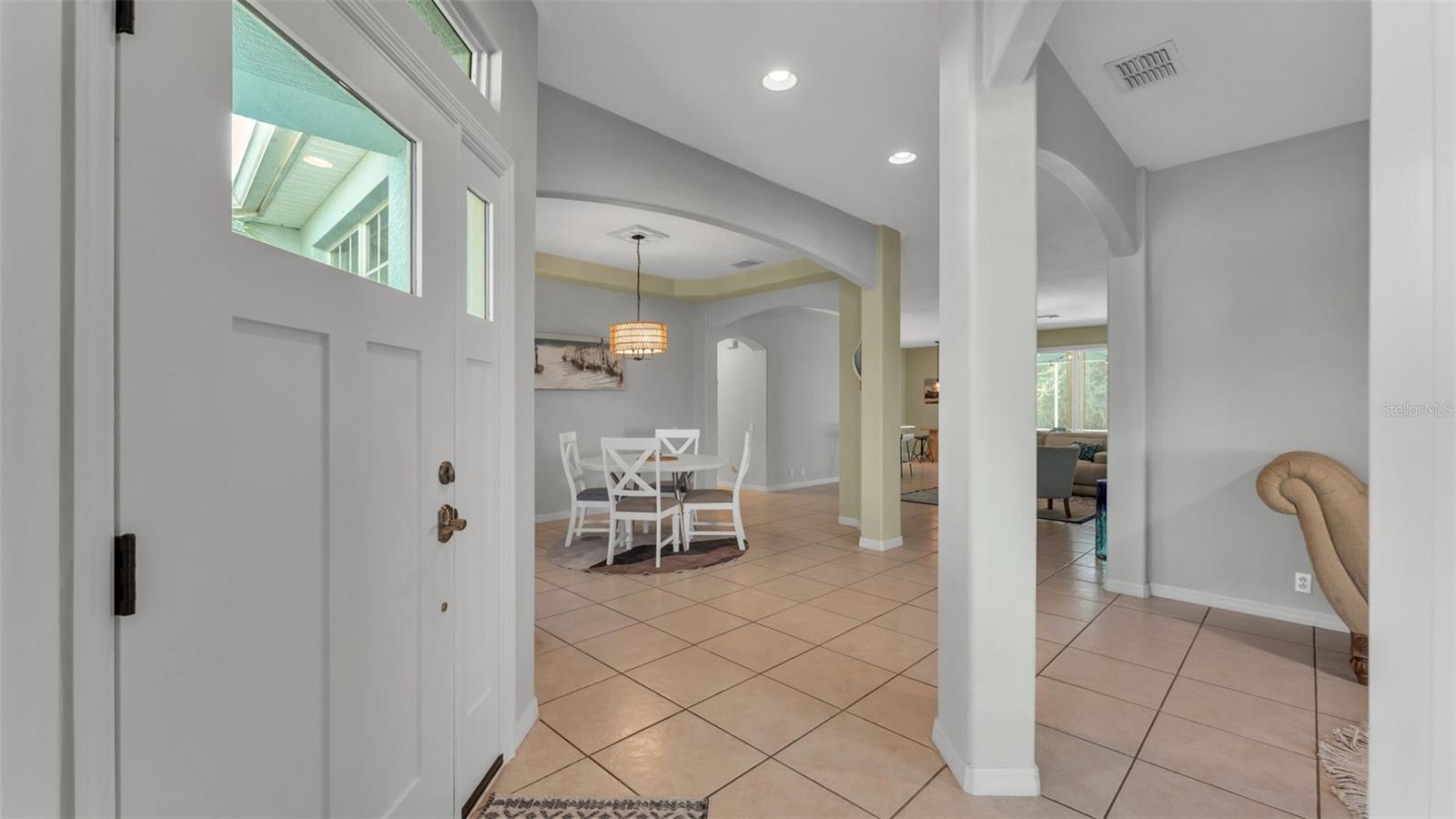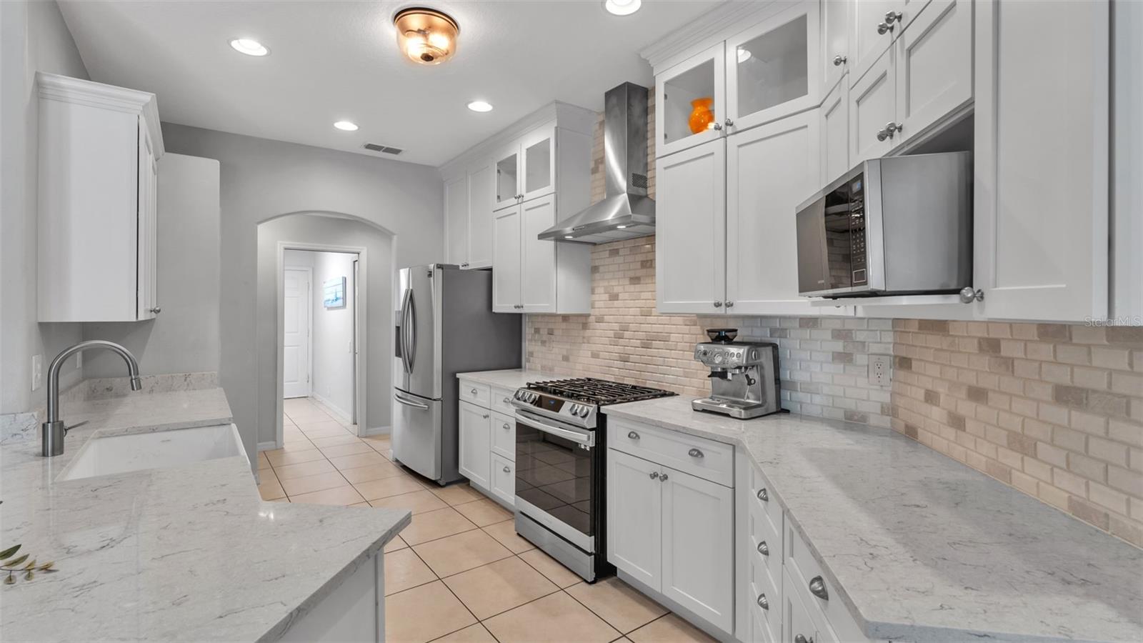 Welcome home to this stunning 4-bedroom, 3-bathroom residence in the highly sought-after 24/7 guard-gated community of Carillon Lakes in southwest Lakeland. From the moment you step inside, you'll notice the thoughtfully designed quad-split floor plan offering versatility and comfort. The home features split living areas plus an office at the front right with windows overlooking the yard--ideal for remote work or study. To the left, a formal dining area sets the stage for gatherings, while a flex room to the right serves perfectly as a cozy library or reading nook. The remodeled kitchen shines with Pompeii Quartz countertops, Italian marble backsplash, and upgraded appliances including a gas stove and dishwasher--both under warranty. This space opens into the main living area designed for comfort and connection. The home has been impeccably maintained with modern updates: GAF Silver roof (5 years), new AC and processor (2023), water heater (2023), front door (2024), and LiftMaster garage opener (2021). Smart features include a Google Nest doorbell and Sensi Smart Thermostat. The primary suite is a true retreat with a spa-style bath, glass-enclosed shower, floating tub, and custom California closet. Two guest bedrooms share a full bath, while a private guest suite with its own bath on the far left adds comfort and privacy--creating a triple-split layout plus office for flexibility. Outdoors, enjoy your extended screened lanai backing up to a wooded preserve, offering peace and privacy. The PVC-fenced dog area, rescreened lanai (2021), and updated landscaping and sprinklers (2024) make outdoor living effortless. Interior and exterior colors from the Sherwin-Williams Coastal Collection perfectly complement Florida's natural charm. Located in a prime southwest Lakeland location, Carillon Lakes blends peaceful suburban living with exceptional convenience. Residents enjoy quick access to the Polk Parkway and I-4, making commutes to Tampa and Orlando easy. The neighborhood is minutes from Publix Corporate, GEICO, Lakeland Linder Airport, and premier shopping and dining at Lakeside Village. Carillon Lakes offers a secure, amenity-rich community featuring a clubhouse with fitness center, billiards room, library, and event spaces, plus a resort pool and spa, pickleball and tennis courts, basketball, scenic trails, playground, and gazebo overlooking the water. The HOA covers lawn care, cable, and internet, providing a truly low-maintenance lifestyle. This combination of amenities, location, and lifestyle makes Carillon Lakes an exceptional choice for buyers seeking comfort, community, and convenience.