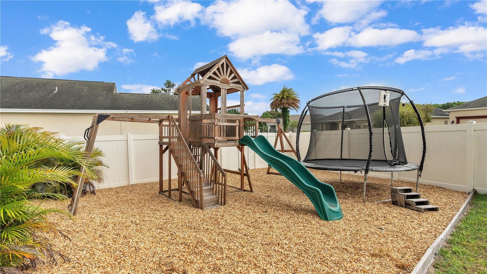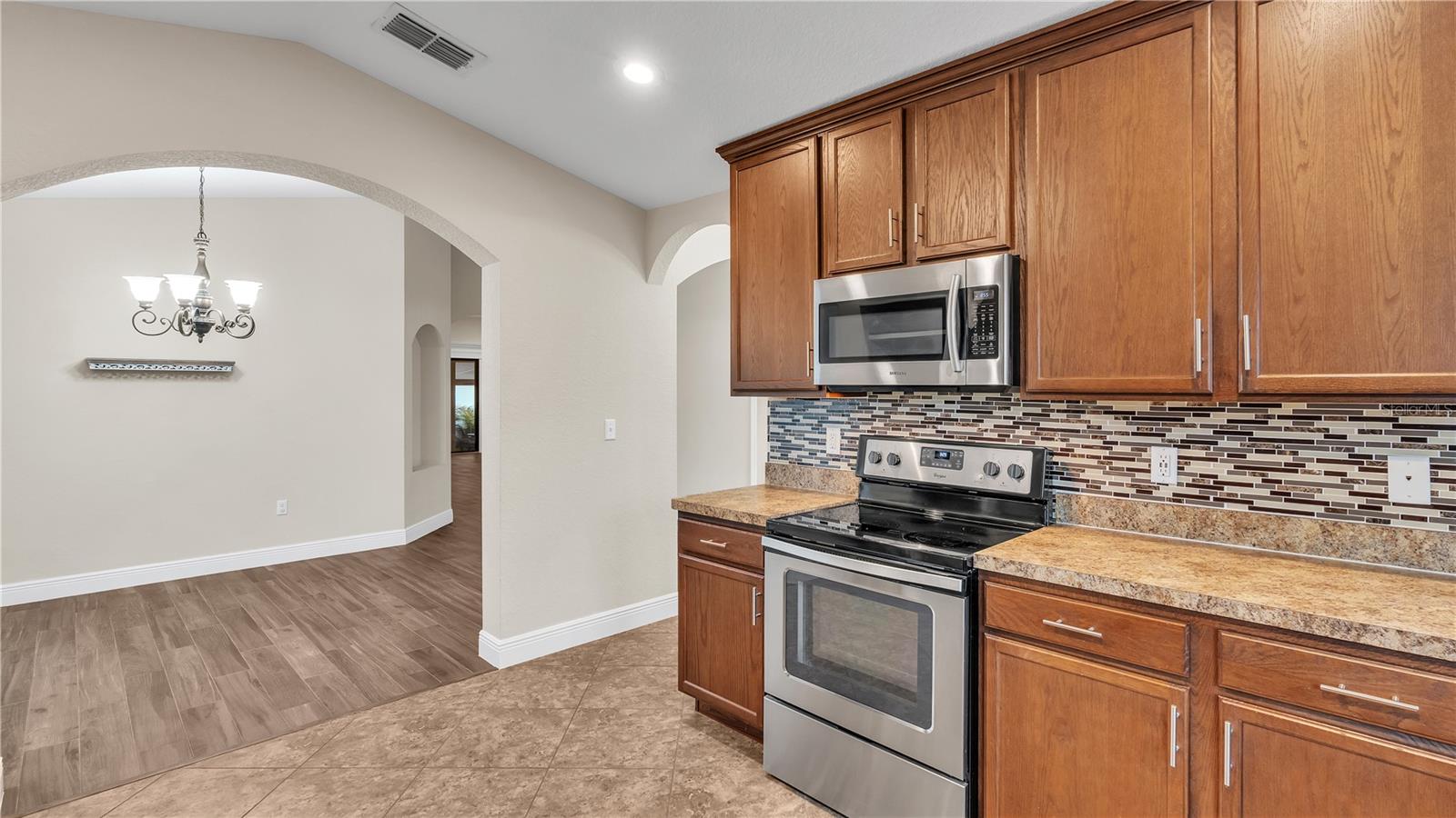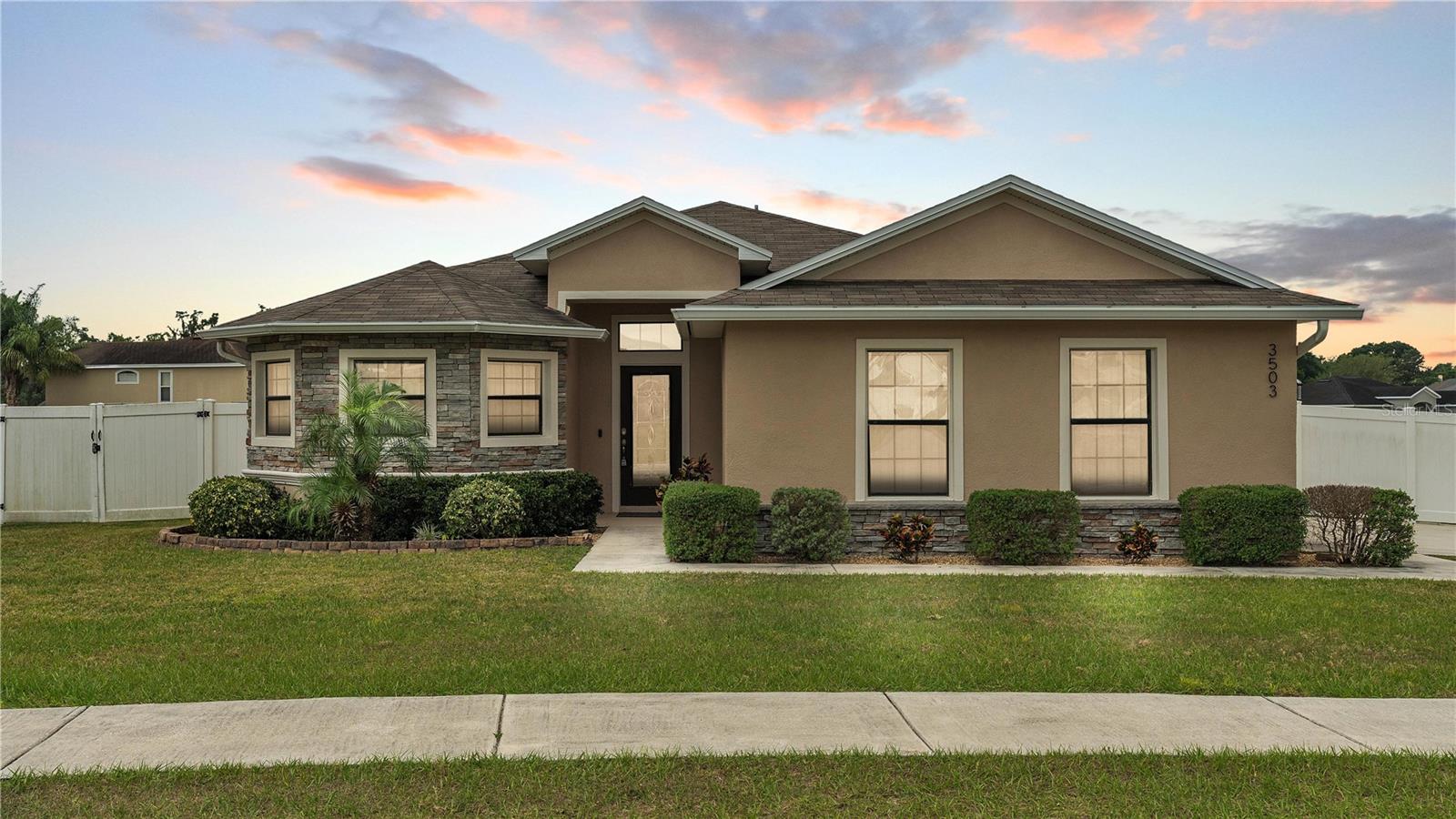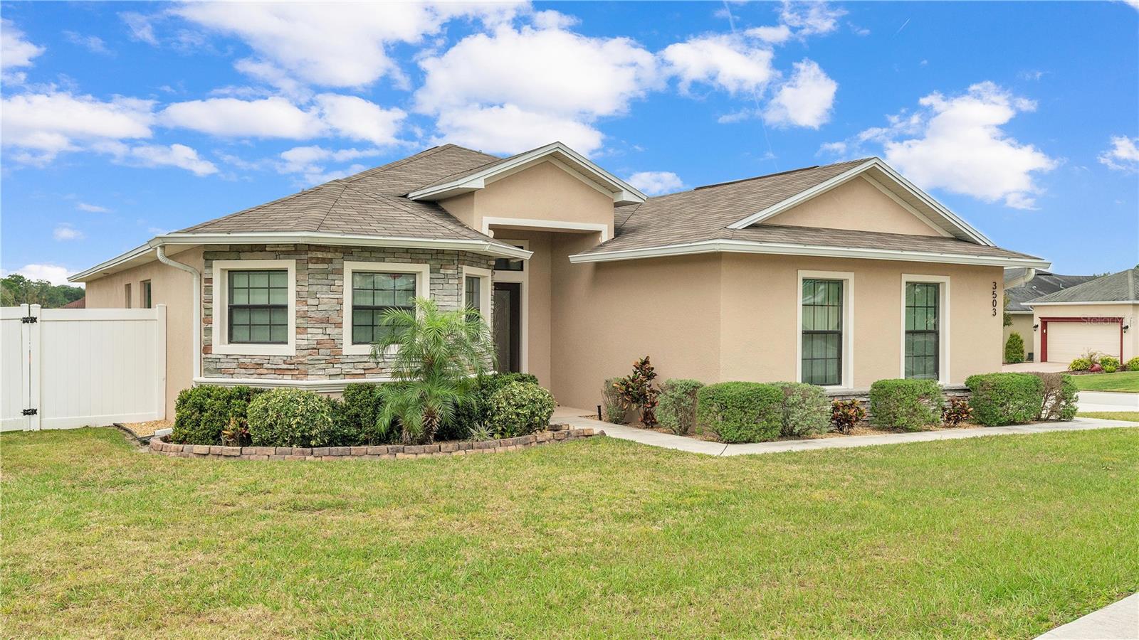 One or more photo(s) has been virtually staged. **PRICE IMPROVEMENT**Introducing this stunning 4 bedroom, 2 bathroom home located in the desirable Oakford Estates neighborhood in South Lakeland. Situated on a spacious corner lot, this home offers both privacy and curb appeal. As soon as you step inside, you'll be greeted by the beautiful wood-look tile flooring that flows throughout the main living areas. The formal dining room seamlessly connects to the spacious kitchen, making it perfect for entertaining guests or hosting family gatherings. The kitchen features stainless steel appliances, an upgraded backsplash, an abundance of cabinets for storage, and plenty of counter space for meal preparation. One of the key features of this home is the tri split floor plan, which offers maximum privacy and separation between bedrooms. The primary bedroom is a true retreat, boasting an ensuite bathroom complete with two walk-in closets, dual vanity sinks, a luxurious garden tub, and a recently upgraded tile shower. On the opposite side of the home, you'll find two additional bedrooms that share a guest bathroom. One of these bedrooms stands out with its custom Disney castle wall and ceiling chandelier. The fourth bedroom is conveniently located across from the primary bedroom and offers stunning views of the expansive fenced-in backyard. With ample space, this fourth bedroom could easily serve as a home office, gym, or playroom. The living room is bathed in natural light thanks to the large windows, creating a bright and airy atmosphere. From the living room, you can step out onto the large custom-built patio, which lends itself perfectly to entertaining guests or simply enjoying a quiet evening outside. Convenience is a highlight of this home, as it is located in close proximity to the Parkway, providing an easy commute to work or access to nearby shopping and dining options. Don't miss the opportunity to make this incredible property your own!