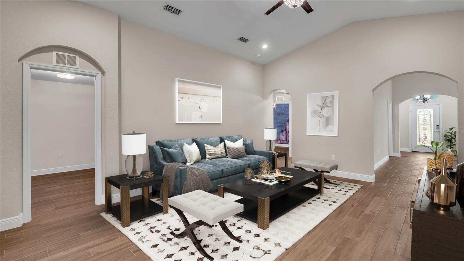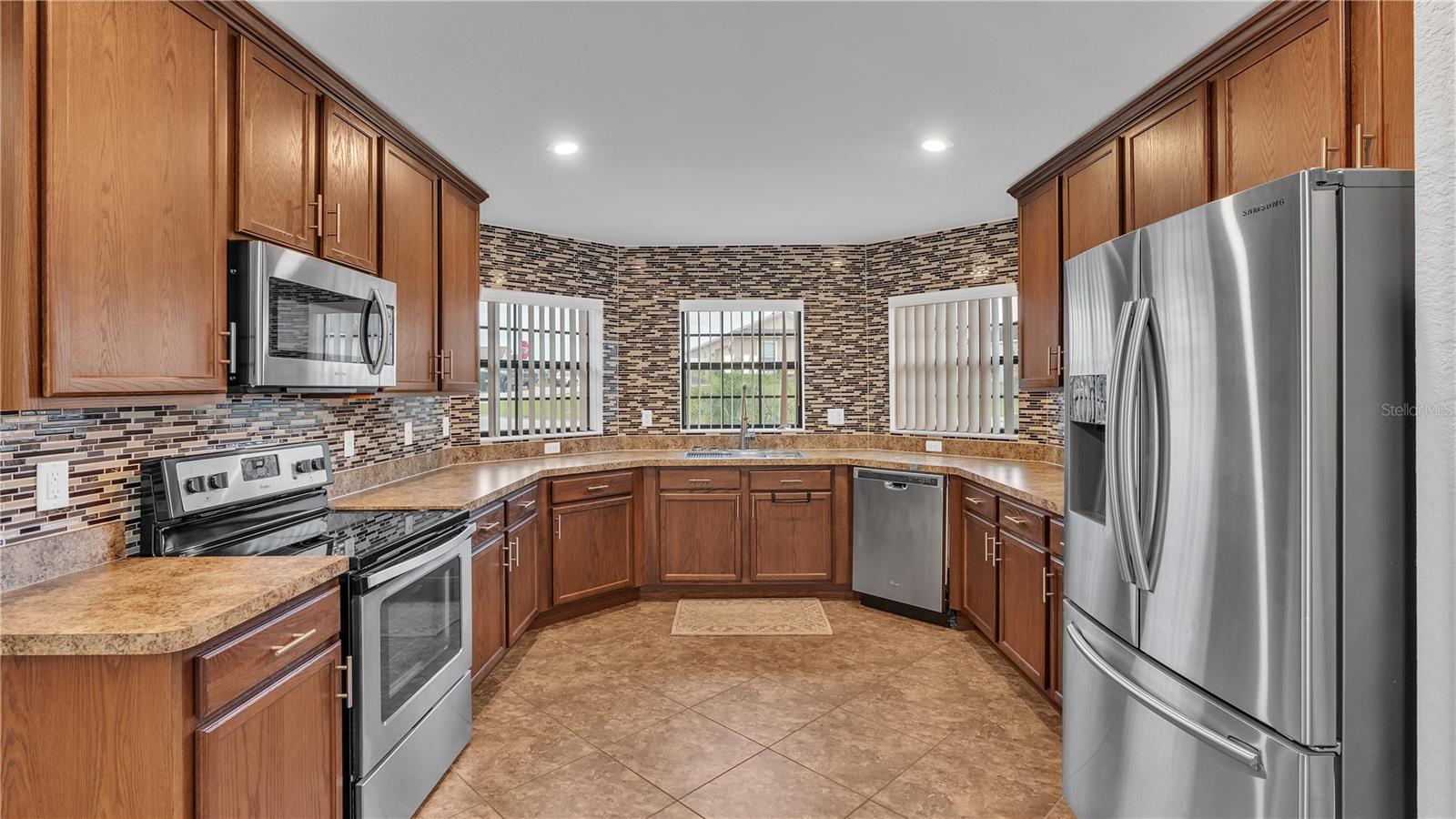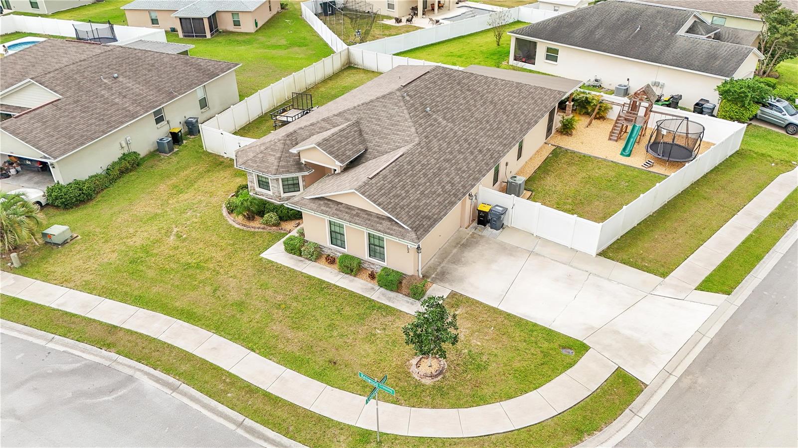 One or more photo(s) has been virtually staged. **PRICE IMPROVEMENT**Introducing this stunning 4 bedroom, 2 bathroom home located in the desirable Oakford Estates neighborhood in South Lakeland. Situated on a spacious corner lot, this home offers both privacy and curb appeal. As soon as you step inside, you'll be greeted by the beautiful wood-look tile flooring that flows throughout the main living areas. The formal dining room seamlessly connects to the spacious kitchen, making it perfect for entertaining guests or hosting family gatherings. The kitchen features stainless steel appliances, an upgraded backsplash, an abundance of cabinets for storage, and plenty of counter space for meal preparation. One of the key features of this home is the tri split floor plan, which offers maximum privacy and separation between bedrooms. The primary bedroom is a true retreat, boasting an ensuite bathroom complete with two walk-in closets, dual vanity sinks, a luxurious garden tub, and a recently upgraded tile shower. On the opposite side of the home, you'll find two additional bedrooms that share a guest bathroom. One of these bedrooms stands out with its custom Disney castle wall and ceiling chandelier. The fourth bedroom is conveniently located across from the primary bedroom and offers stunning views of the expansive fenced-in backyard. With ample space, this fourth bedroom could easily serve as a home office, gym, or playroom. The living room is bathed in natural light thanks to the large windows, creating a bright and airy atmosphere. From the living room, you can step out onto the large custom-built patio, which lends itself perfectly to entertaining guests or simply enjoying a quiet evening outside. Convenience is a highlight of this home, as it is located in close proximity to the Parkway, providing an easy commute to work or access to nearby shopping and dining options. Don't miss the opportunity to make this incredible property your own!