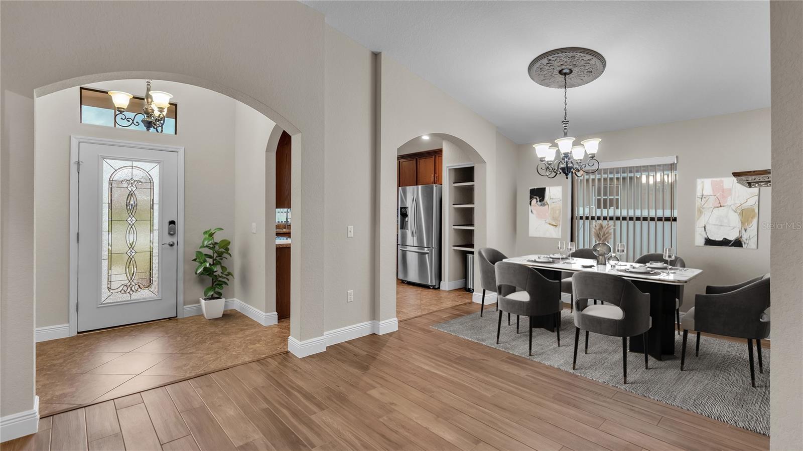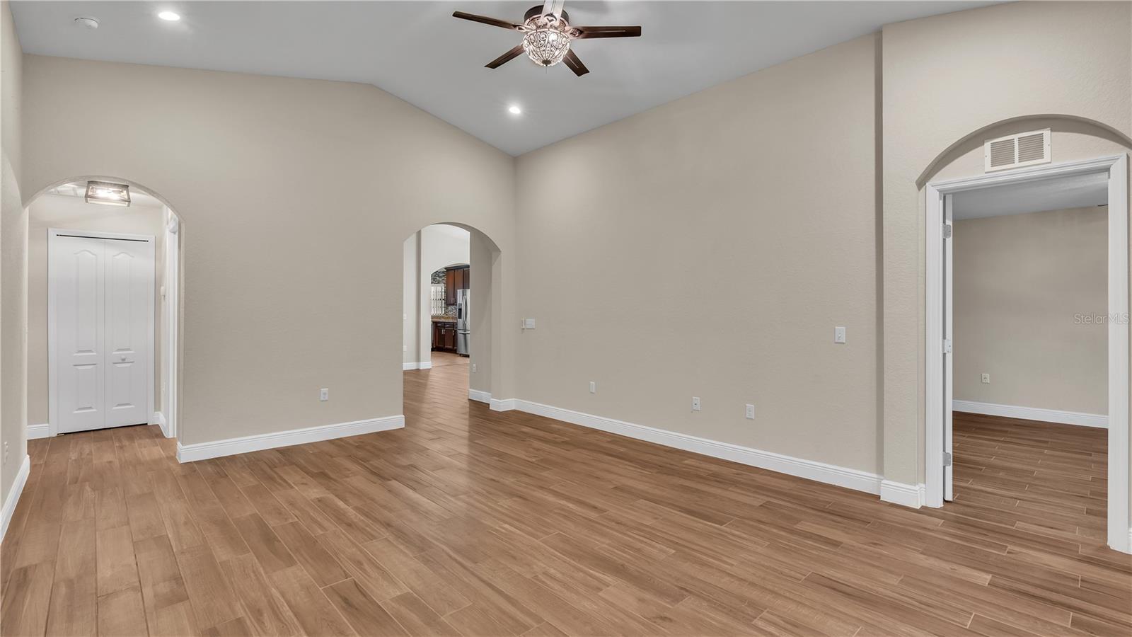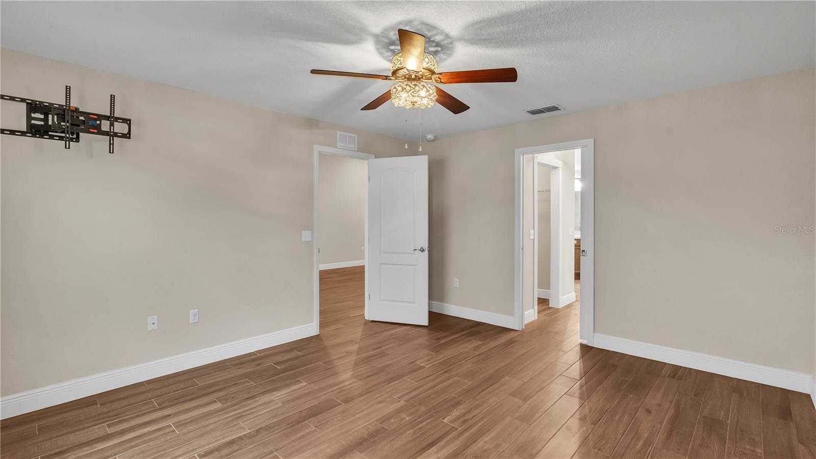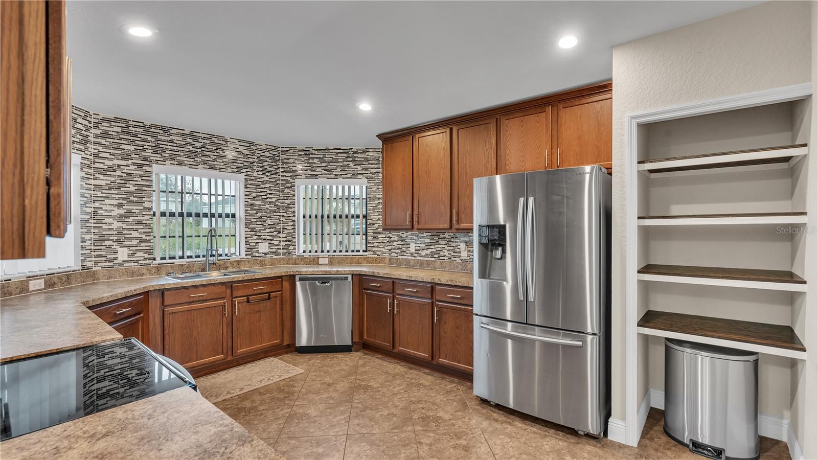 One or more photo(s) has been virtually staged. **PRICE IMPROVEMENT**Introducing this stunning 4 bedroom, 2 bathroom home located in the desirable Oakford Estates neighborhood in South Lakeland. Situated on a spacious corner lot, this home offers both privacy and curb appeal. As soon as you step inside, you'll be greeted by the beautiful wood-look tile flooring that flows throughout the main living areas. The formal dining room seamlessly connects to the spacious kitchen, making it perfect for entertaining guests or hosting family gatherings. The kitchen features stainless steel appliances, an upgraded backsplash, an abundance of cabinets for storage, and plenty of counter space for meal preparation. One of the key features of this home is the tri split floor plan, which offers maximum privacy and separation between bedrooms. The primary bedroom is a true retreat, boasting an ensuite bathroom complete with two walk-in closets, dual vanity sinks, a luxurious garden tub, and a recently upgraded tile shower. On the opposite side of the home, you'll find two additional bedrooms that share a guest bathroom. One of these bedrooms stands out with its custom Disney castle wall and ceiling chandelier. The fourth bedroom is conveniently located across from the primary bedroom and offers stunning views of the expansive fenced-in backyard. With ample space, this fourth bedroom could easily serve as a home office, gym, or playroom. The living room is bathed in natural light thanks to the large windows, creating a bright and airy atmosphere. From the living room, you can step out onto the large custom-built patio, which lends itself perfectly to entertaining guests or simply enjoying a quiet evening outside. Convenience is a highlight of this home, as it is located in close proximity to the Parkway, providing an easy commute to work or access to nearby shopping and dining options. Don't miss the opportunity to make this incredible property your own!