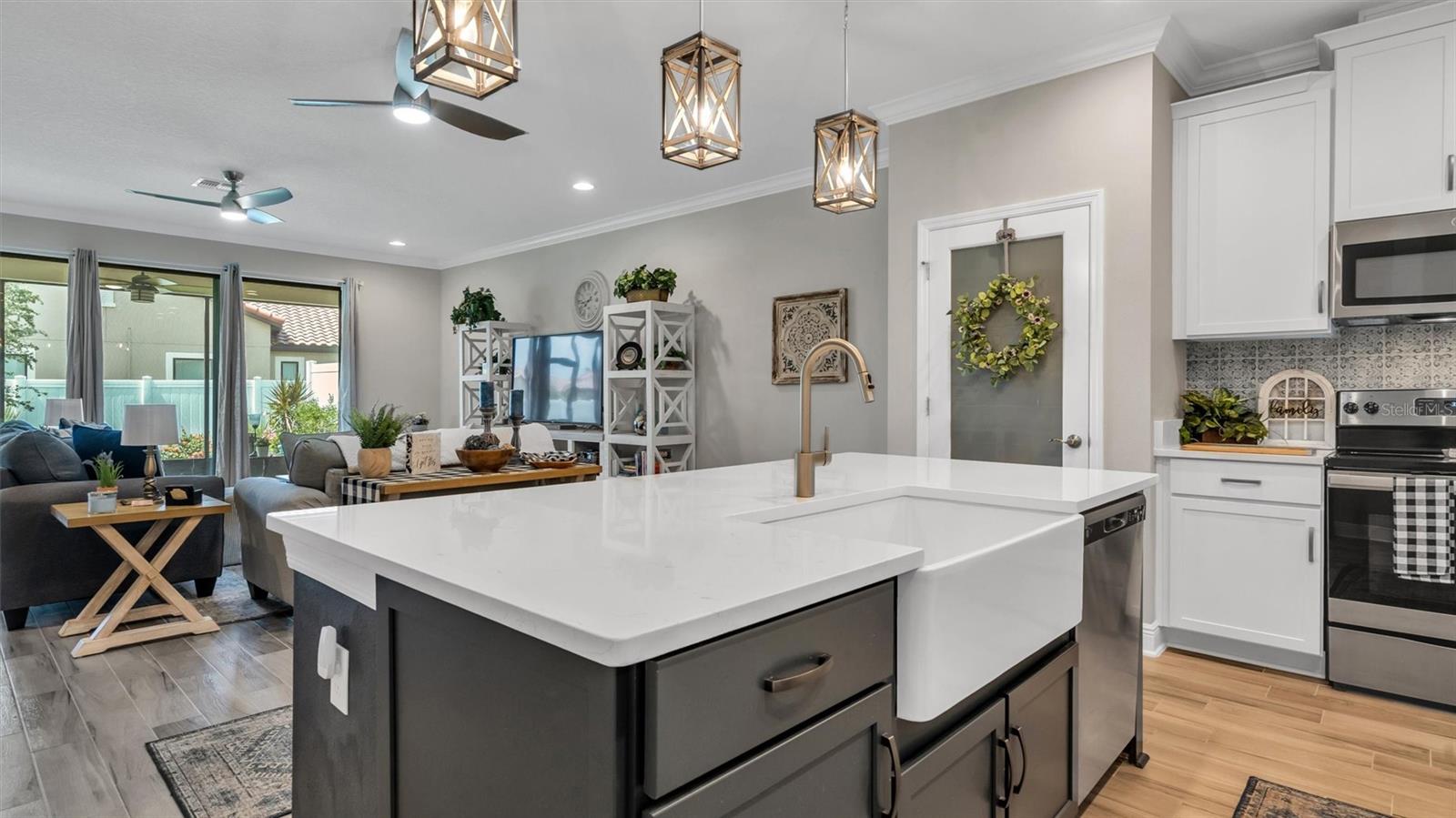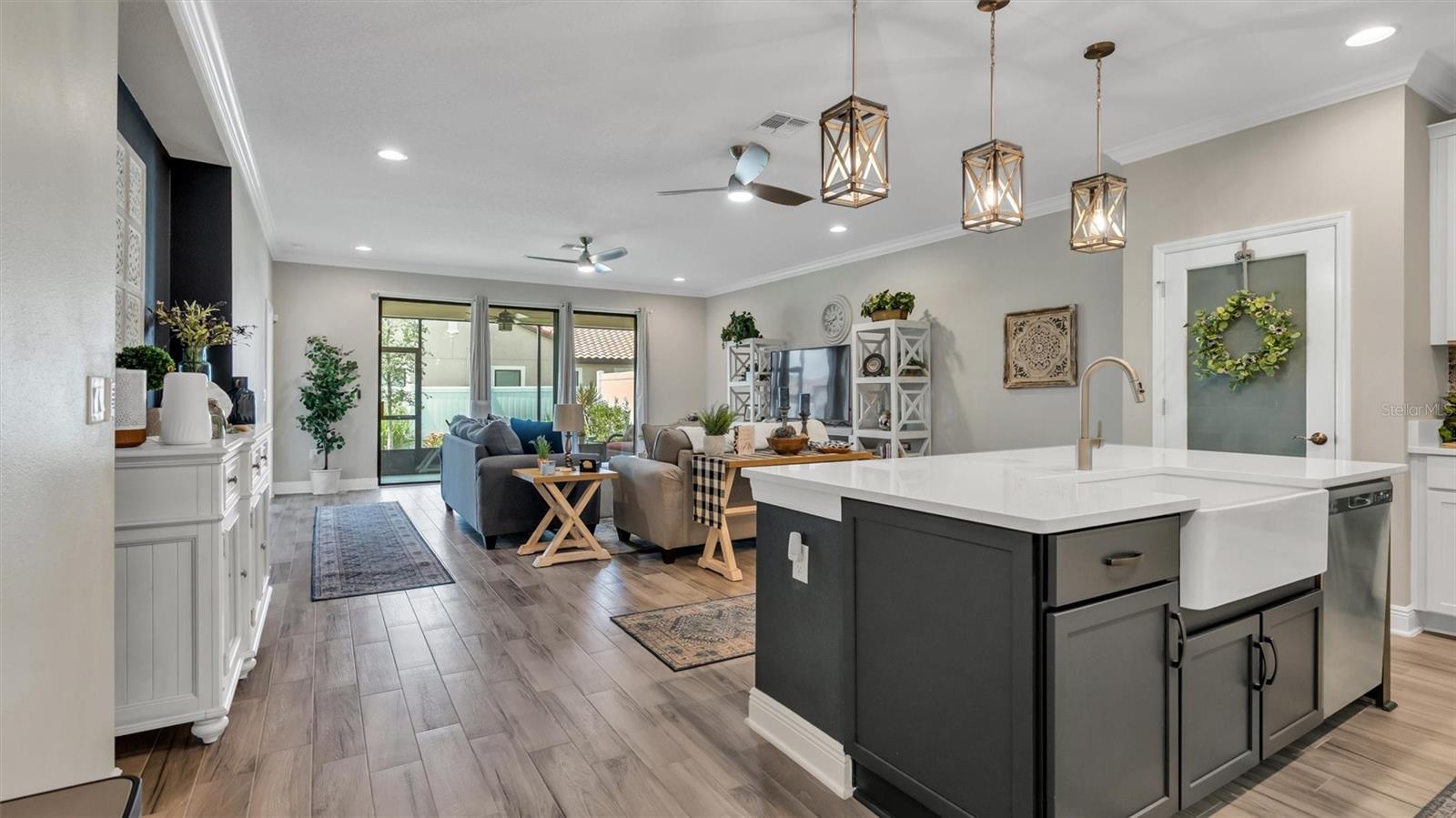 Under contract-accepting backup offers. Welcome to Terralargo, a gated community that offers an unparalleled living experience. This stunning 3 bedroom, 2 bathroom villa is sure to capture your heart. As you step inside this fully updated home, you will immediately notice the exquisite wood look tile and elegant crown molding that adorns the main living areas. The attention to detail and high-quality finishes create an inviting and stylish ambiance throughout. The kitchen is a true chef's delight, boasting quartz countertops, stainless steel appliances, a custom backsplash, and a charming farmhouse style sink. The open floor concept seamlessly connects the kitchen to the spacious living and dining areas, making it perfect for entertaining family and friends. Retreat to the master bedroom, which offers a peaceful sanctuary complete with an oversized walk-in shower, quartz countertops, and a generous walk-in closet. The additional two bedrooms provide ample space for your bedroom furniture or even the flexibility to create an at-home office. The second bathroom is also updated with sleek quartz countertops, adding a touch of modern luxury. Beyond the walls of this fabulous villa, Terralargo offers an array of exceptional amenities for its residents to enjoy. Take a dip in the invigorating inground pool, stay active at the fitness center, or engage in friendly competition on the basketball and tennis courts. For nature enthusiasts, the community also features fishing opportunities, where you can unwind and connect with nature. With its desirable location, luxurious upgrades, and a wealth of resort-style amenities, this 3 bedroom, 2 bathroom villa in the highly sought after community of Terralargo is a true gem. Don't miss the chance to make this haven your forever home.