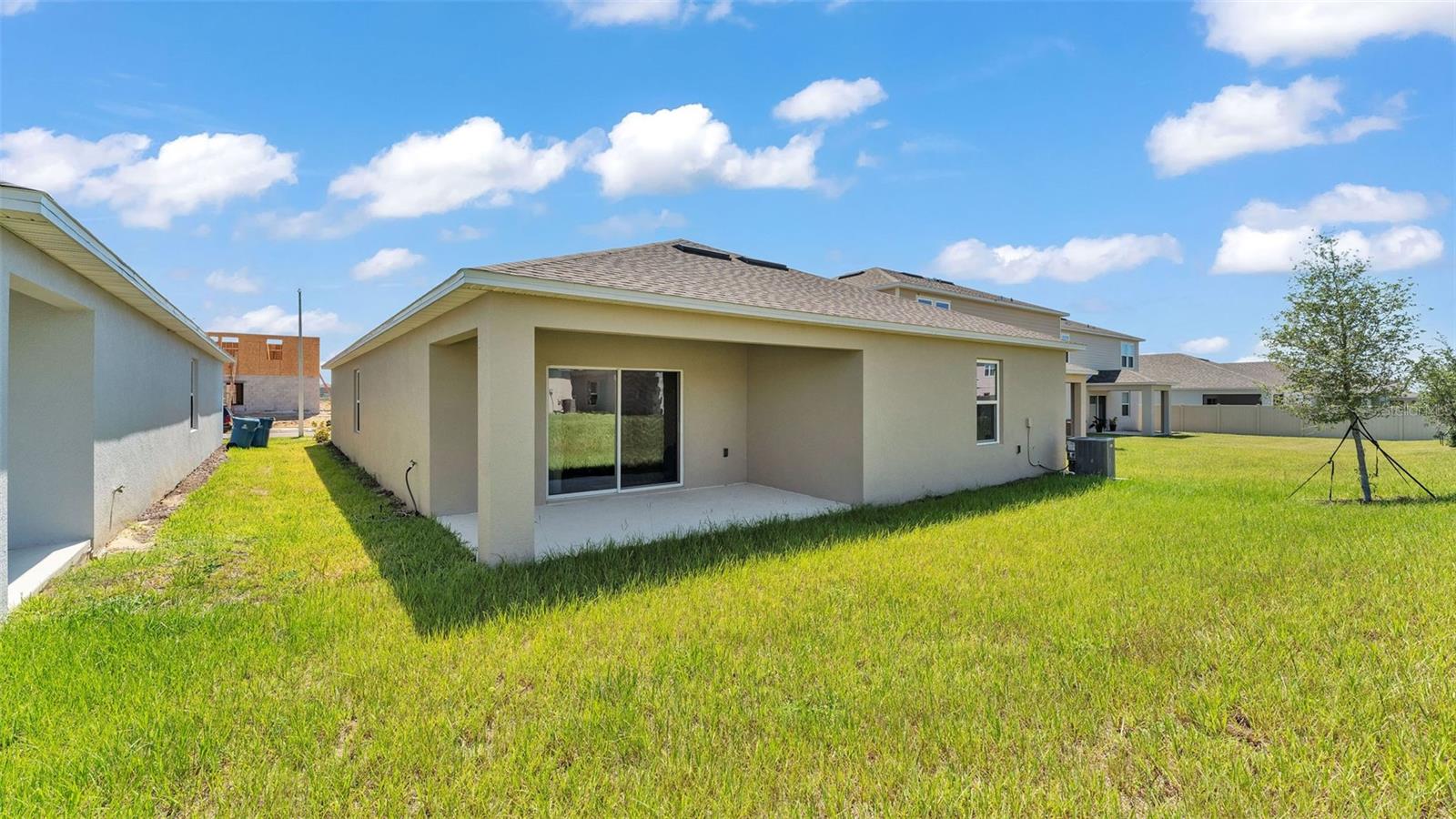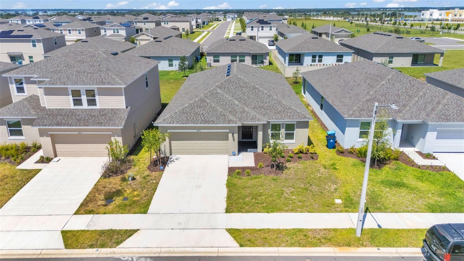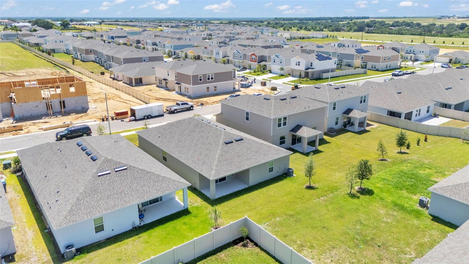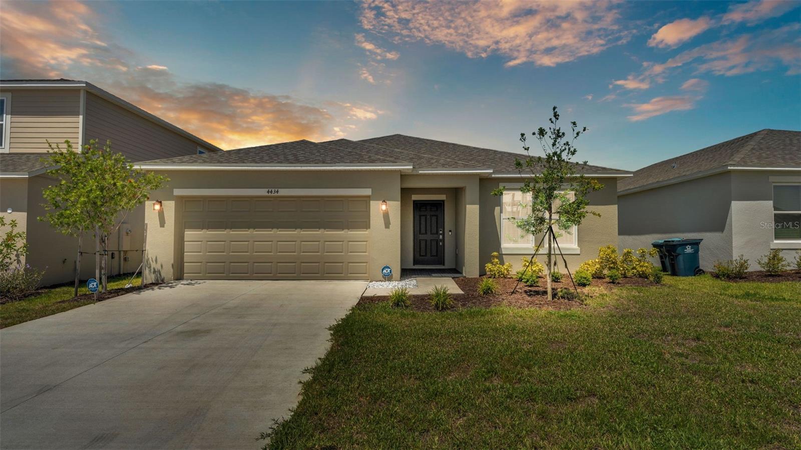 Introducing a beautifully crafted 4-bedroom, 3-bathroom home completed in April 2025 by Taylor Morrison, nestled in the Scenic Terrace community. This stunning property boasts a modern open floor plan, ideal for both comfortable living and entertaining guests. As you enter the home, you are greeted by a bright and airy living space that seamlessly connects the living room and dining room--perfect for family gatherings or hosting friends. The heart of the home is the gourmet kitchen, featuring exquisite quartz countertops and stainless steel appliances. Ample cabinetry and counter space provide functionality and style, while a large walk-in pantry ensures that you have all the storage you need to keep your kitchen organized. The primary bedroom serves as a luxurious retreat, complete with an ensuite bathroom featuring dual sinks, a spacious walk-in shower, and a generous walk-in closet. This private oasis is designed for relaxation and comfort. On the opposite side of the home, you will find two additional bedrooms that are equal in size, sharing a well-appointed second bathroom. This thoughtful layout provides privacy and convenience for family members or guests. The fourth bedroom is ideally situated near the entrance, accompanied by a third bathroom, making it perfect for visitors or as a flexible home office space. Step outside to the covered patio, where you can enjoy your morning coffee or host summer barbecues in the privacy of your backyard. Residency in Scenic Terrace means access to fantastic community amenities, including a refreshing community pool, a playground, and a dog park for your furry friends. The location offers exceptional convenience, with various retailers and dining options just a stone's throw away, as well as easy access to I-4 for effortless commuting. Discover the perfect blend of style, comfort, and community in this exquisite home. Don't miss the chance to make it your own!