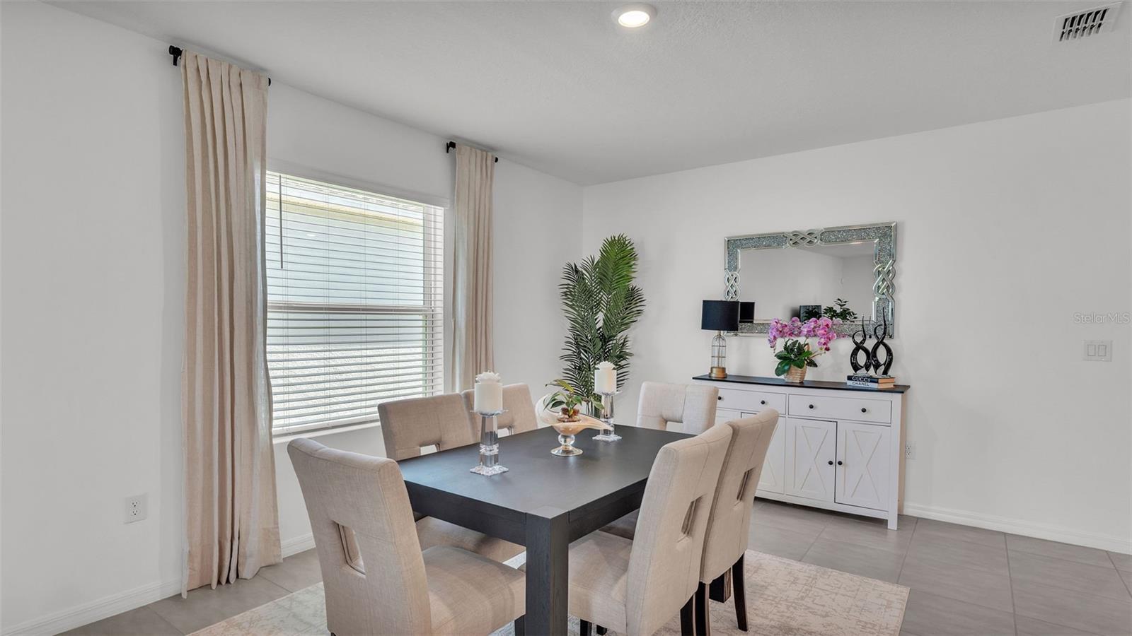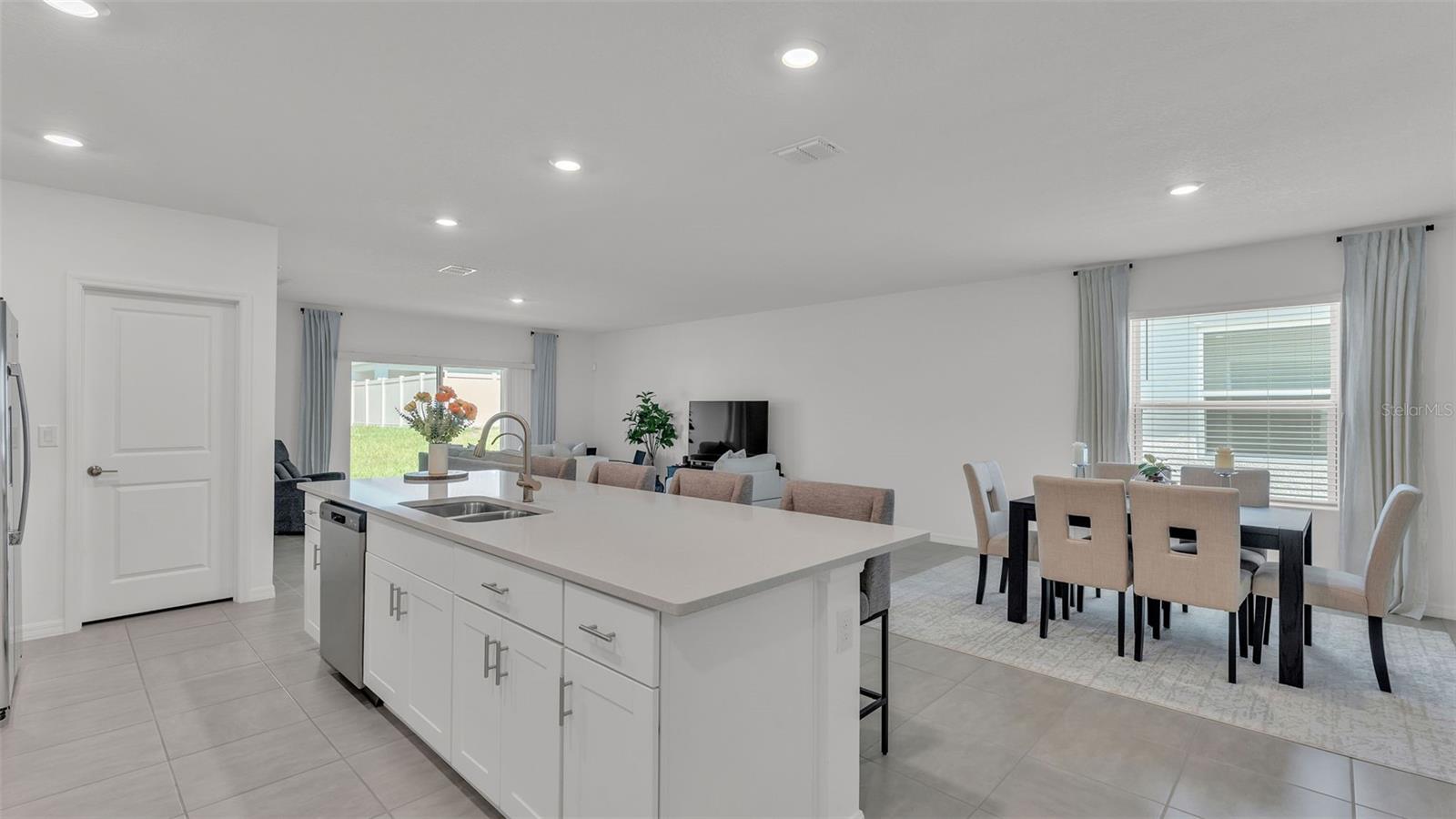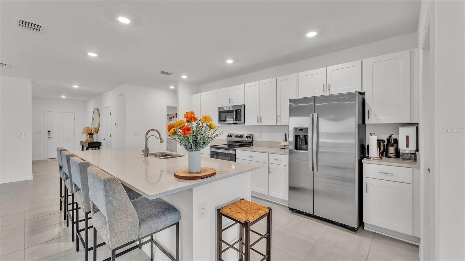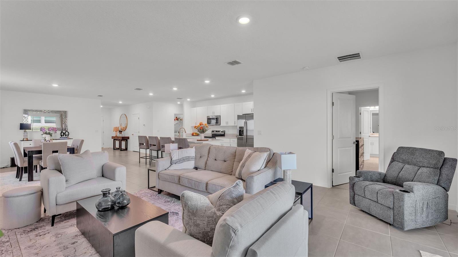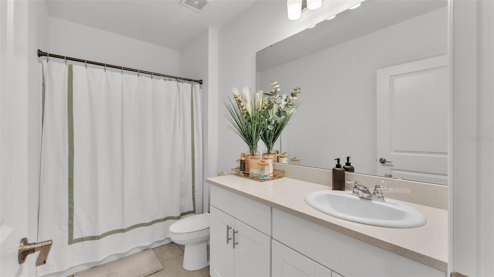 Introducing a beautifully crafted 4-bedroom, 3-bathroom home completed in April 2025 by Taylor Morrison, nestled in the Scenic Terrace community. This stunning property boasts a modern open floor plan, ideal for both comfortable living and entertaining guests. As you enter the home, you are greeted by a bright and airy living space that seamlessly connects the living room and dining room--perfect for family gatherings or hosting friends. The heart of the home is the gourmet kitchen, featuring exquisite quartz countertops and stainless steel appliances. Ample cabinetry and counter space provide functionality and style, while a large walk-in pantry ensures that you have all the storage you need to keep your kitchen organized. The primary bedroom serves as a luxurious retreat, complete with an ensuite bathroom featuring dual sinks, a spacious walk-in shower, and a generous walk-in closet. This private oasis is designed for relaxation and comfort. On the opposite side of the home, you will find two additional bedrooms that are equal in size, sharing a well-appointed second bathroom. This thoughtful layout provides privacy and convenience for family members or guests. The fourth bedroom is ideally situated near the entrance, accompanied by a third bathroom, making it perfect for visitors or as a flexible home office space. Step outside to the covered patio, where you can enjoy your morning coffee or host summer barbecues in the privacy of your backyard. Residency in Scenic Terrace means access to fantastic community amenities, including a refreshing community pool, a playground, and a dog park for your furry friends. The location offers exceptional convenience, with various retailers and dining options just a stone's throw away, as well as easy access to I-4 for effortless commuting. Discover the perfect blend of style, comfort, and community in this exquisite home. Don't miss the chance to make it your own!