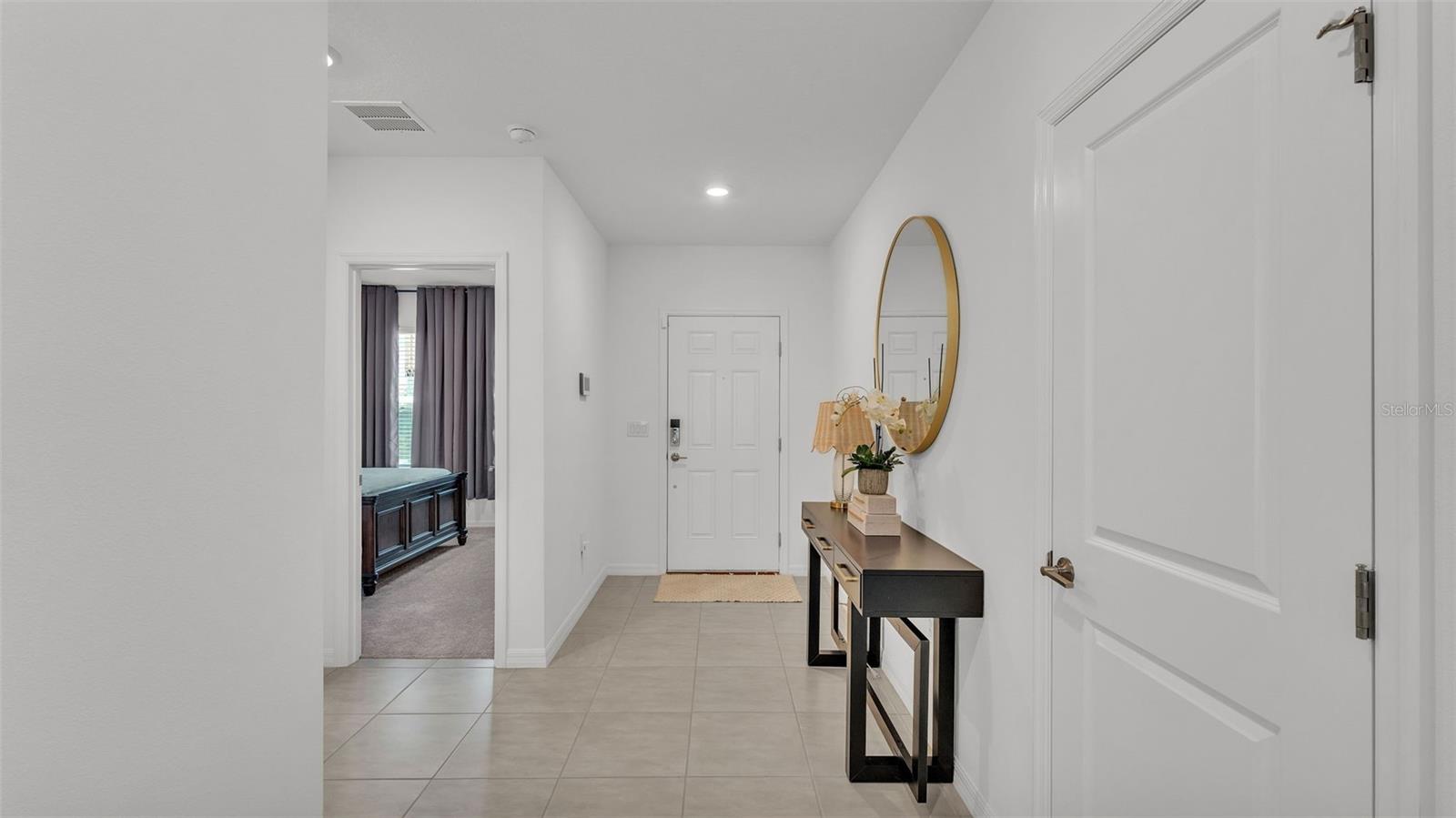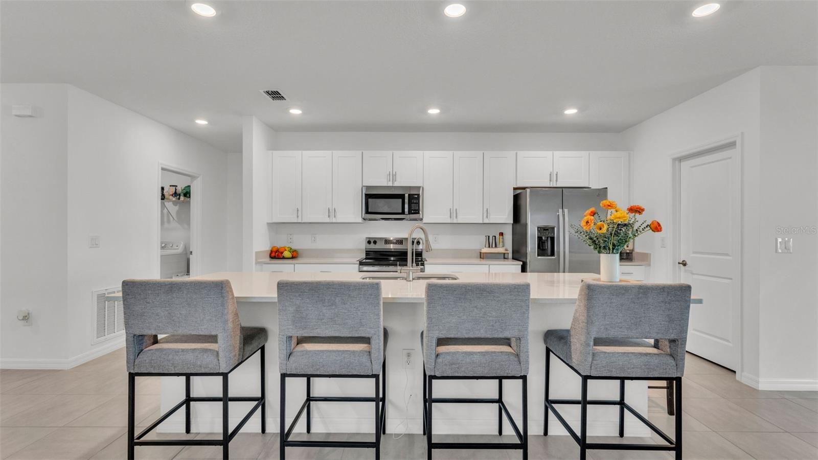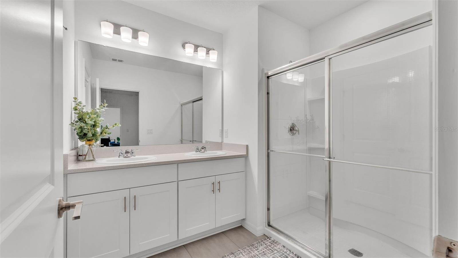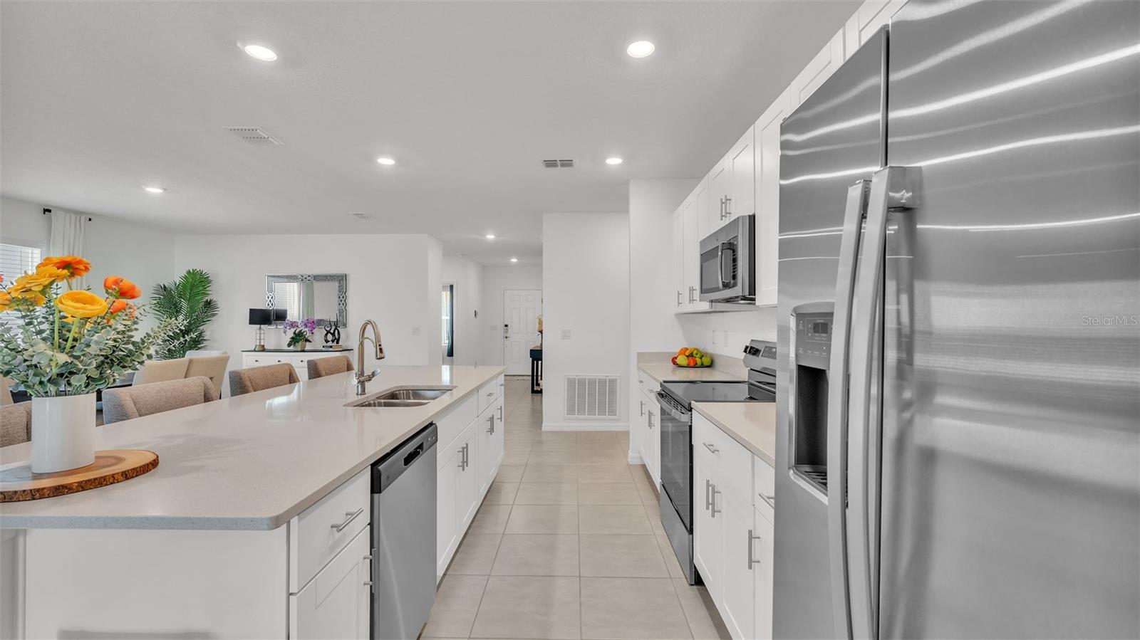 Introducing a beautifully crafted 4-bedroom, 3-bathroom home completed in April 2025 by Taylor Morrison, nestled in the Scenic Terrace community. This stunning property boasts a modern open floor plan, ideal for both comfortable living and entertaining guests. As you enter the home, you are greeted by a bright and airy living space that seamlessly connects the living room and dining room--perfect for family gatherings or hosting friends. The heart of the home is the gourmet kitchen, featuring exquisite quartz countertops and stainless steel appliances. Ample cabinetry and counter space provide functionality and style, while a large walk-in pantry ensures that you have all the storage you need to keep your kitchen organized. The primary bedroom serves as a luxurious retreat, complete with an ensuite bathroom featuring dual sinks, a spacious walk-in shower, and a generous walk-in closet. This private oasis is designed for relaxation and comfort. On the opposite side of the home, you will find two additional bedrooms that are equal in size, sharing a well-appointed second bathroom. This thoughtful layout provides privacy and convenience for family members or guests. The fourth bedroom is ideally situated near the entrance, accompanied by a third bathroom, making it perfect for visitors or as a flexible home office space. Step outside to the covered patio, where you can enjoy your morning coffee or host summer barbecues in the privacy of your backyard. Residency in Scenic Terrace means access to fantastic community amenities, including a refreshing community pool, a playground, and a dog park for your furry friends. The location offers exceptional convenience, with various retailers and dining options just a stone's throw away, as well as easy access to I-4 for effortless commuting. Discover the perfect blend of style, comfort, and community in this exquisite home. Don't miss the chance to make it your own!