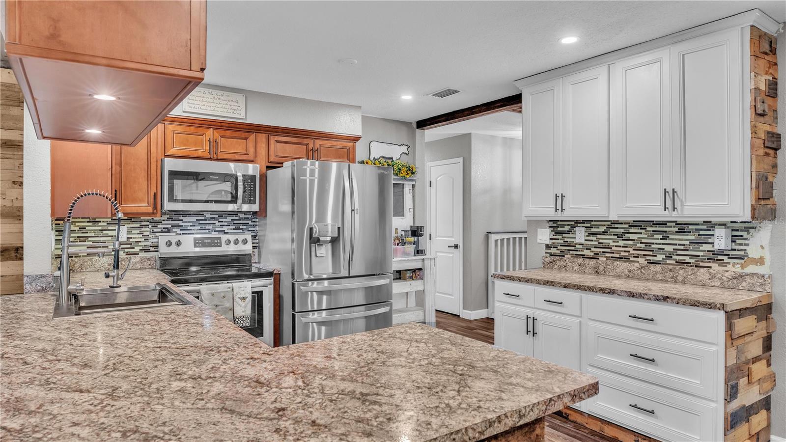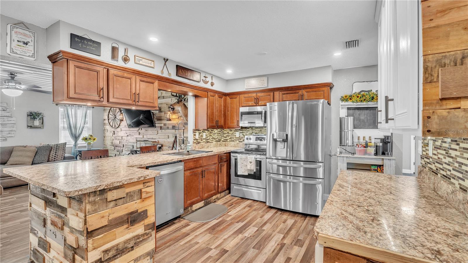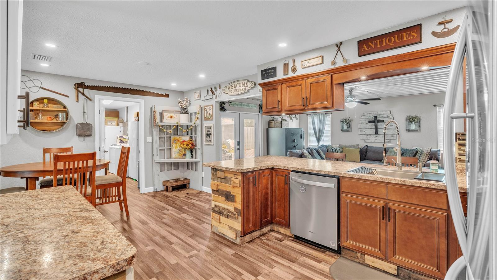 Welcome to your new home in South Lakeland! This charming 3-bedroom, 2-bathroom home offers a perfect blend of comfort, modern updates, and the freedom of NO Homeowners Association (HOA) fees. As you enter the home you will be greeted by an inviting family room that flows seamlessly into your recently updated kitchen, making gatherings a delight. The kitchen features sleek stainless steel appliances, abundant counter space, and plenty of cabinets, providing an ideal setup for culinary creations. Adjacent to the kitchen is the formal dining room, which overlooks a spacious living area, allowing for effortless entertaining and family meals. The primary bedroom comes complete with an ensuite bathroom that includes an updated vanity and a stylish shower - your own personal retreat. Two additional bedrooms are situated on the same side of the home, accompanied by a well-appointed guest bathroom - perfect for family or guests. Step outside to your fenced-in backyard where you will find a handy shed and a metal carport for ample storage, making it easy to store your boat or outdoor toys. Recent updates include a METAL roof installed in 2018 for added durability, re-plumbed in 2018, new air conditioning unit installed in 2017, with all new ducts added in 2022, new double-pane windows throughout, installed in 2019 for energy efficiency and freshly painted both inside and out, ready for you to move in. This home is conveniently located near a plethora of shops and restaurants, including the lively Lakeside Village, offering exceptional shopping and dining options just minutes away. Don't miss your chance to own this stunning home in South Lakeland! Call today to schedule a viewing.