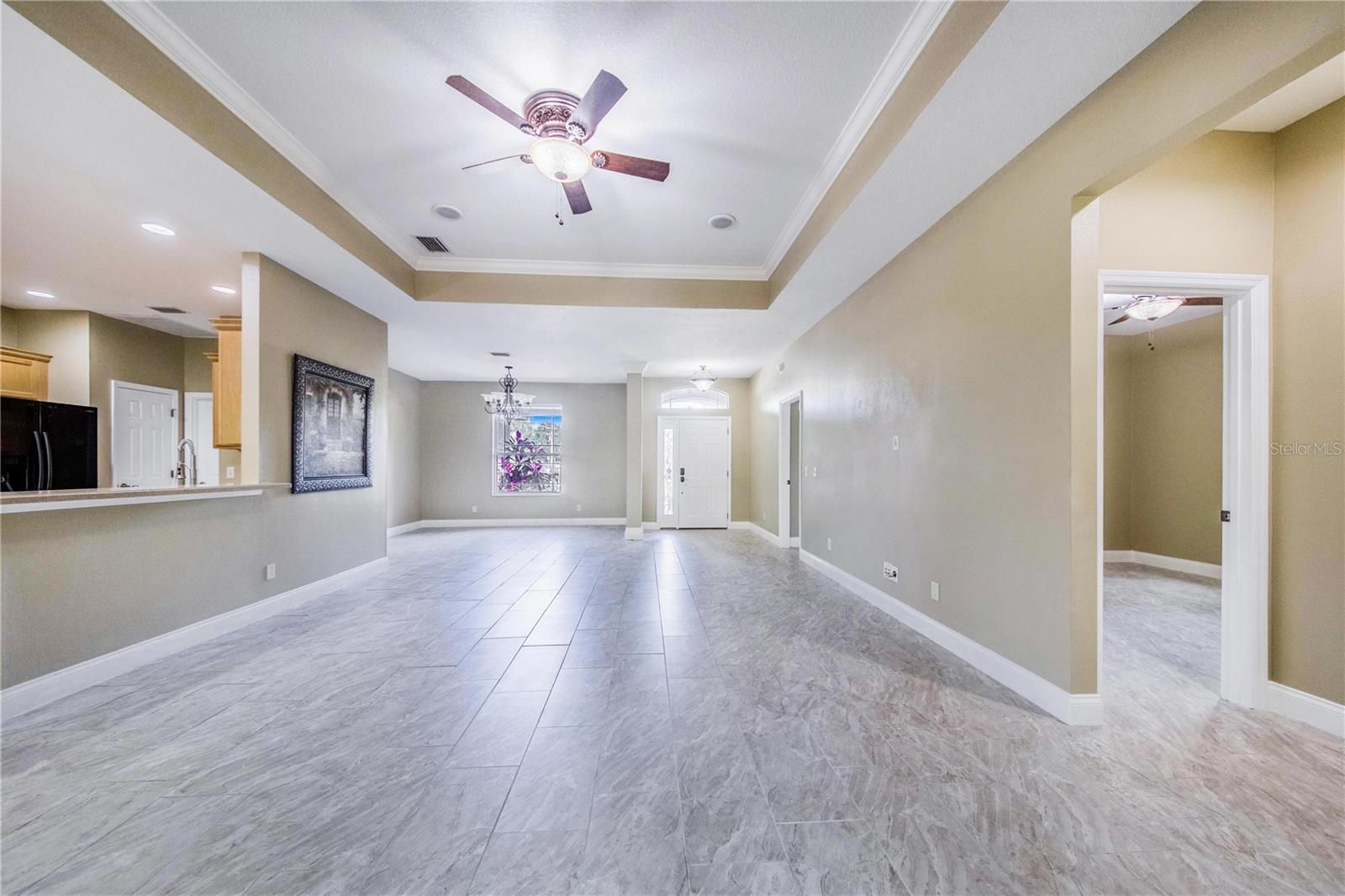 Nestled in the heart of South Lakeland, this charming 4 bedroom, 2 bathroom home offers a perfect blend of comfort, convenience, and privacy. Boasting 2082 square feet of meticulously maintained living space, this residence is sure to impress even the most discerning buyer. As you step inside, you'll be greeted by the warmth of this well-loved home. The spacious layout features high ceilings and elegant trey ceilings, creating an inviting atmosphere throughout. Fresh paint and tile floors add a touch of modern elegance, while ample natural light enhances the airy ambiance. The heart of the home is the large, wrap around kitchen, complete with sleek countertops, contemporary cabinetry, and stainless steel appliances. Whether you're preparing a family meal or hosting guests, this kitchen is sure to inspire your culinary creativity. The bedrooms offer comfort and tranquility, tile floors, walk-in closets, and plenty of space to unwind. The master suite is a true retreat, boasting a private en-suite bathroom and direct access to the screened back porch. Outside, you'll find a beautifully landscaped yard, perfect for enjoying Florida's sunshine year-round. Relax and unwind on the screened porch, or gather with loved ones for games in the spacious backyard. Conveniently located close to shopping, schools, restaurants, and recreation centers, this home offers easy access to everything South Lakeland has to offer. With the Polk Parkway and major highways nearby, commuting is a breeze. Yet, tucked away in a peaceful neighborhood, you'll enjoy the privacy and serenity you deserve. Don't miss your chance to make this South Lakeland gem your own. Schedule a showing today and experience the best of Florida living!