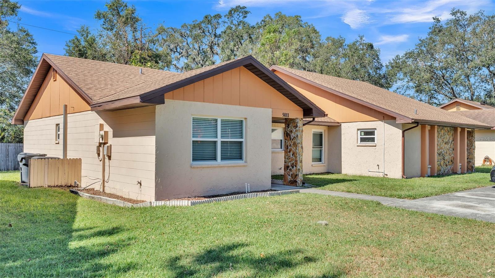 Introducing a fantastic opportunity to own this charming half of a duplex located in the desirable Cimarron South Subdivision of South Lakeland. This property features 2 bedrooms and 2 bathrooms, making it an ideal choice for first-time homebuyers or those looking for an investment property. Recently upgraded, this duplex is move-in ready! Enjoy new tile flooring throughout, which not only adds a modern touch but also ensures easy maintenance. The interior has been freshly painted, creating a bright and welcoming ambiance. With a new roof installed in 2021, double pane windows installed in 2021, new sliding door in 2022 and a new HVAC system also added in 2021, you can enjoy peace of mind knowing that substantial updates have already been made. The interior is further complemented by the installation of new blinds in every room, allowing for both privacy and light control to suit your preferences. The layout thoughtfully maximizes space, providing a cozy yet functional atmosphere perfect for relaxation or entertaining. Situated in a prime location, this half duplex benefits from close proximity to various shopping centers, delightful dining options, and easy access to the Parkway, ensuring convenience at your fingertips. Don't miss out on this wonderful opportunity to make this beautifully upgraded duplex your new home or investment. Schedule a showing today and discover the charm and convenience that awaits you in Cimarron South!