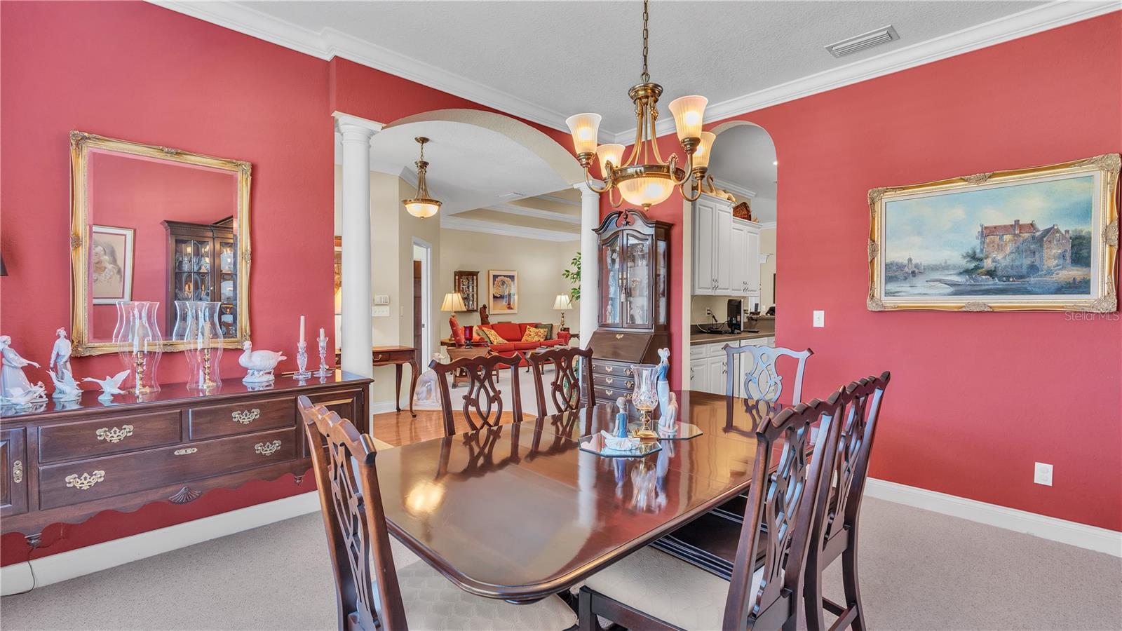 Welcome to this stunning 4 bedroom, 2 bathroom home located in the Liberty Square Subdivision of South Lakeland. This exceptional home was custom built by Hunt Construction, ensuring excellent craftsmanship and attention to detail. Step inside and be greeted by the open split floor plan, complete with volume ceilings and crown molding, creating an inviting atmosphere throughout. The spacious family room, den, formal dining room, and breakfast room offer plenty of space for all your living and entertaining needs. The large kitchen is a chef's dream, featuring ample counter space, beautiful cabinetry, and a large walk-in pantry to store all your cooking essentials. The master suite is a true retreat with two walk-in closets, providing plenty of storage space. The ensuite bathroom boasts dual vanities, a separate water closet, and a walk-in shower for added luxury. The other two bedrooms are located on the opposite side of the home also come equipped with walk-in closets, ensuring everyone has their own storage space. Additional features of this home include an inside laundry room, an oversized garage, and attic access in the garage with a drop-down staircase for easy storage access. The in-wall pest system offers peace of mind. Outside, you'll find a large screened porch adorned with brick pavers, perfect for enjoying the beautiful Florida weather. This home is conveniently located near shopping, dining, the Polk Parkway, and other amenities, making it an ideal location for your family. Don't miss out on the opportunity to make this exceptional home yours. Schedule a showing today!