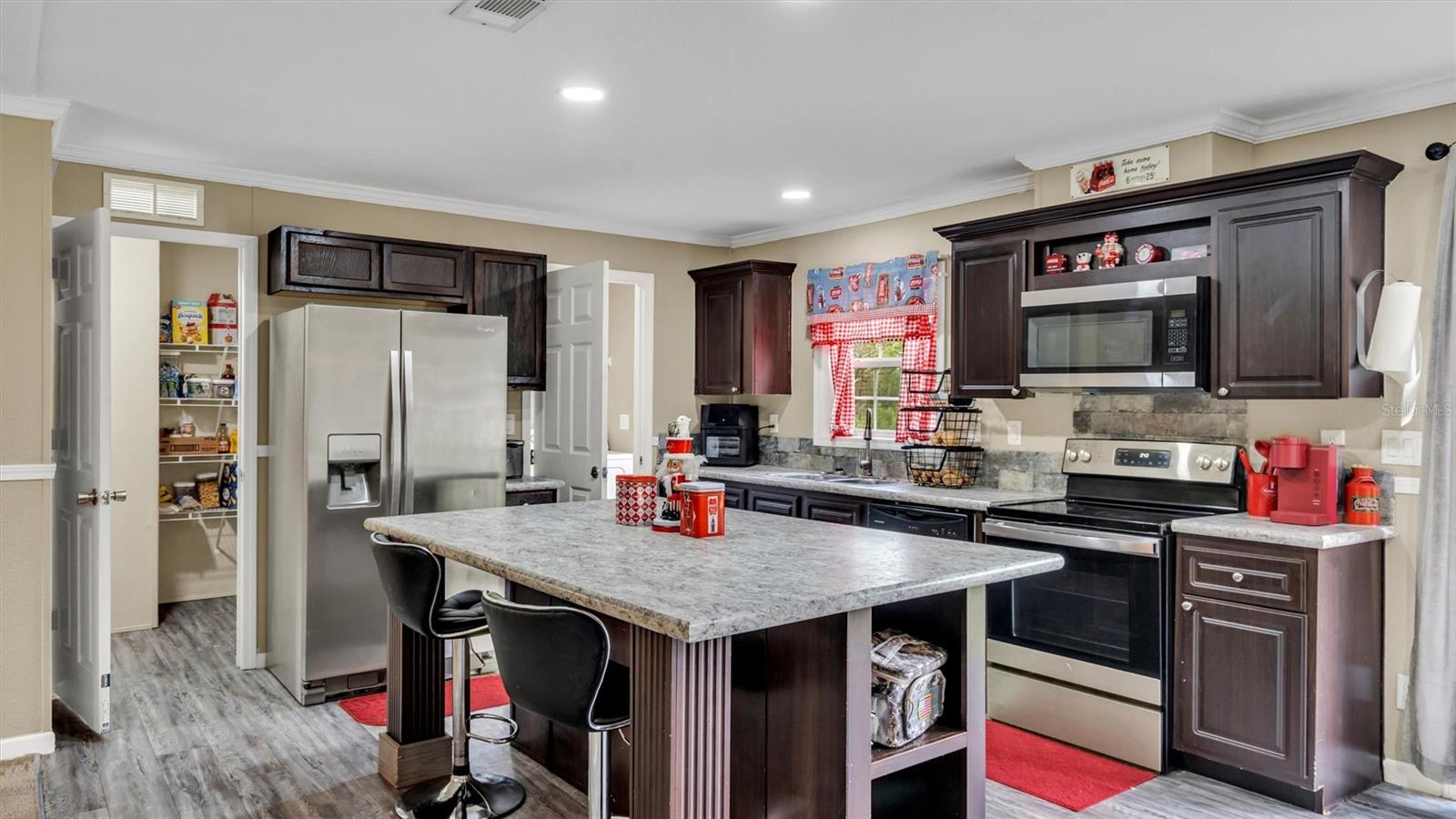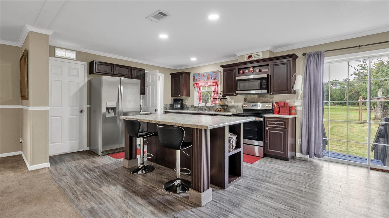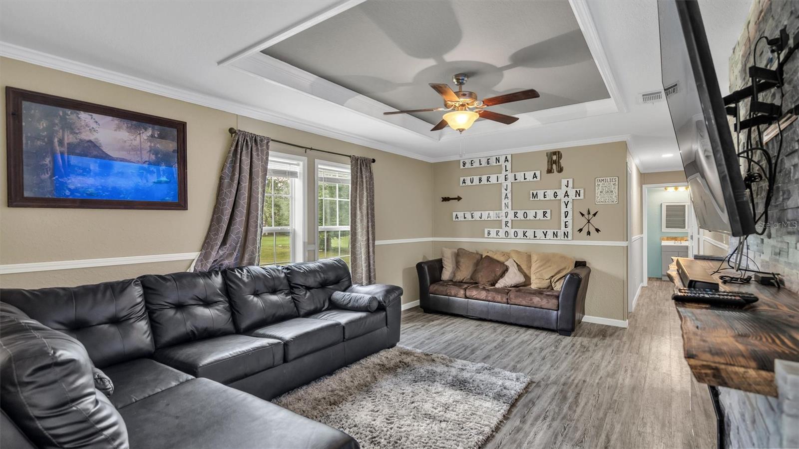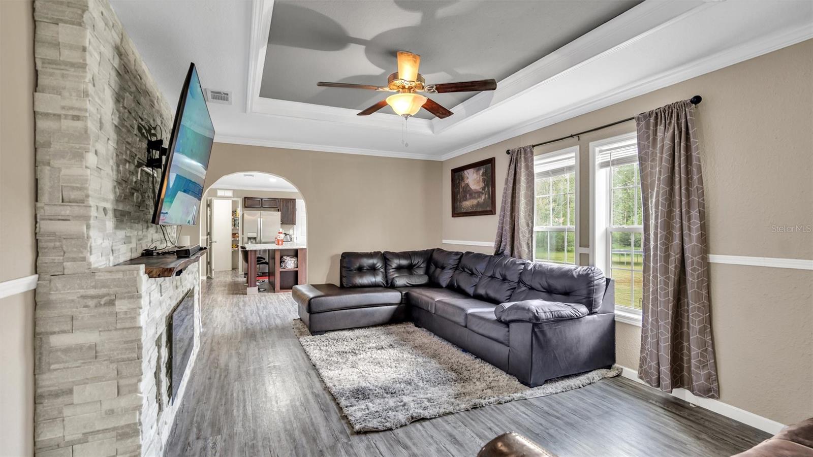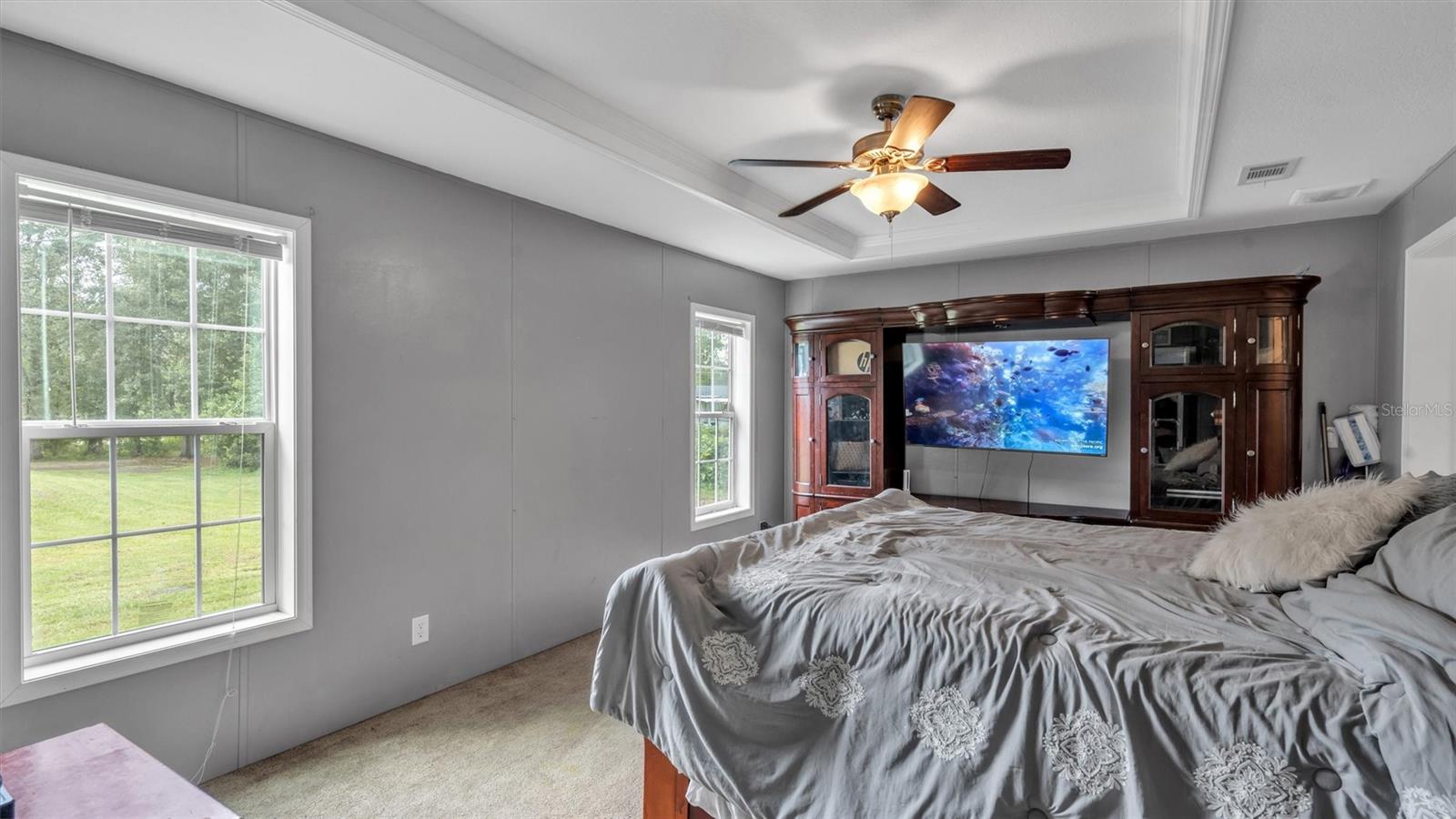 Welcome home to this stunning 4 bedroom, 2 bathroom mobile home built in 2019, situated on over 2 acres of cleared property. As you enter the home, you'll be greeted by an open floor plan that boasts warmth and comfort that you'll never want to leave. The living room is perfect for those who love to entertain, as it features a recently installed stone electric fireplace that adds a modern touch to the space. The large kitchen is definitely a chef's dream as it provides ample counter space for preparing meals, and it even has a walk-in pantry to store all of your cooking essentials. The stainless steel appliances complete the contemporary look of the kitchen and will definitely grab your attention. The split bedroom layout offers privacy and separation from the rest of the home. The 3 additional bedrooms and office are located on the opposite side of the home, providing plenty of space and offering a quiet retreat when needed. Step outside, and you'll find that the back yard is entirely fenced, giving you peace of mind for privacy and security. Enjoy your outdoor living space with a 12x24 shed with power included, which will allow for extra storage options. Additionally, there's an above-ground pool where you can soak up the sun on hot summer days. Overall, this home offers the perfect balance between privacy and modern conveniences, making it a must-see for anyone looking for a peaceful and relaxing lifestyle. Schedule your private tour today and make this dream home your reality.