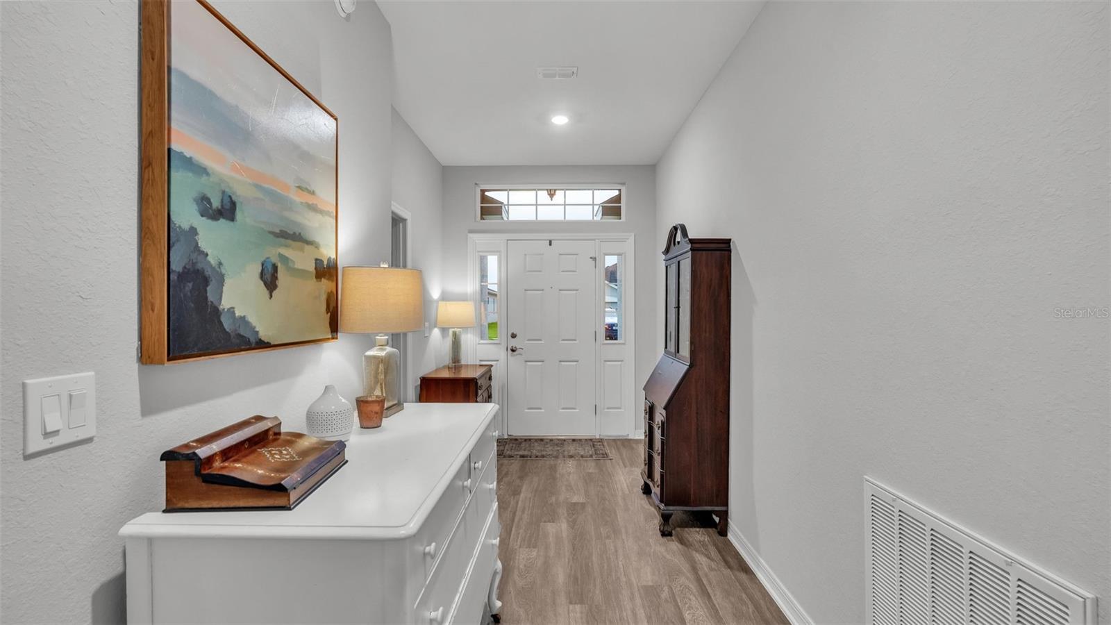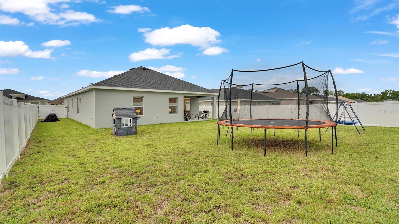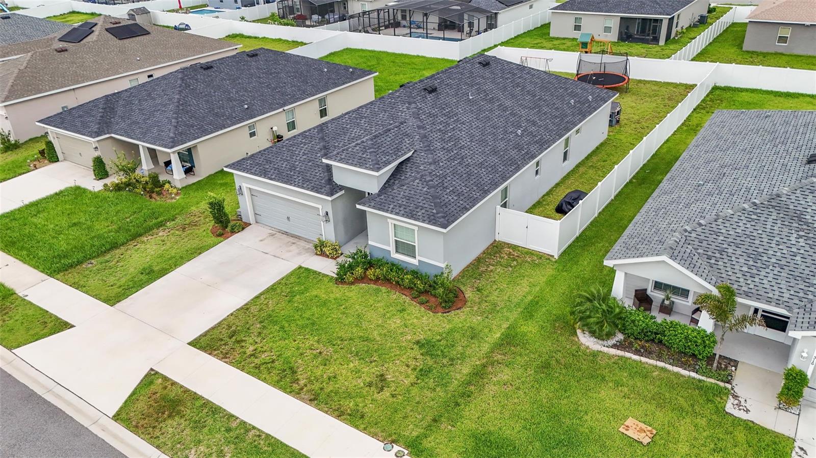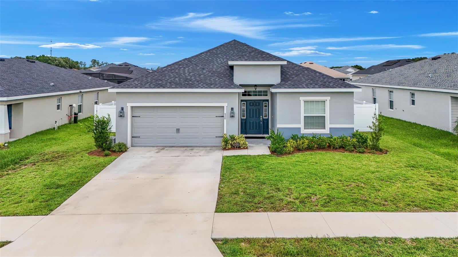 This stunning home offers 4 bedrooms, 2.5 bathrooms located in the Auburn Cove subdivision. The open floor plan is a popular design choice for social gatherings. This kitchen is a true showstopper! The cabinets with crown molding add a touch of elegance, while the stainless-steel appliances provide a sleek and modern contrast. The large, oversized kitchen island offers ample counter space and storage, making it perfect for food preparation and cooking and with the oversized walk-in pantry, you'll have plenty of room to store all your ingredients and cooking essentials, making meal prep a breeze. The thoughtful selection of flooring in this home prioritizes both style and practicality. The living area, laundry room, and bathrooms boast luxurious wood vinyl plank flooring, adding a touch of sophistication and elegance. Meanwhile, the stain-resistant carpet in the remaining areas provides a comfortable and low-maintenance option for everyday use. The luxurious owner's suite offers a serene retreat with ample space for relaxation and pampering. The walk-in wardrobe provides ample storage for one's personal style, while the private en-suite bath features dual vanities, a refreshing tiled shower, a romantic garden bathtub, and a convenient closeted toilet, creating a haven of comfort and tranquility. This home offers a relaxing outdoor living space with a covered lanai, perfect for enjoying the fresh air and scenic views while staying protected from the elements. The water softener is a convenient feature that ensures clean and soft water throughout the home as well as energy-efficient insulation and windows, while the oversized vinyl fenced-in backyard provides a secure and private outdoor area for endless play. Situated just minutes away from the Polk Parkway and I-4. Located between Orlando & Tampa. Also, close proximity to shopping and dining establishments ensures convenience and easy access to everyday necessities. Schedule a showing today and make this dream home your reality.