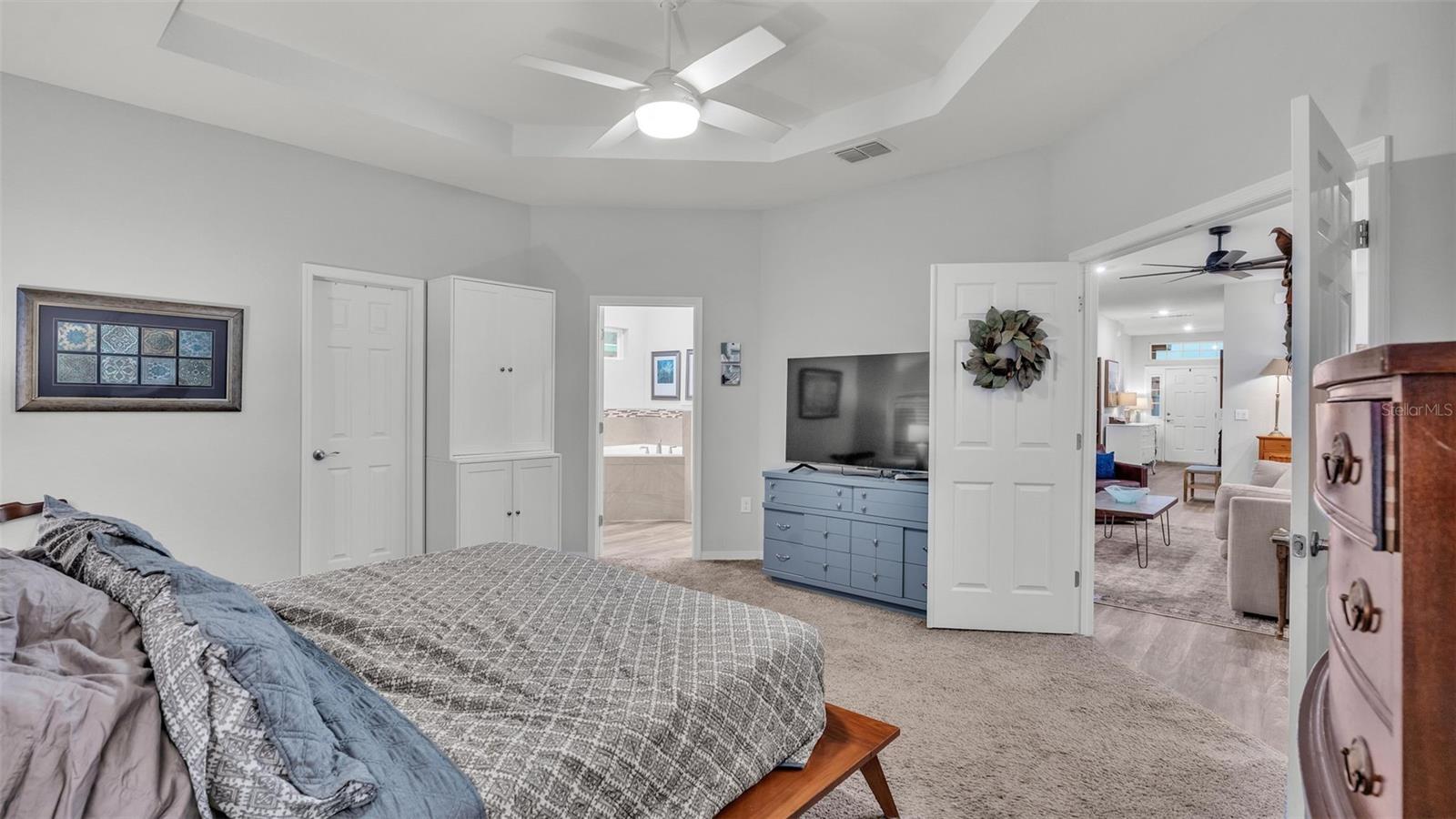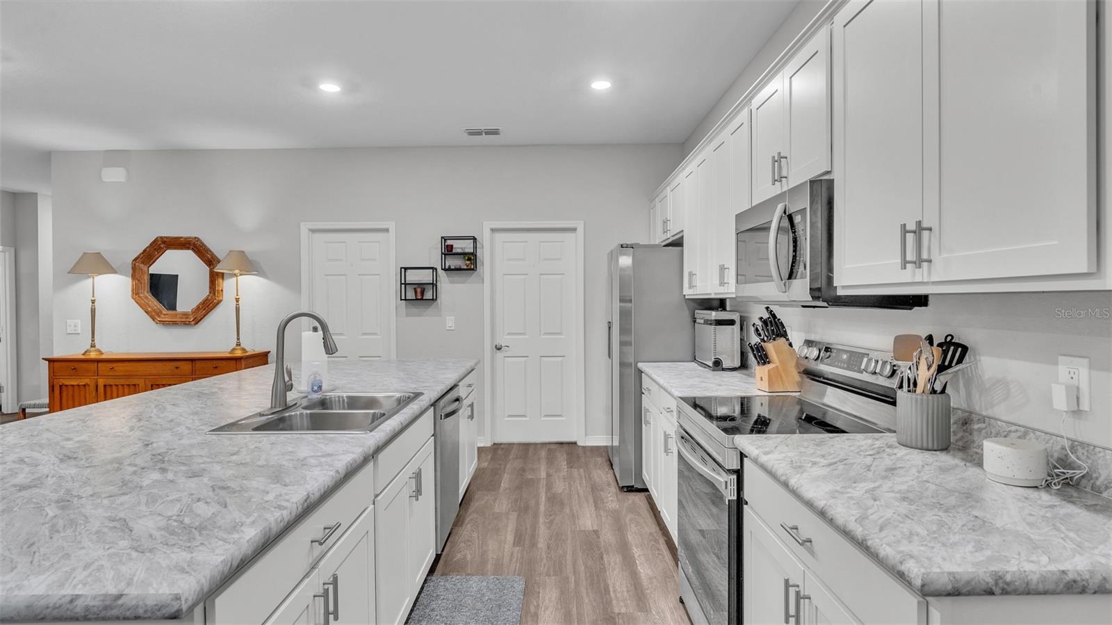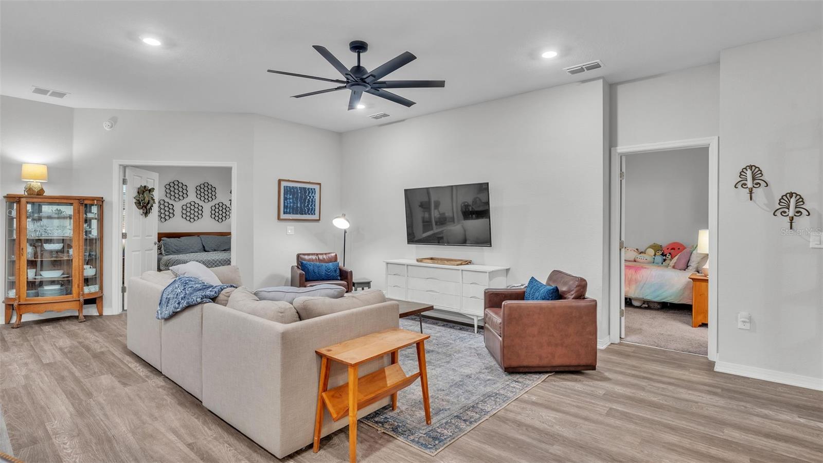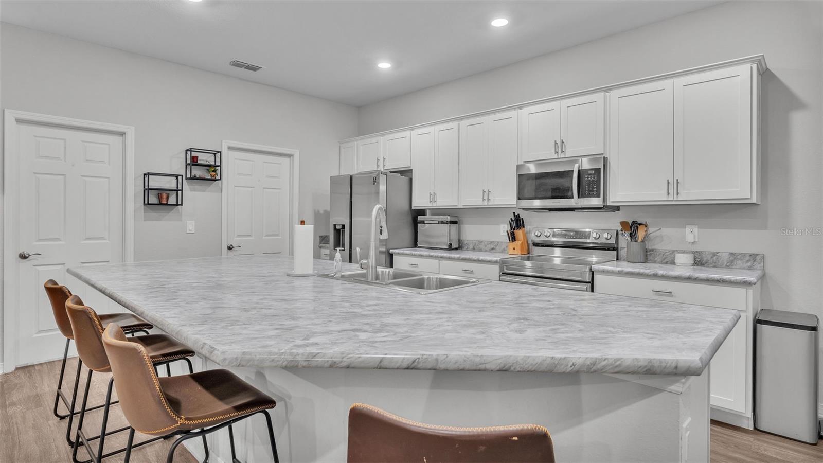 This stunning home offers 4 bedrooms, 2.5 bathrooms located in the Auburn Cove subdivision. The open floor plan is a popular design choice for social gatherings. This kitchen is a true showstopper! The cabinets with crown molding add a touch of elegance, while the stainless-steel appliances provide a sleek and modern contrast. The large, oversized kitchen island offers ample counter space and storage, making it perfect for food preparation and cooking and with the oversized walk-in pantry, you'll have plenty of room to store all your ingredients and cooking essentials, making meal prep a breeze. The thoughtful selection of flooring in this home prioritizes both style and practicality. The living area, laundry room, and bathrooms boast luxurious wood vinyl plank flooring, adding a touch of sophistication and elegance. Meanwhile, the stain-resistant carpet in the remaining areas provides a comfortable and low-maintenance option for everyday use. The luxurious owner's suite offers a serene retreat with ample space for relaxation and pampering. The walk-in wardrobe provides ample storage for one's personal style, while the private en-suite bath features dual vanities, a refreshing tiled shower, a romantic garden bathtub, and a convenient closeted toilet, creating a haven of comfort and tranquility. This home offers a relaxing outdoor living space with a covered lanai, perfect for enjoying the fresh air and scenic views while staying protected from the elements. The water softener is a convenient feature that ensures clean and soft water throughout the home as well as energy-efficient insulation and windows, while the oversized vinyl fenced-in backyard provides a secure and private outdoor area for endless play. Situated just minutes away from the Polk Parkway and I-4. Located between Orlando & Tampa. Also, close proximity to shopping and dining establishments ensures convenience and easy access to everyday necessities. Schedule a showing today and make this dream home your reality.