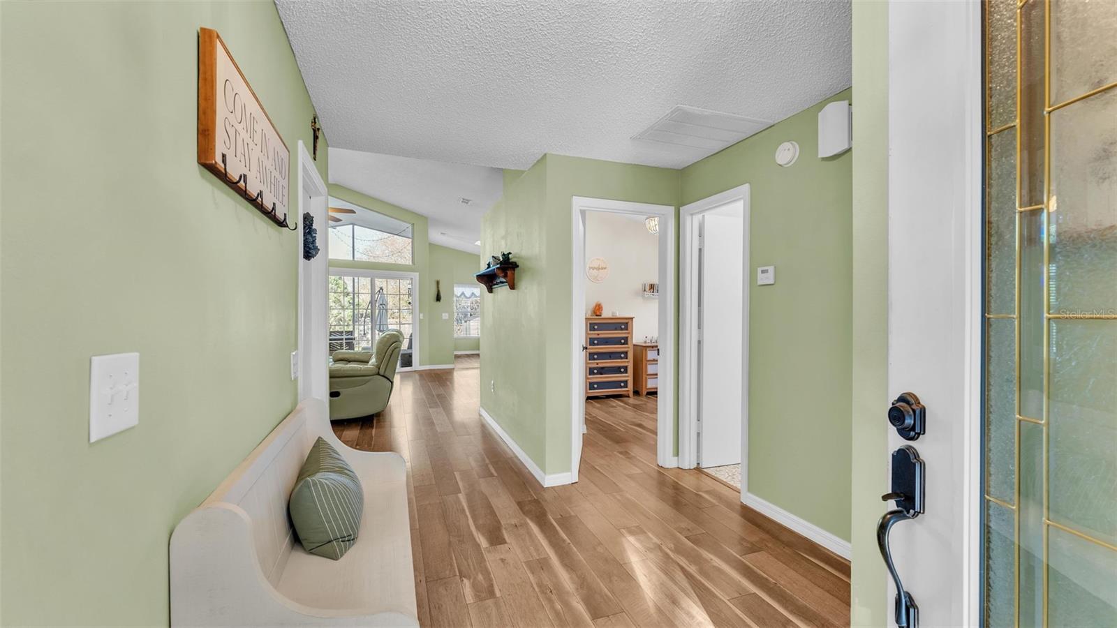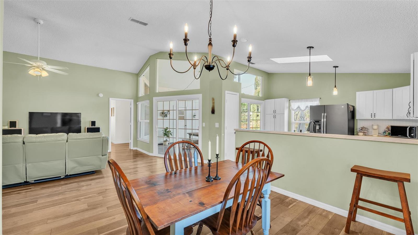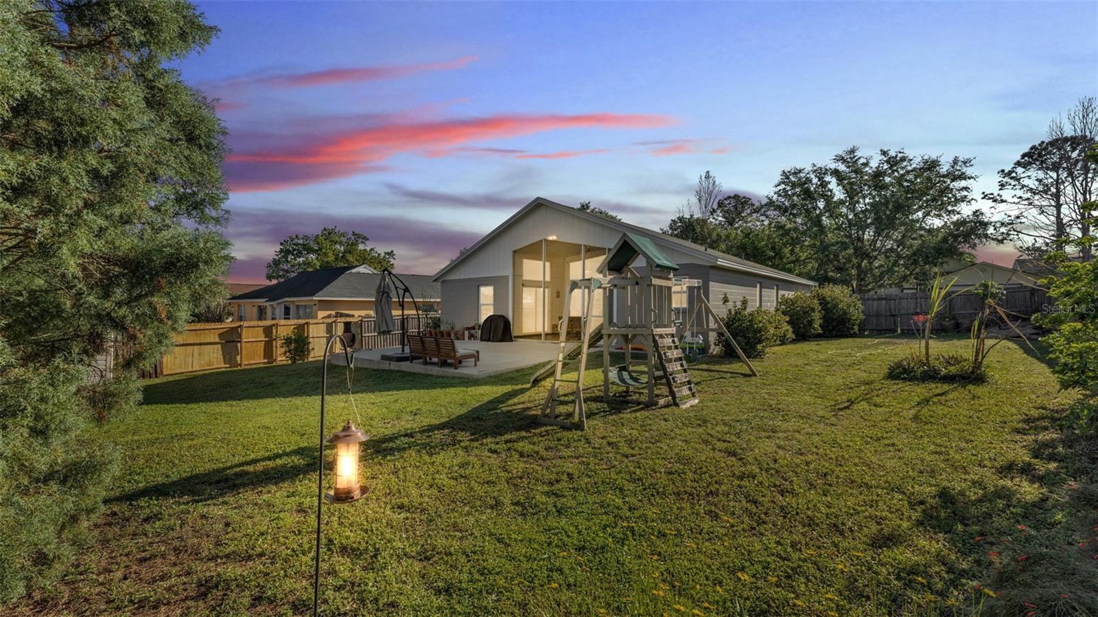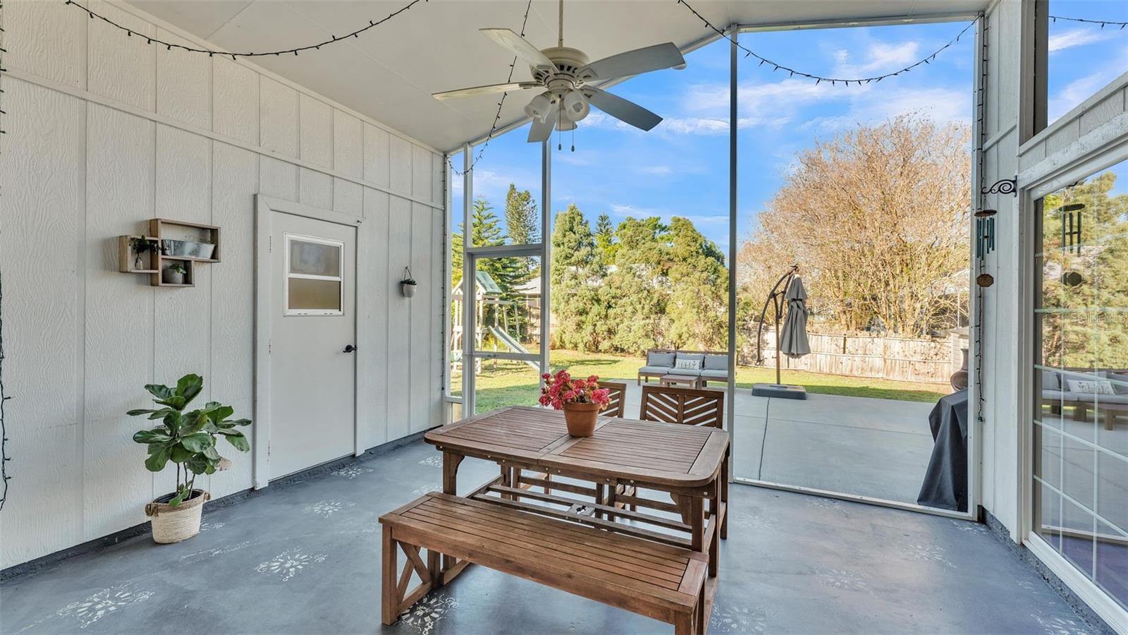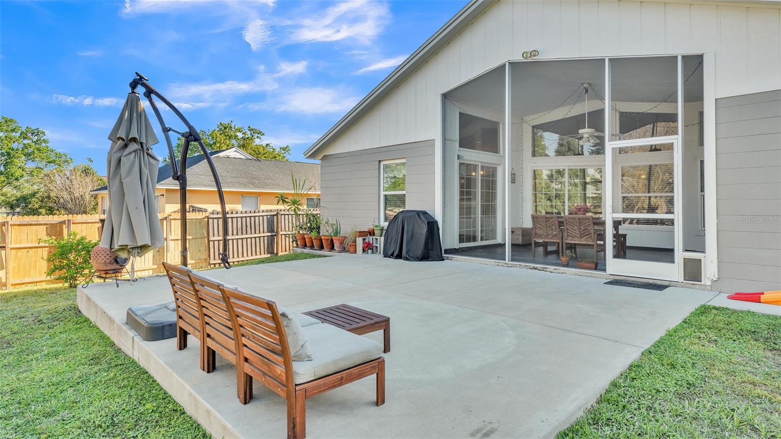 Introducing a charming 3-bedroom, 2-bathroom home nestled in the Island Walk Subdivision of South Lakeland. As you step inside, you'll be greeted by a seamless flow of luxury vinyl plank flooring that extends throughout the home, accentuated by fresh, neutral paint that creates a bright and inviting environment. The open floor plan enhances the spaciousness of the living area, providing the perfect space for relaxation and entertaining. The heart of the home is the well-appointed kitchen, featuring stainless steel appliances, a stunning backsplash, and ample cabinetry that offers plenty of storage. Whether you're preparing a casual meal or hosting guests, this kitchen is a chef's delight. The primary bedroom serves as a tranquil retreat with its ensuite bathroom that boasts a beautifully tiled walk-in shower and dual sinks, perfect for busy mornings. Notably, the primary bedroom provides direct access to the patio, allowing for easy transitions between indoor and outdoor living. The two additional bedrooms are conveniently located on the opposite side of the home, providing privacy for family members or guests. They share a stylish second bathroom, enhancing the home's functionality. Step outside to discover your own outdoor paradise. The screened-in patio invites you to enjoy sunny afternoons bug-free, while the fenced-in yard ensures privacy. An extended concrete patio offers the ideal setting for grilling, entertaining, or simply enjoying the fresh air. This home has seen thoughtful upgrades that enhance its value and efficiency. Recent improvements include a newer HVAC system (2020), a brand new water heater (2024), a roof replacement in 2012, and all-new double-pane windows that provide excellent insulation. Located conveniently near major retailers, a variety of restaurants, and the Parkway for easy commuting, this home offers both a peaceful retreat and accessibility to everyday necessities. Don't miss your opportunity to own this beautiful, move-in ready home in Island Walk Subdivision. Schedule your viewing today and experience the lifestyle that awaits you!