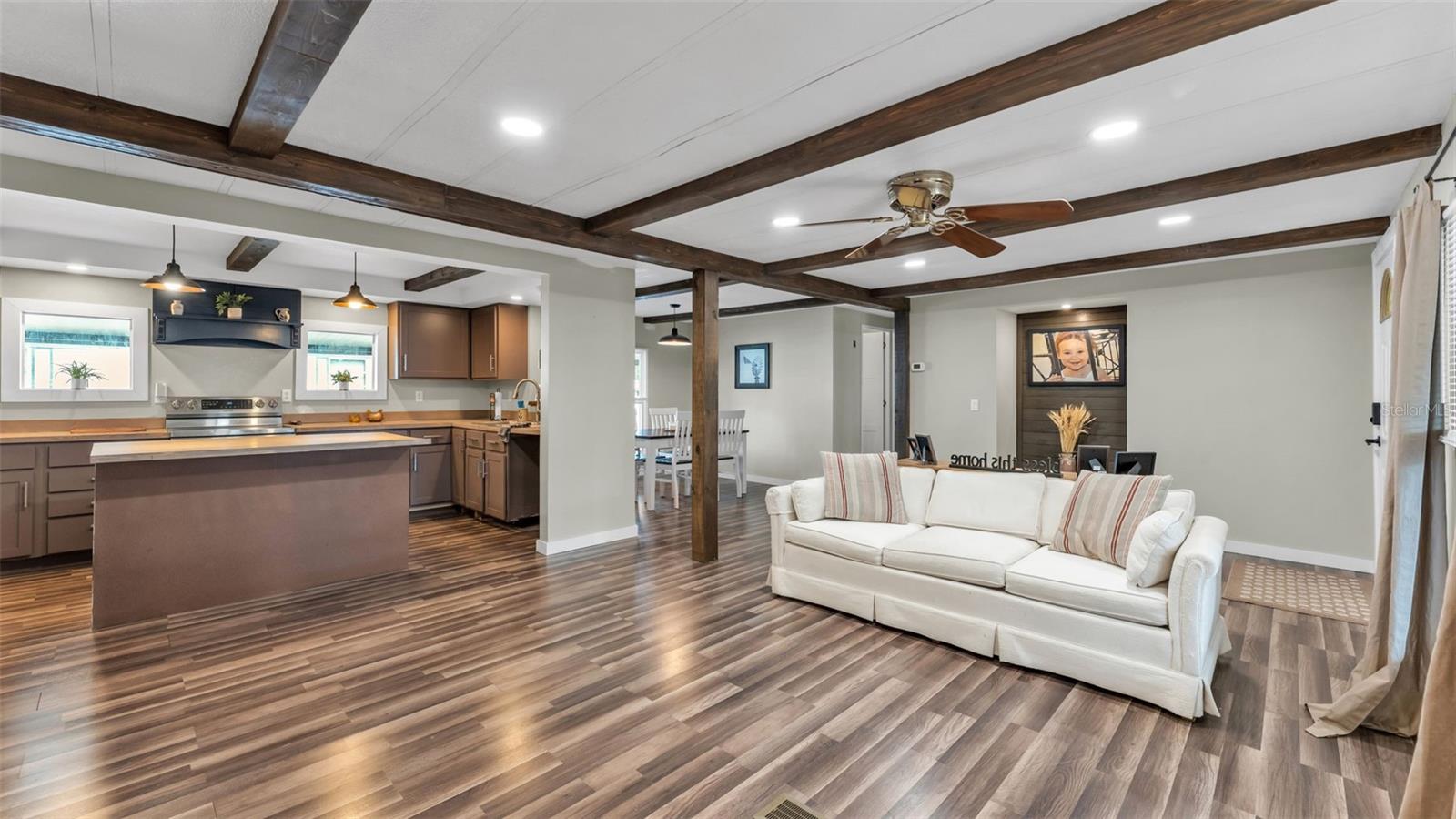 Welcome home to this beautifully updated 3-bedroom, 2-bath mobile home located in an all-ages community in Lakeland and situated on owned land. Featuring recent updates, an open floor plan, and a dedicated office space, this home offers both comfort and functionality. The home features new vinyl flooring throughout the main living area, fresh interior paint, and kitchen upgrades, creating a bright, modern feel. The spacious kitchen is the heart of the home, complete with a large island and open flow into the living area--perfect for everyday living and entertaining. A dedicated dining space and indoor laundry add to the home's convenience. The primary bedroom features an en-suite bathroom with a garden tub, separate shower, and generous closet space. Two additional bedrooms and a second full bath provide flexibility for guests, family, or a home office. Enjoy Florida living year-round in the Florida room, ideal for relaxing or additional living space. Outside, you'll find a covered carport with ample parking, a covered front porch sitting area, and a shed in the backyard for extra storage. With no HOA restrictions, recent improvements, and plenty of indoor and outdoor space, this property is well suited as a primary residence, second home, or an investment opportunity to add to a rental portfolio. Conveniently located in Lakeland, this move-in-ready home offers versatility and value.