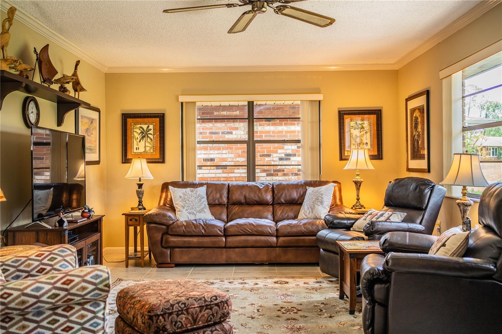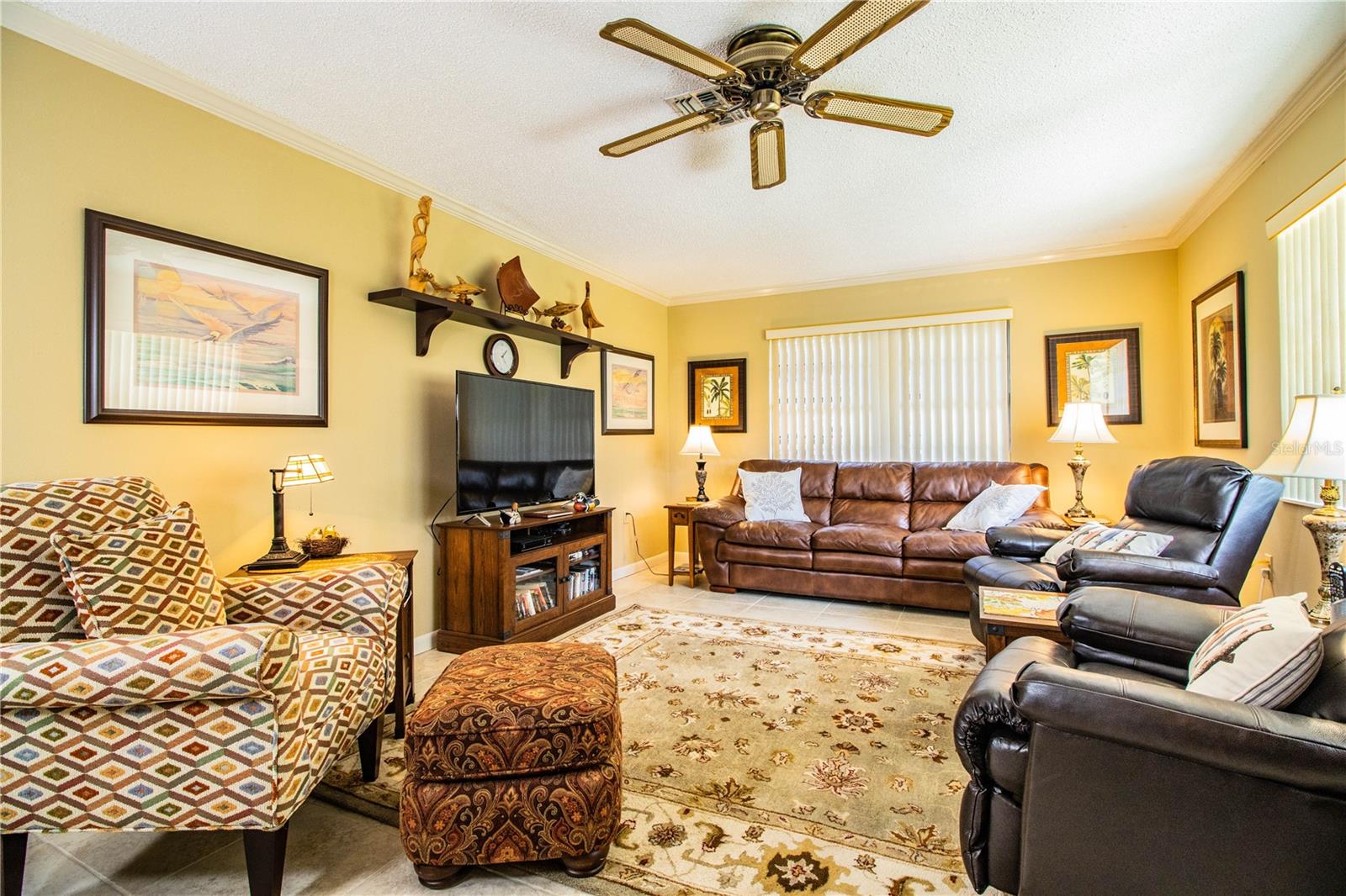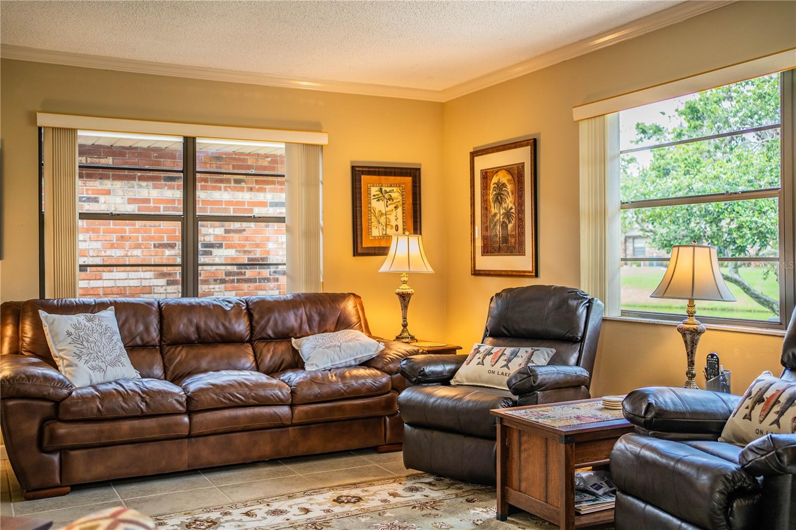 A meticulously maintained 2/2 waterfront home in the Villas 3 community! Sit back and relax in your spacious living room or go out to your Florida room to get endless natural light. The 2 bedrooms are sizable with 2 full bathrooms. The kitchen offers plenty of counter space and cabinets for storage! Have breakfast at the bar or in the dining area with a view of the water through the back windows. The big laundry room provides additional storage if needed. A big plus that the HOA cost includes cable, internet, water, sewer, and landscaping services for your yard.