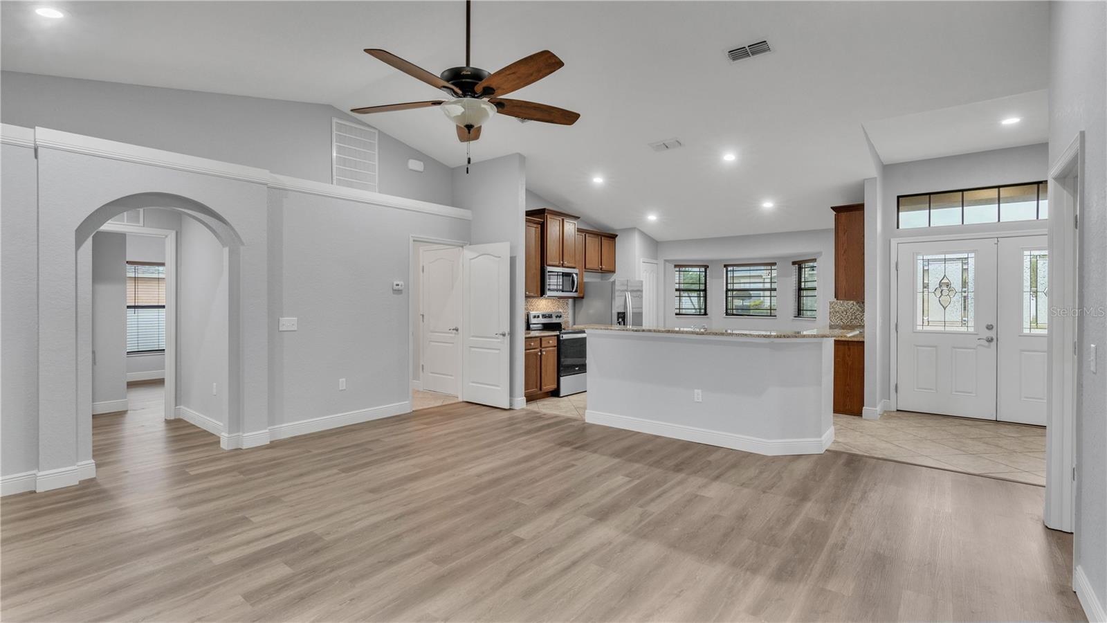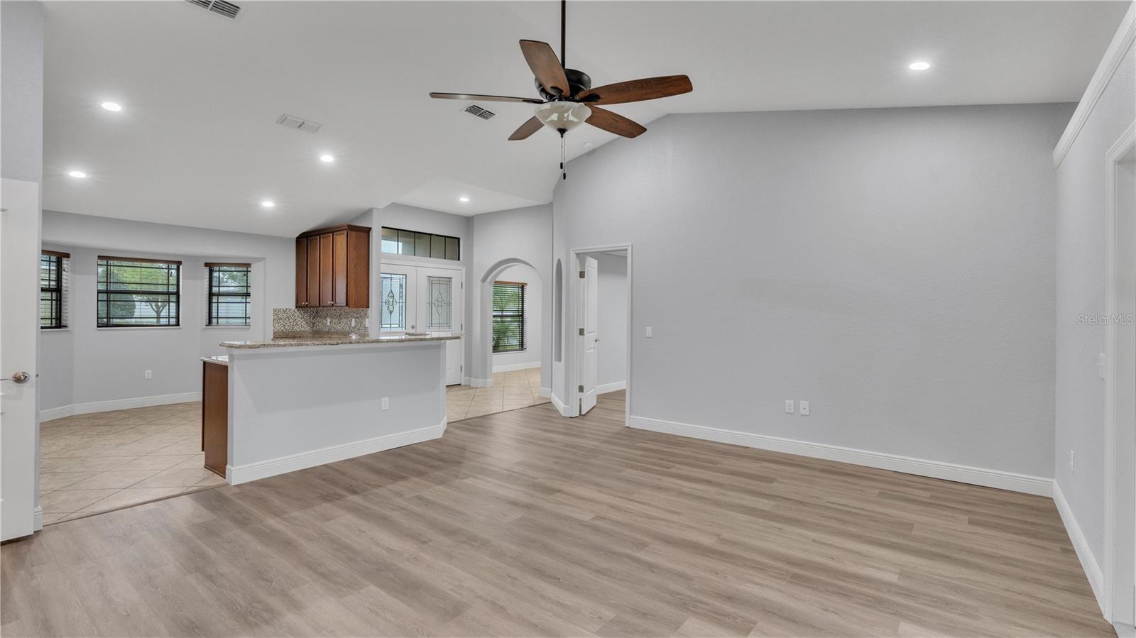 **NEW ROOF BEING INSTALLED**Introducing a stunning 3 bedroom, 2 bathroom home built by Southern Homes, nestled within the Oakford Estates Subdivision in the desirable South Lakeland area. Boasting a coveted corner lot location, this residence offers privacy and ample space for comfortable living. Step inside and be greeted by the allure of recently installed luxury vinyl planks, which seamlessly enhance the beauty of each room. The kitchen is a culinary delight, featuring pristine granite countertops, a stylish backsplash, stainless steel appliances, a pantry, and a designated area perfect for a breakfast table, where you can savor your morning coffee while soaking in natural light. Adjacent to the kitchen, discover a versatile flex room that can easily be customized into a formal dining room or office, catering to your specific needs. The living room is spacious and well-lit, creating an inviting ambiance for relaxation or entertaining guests. The primary bedroom is a serene retreat, showcasing trey ceilings and an en-suite bathroom designed for indulgence. Enjoy the comfort of dual sinks, a garden tub, a recently upgraded walk-in tile shower, and two walk-in closets that provide ample storage for your personal belongings. On the opposite side of the home, you will find two equally spacious bedrooms, offering privacy and comfort for family members or guests. Convenience is key, with a guest bathroom thoughtfully positioned between the bedrooms for ease of use. Outside, revel in the abundance of an oversized, fenced-in yard, providing endless possibilities for outdoor activities, gardening, or enjoying the company of loved ones. Benefit from the home's prime location, which is conveniently situated near the Parkway, offering easy access to a multitude of shopping, dining, and entertainment options. Make this exceptional Southern Homes property in Oakford Estates your dream sanctuary in South Lakeland.