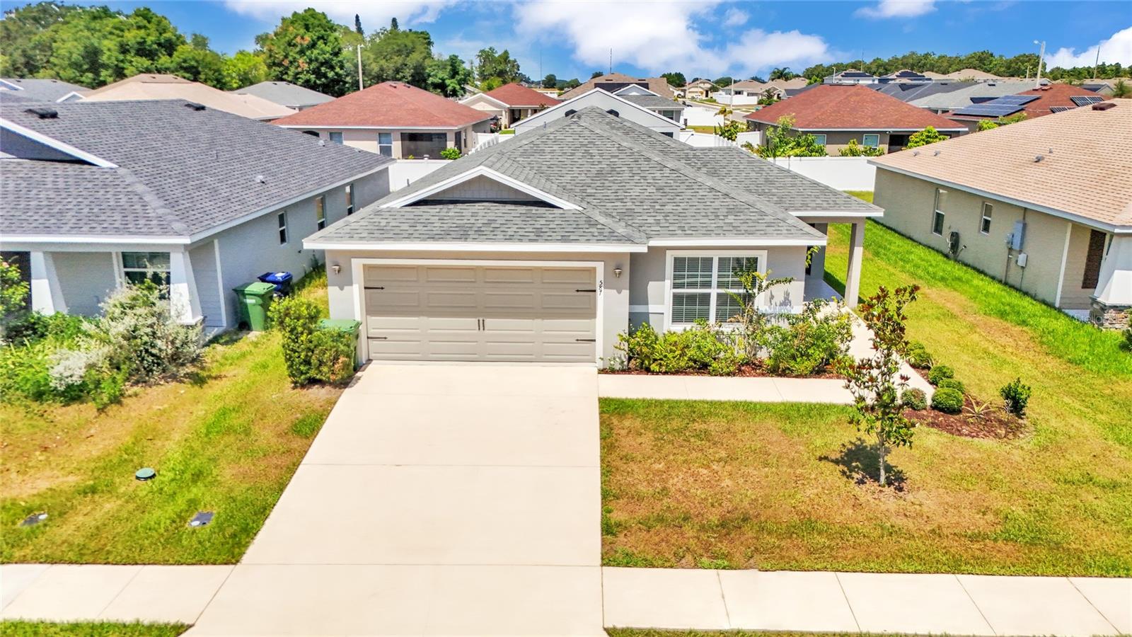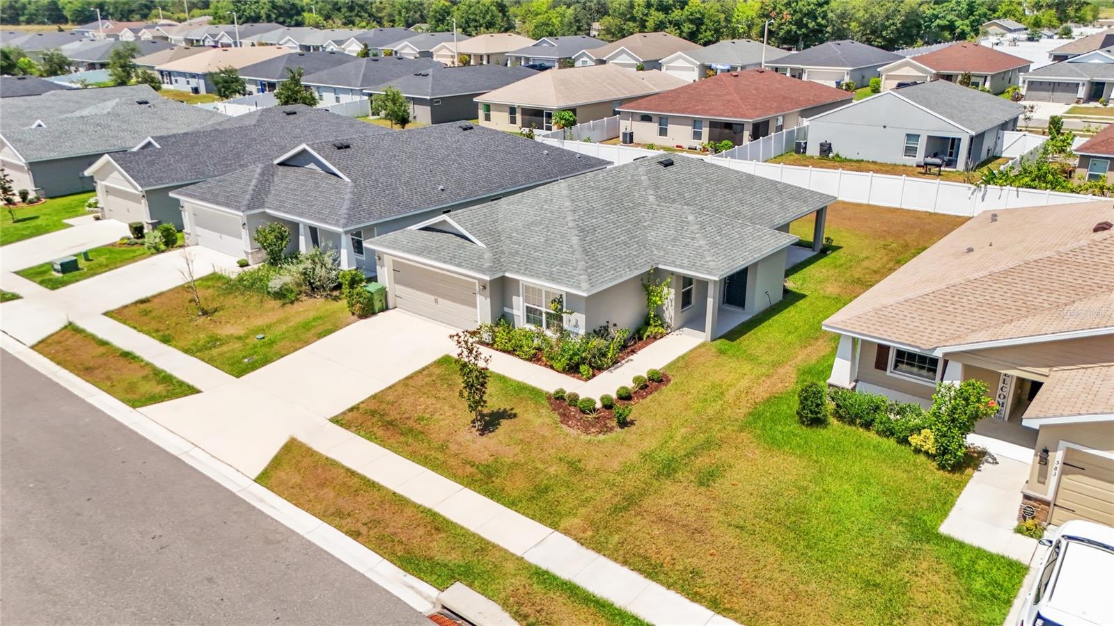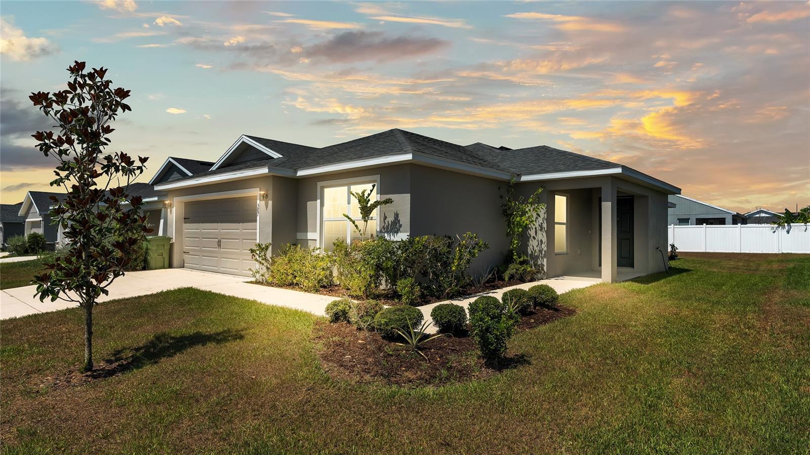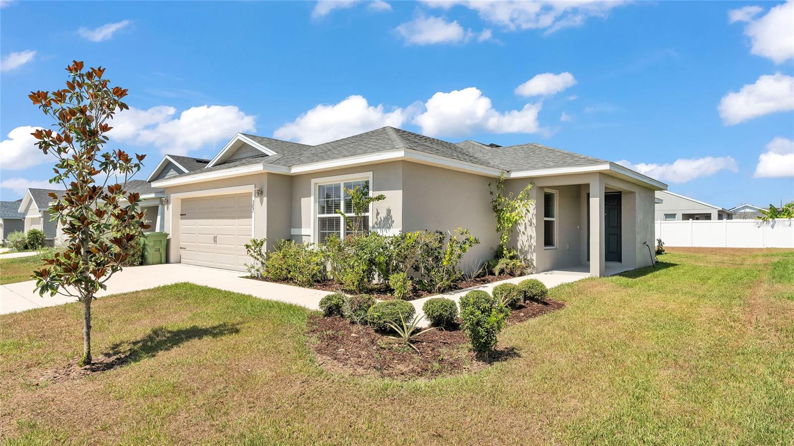 This home is a must-see and will impress you! Located in Normandy Heights, this move-in-ready 3-bedroom, 2-bathroom house was built in 2020 by the award-winning local builder Highland Homes. Upon entering the front door, you'll find a spacious living room with an open floor plan, vaulted ceilings, and recessed lighting. The kitchen features newly installed stainless steel appliances and an adjacent dining area with space for your dining set. The laundry room, accessible from the kitchen, offers ample room for a side-by-side washer and dryer, along with additional storage cabinets before entering the garage. The primary bedroom boasts an en-suite bathroom with a dual sink vanity, a relaxing garden tub, a walk-in tiled shower, and a walk-in closet. The two additional bedrooms are similar in size, located in the hallway on the opposite side of the home, and share a guest bathroom. Sliding glass doors from the living area let in plenty of natural light and lead to a breezy an open lanai, perfect for outdoor relaxation, with a spacious backyard ideal for entertainment or play. This home is conveniently located near the Polk Parkway, Spirit Lake Publix, Racetrack, Polk State College, and Legoland. Schedule your tour today!