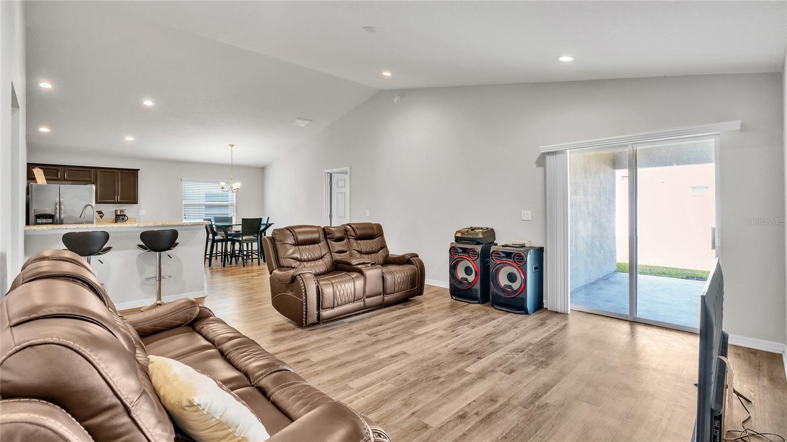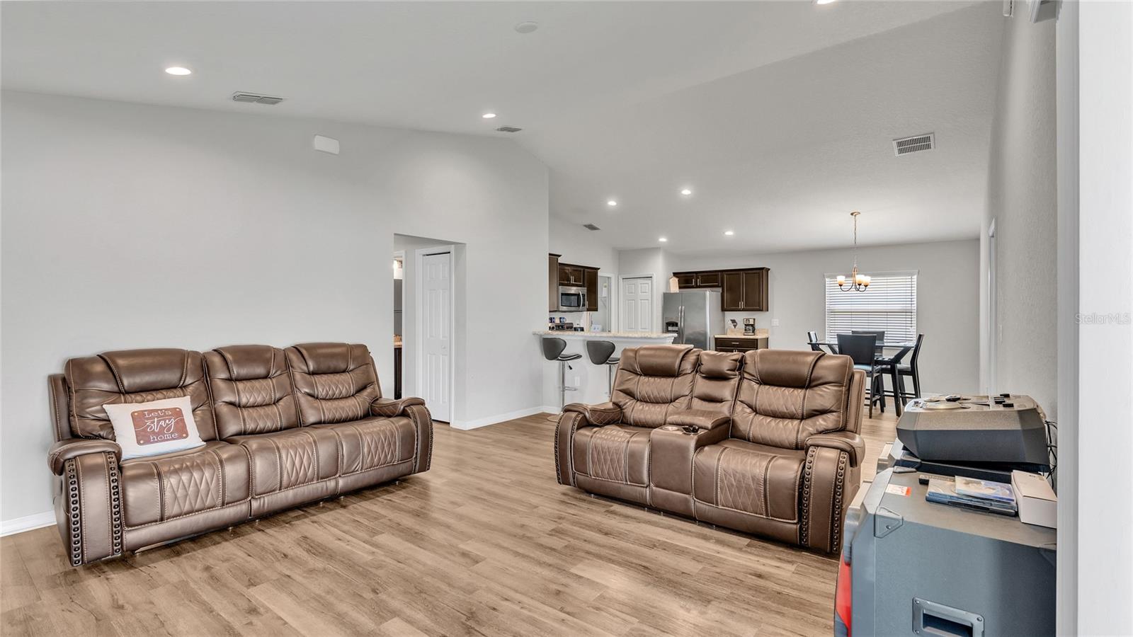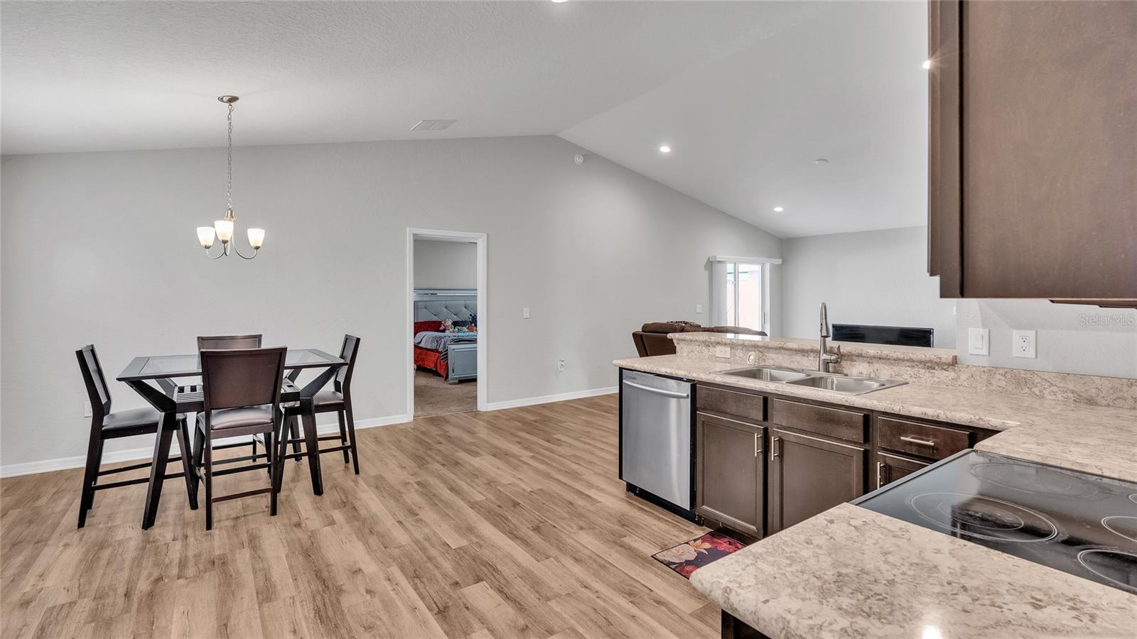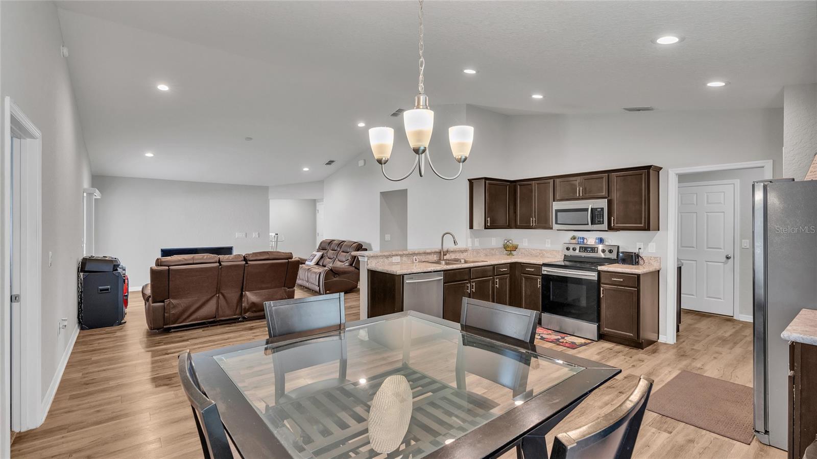This home is a must-see and will impress you! Located in Normandy Heights, this move-in-ready 3-bedroom, 2-bathroom house was built in 2020 by the award-winning local builder Highland Homes. Upon entering the front door, you'll find a spacious living room with an open floor plan, vaulted ceilings, and recessed lighting. The kitchen features newly installed stainless steel appliances and an adjacent dining area with space for your dining set. The laundry room, accessible from the kitchen, offers ample room for a side-by-side washer and dryer, along with additional storage cabinets before entering the garage. The primary bedroom boasts an en-suite bathroom with a dual sink vanity, a relaxing garden tub, a walk-in tiled shower, and a walk-in closet. The two additional bedrooms are similar in size, located in the hallway on the opposite side of the home, and share a guest bathroom. Sliding glass doors from the living area let in plenty of natural light and lead to a breezy an open lanai, perfect for outdoor relaxation, with a spacious backyard ideal for entertainment or play. This home is conveniently located near the Polk Parkway, Spirit Lake Publix, Racetrack, Polk State College, and Legoland. Schedule your tour today!