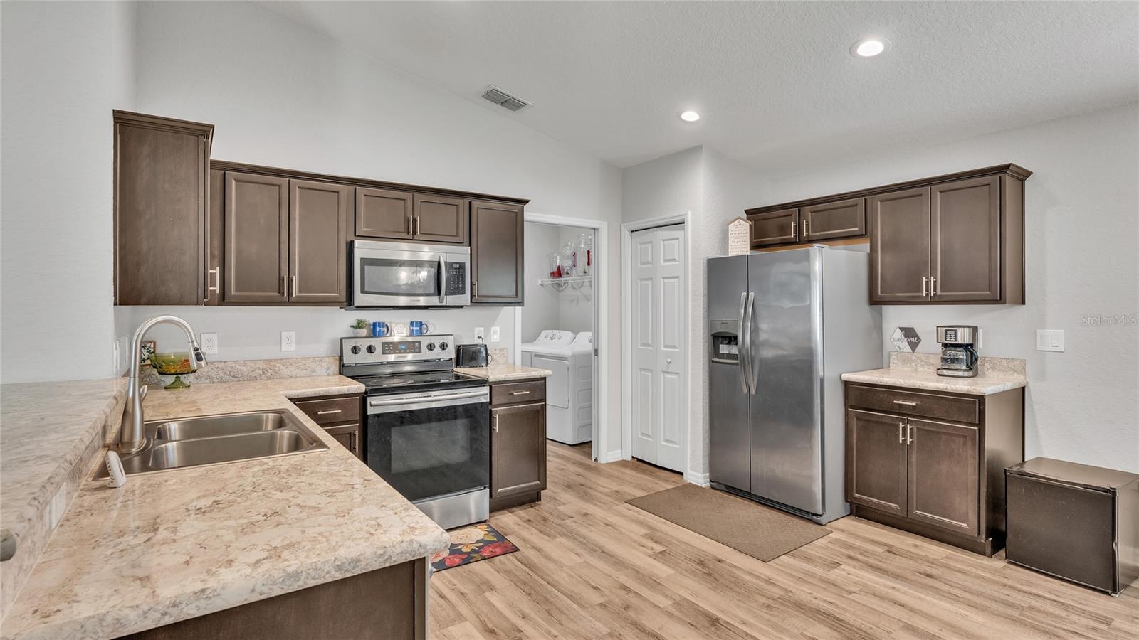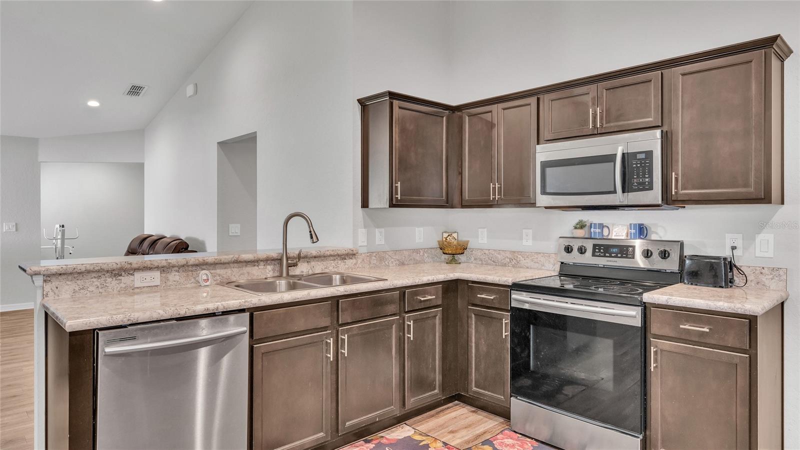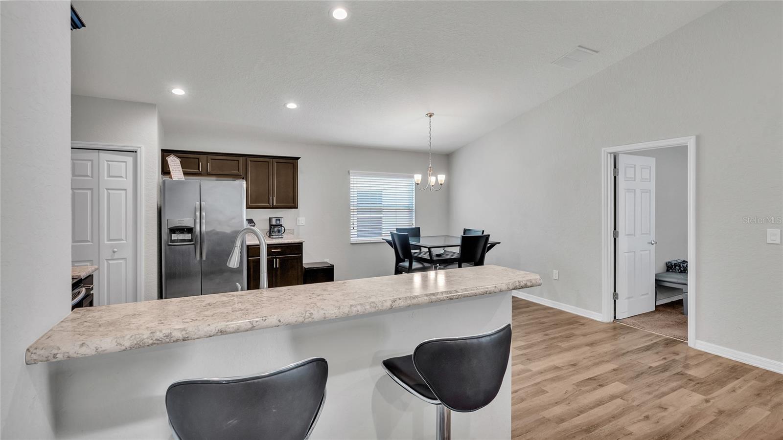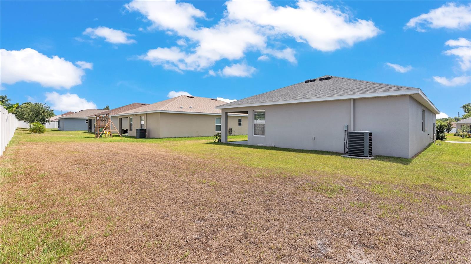 This home is a must-see and will impress you! Located in Normandy Heights, this move-in-ready 3-bedroom, 2-bathroom house was built in 2020 by the award-winning local builder Highland Homes. Upon entering the front door, you'll find a spacious living room with an open floor plan, vaulted ceilings, and recessed lighting. The kitchen features newly installed stainless steel appliances and an adjacent dining area with space for your dining set. The laundry room, accessible from the kitchen, offers ample room for a side-by-side washer and dryer, along with additional storage cabinets before entering the garage. The primary bedroom boasts an en-suite bathroom with a dual sink vanity, a relaxing garden tub, a walk-in tiled shower, and a walk-in closet. The two additional bedrooms are similar in size, located in the hallway on the opposite side of the home, and share a guest bathroom. Sliding glass doors from the living area let in plenty of natural light and lead to a breezy an open lanai, perfect for outdoor relaxation, with a spacious backyard ideal for entertainment or play. This home is conveniently located near the Polk Parkway, Spirit Lake Publix, Racetrack, Polk State College, and Legoland. Schedule your tour today!