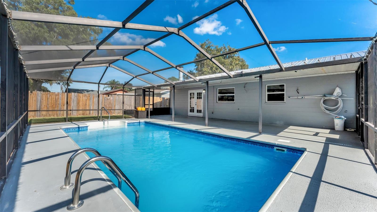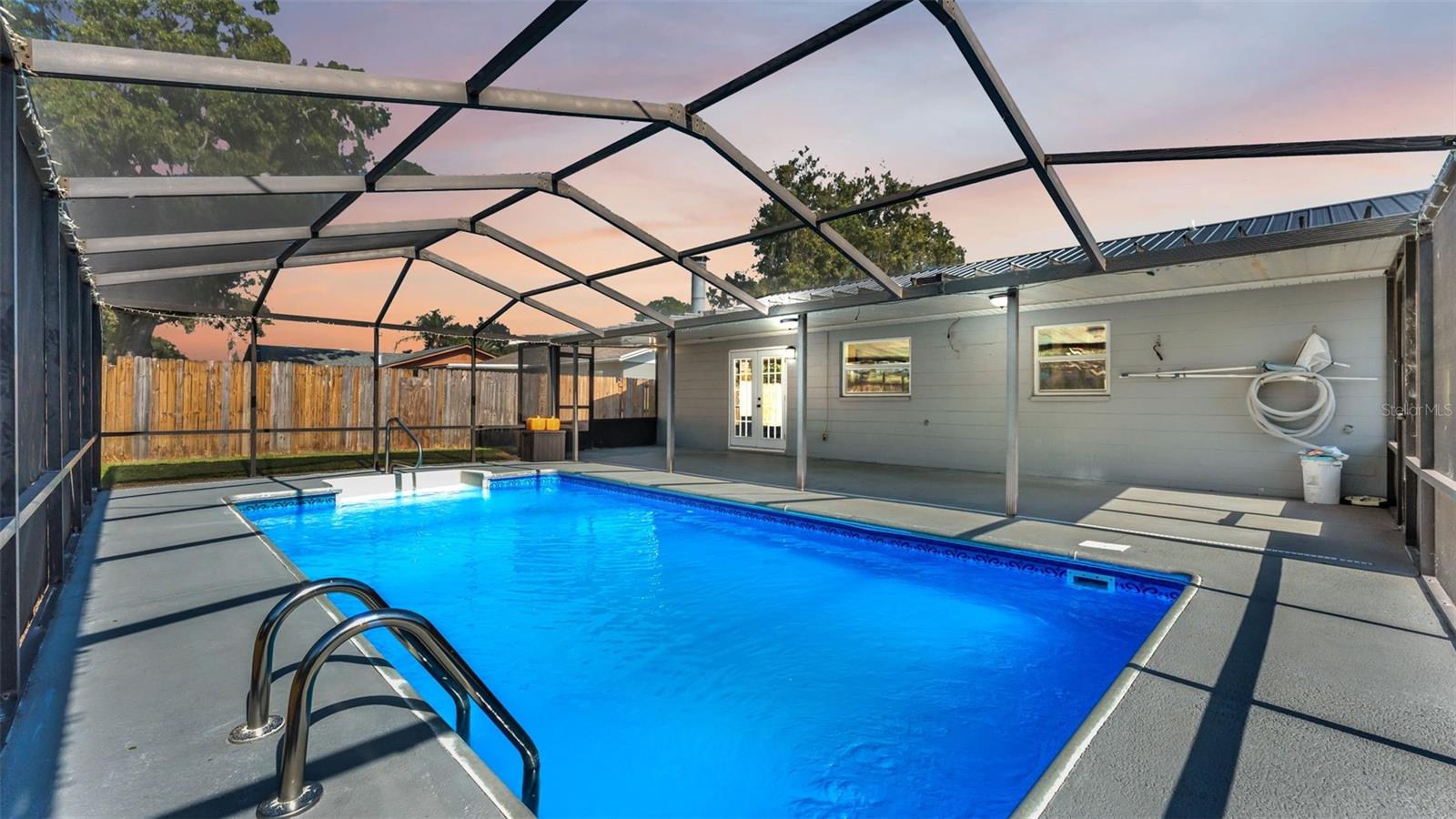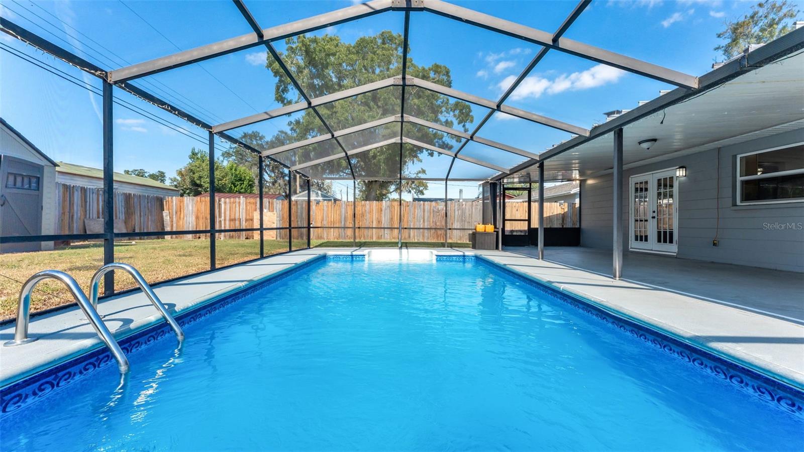 One or more photo(s) has been virtually staged. Welcome to this beautifully maintained 4-bedroom, 2-bathroom home with an enclosed inground pool, perfectly situated in a desirable NO HOA neighborhood. As you enter, you're greeted by an open floor plan featuring a spacious living and dining room combination. The living room boasts a cozy wood-burning fireplace, creating the perfect gathering space. The kitchen is a chef's delight, equipped with stainless steel appliances, abundant counter space, and plenty of cabinetry for storage. The primary suite offers a private retreat with an ensuite bathroom showcasing dual sinks, a walk-in tiled shower, and a generous walk-in closet. Two additional bedrooms and a second full bathroom are located nearby, while the fourth bedroom is conveniently positioned near the front of the home--ideal for a home office or guest room. Step outside to your screened-in patio and sparkling pool, perfect for year-round enjoyment. The fenced backyard includes a storage shed, adding functionality to this outdoor oasis. Recent upgrades provide peace of mind, including a metal roof (just a few years old), new water heater (2024), and HVAC system (2023). This home is ideally located near major retailers, restaurants, and easy access to I-4, making commuting and daily conveniences a breeze. Call today to schedule your private tour!