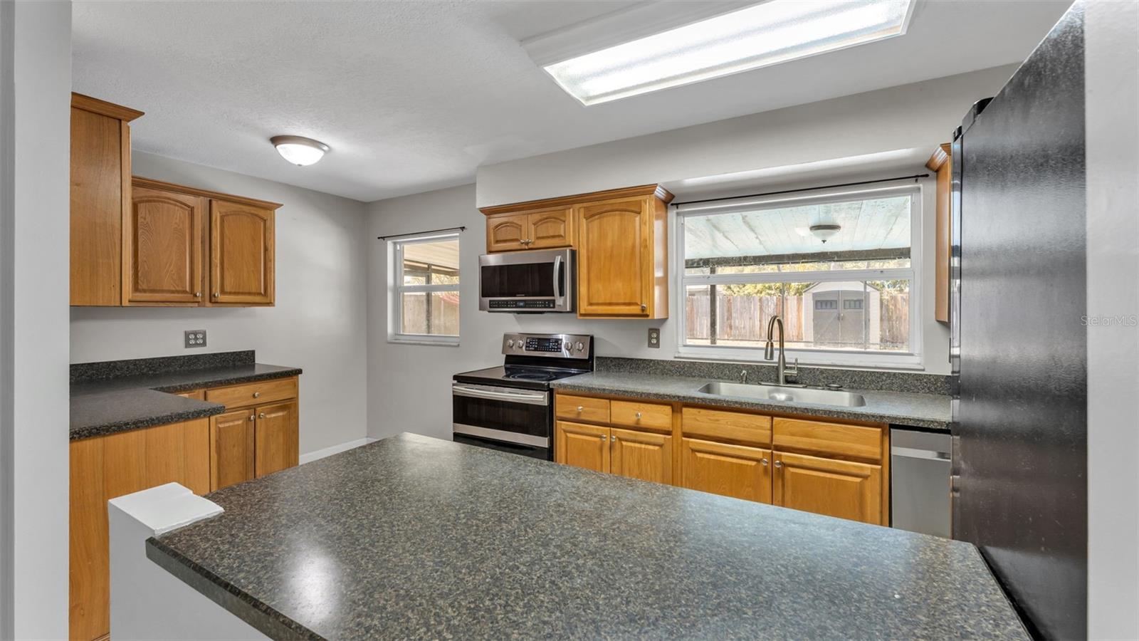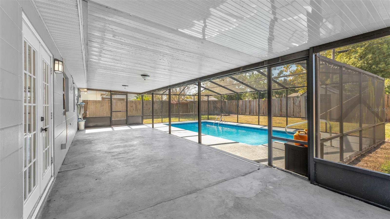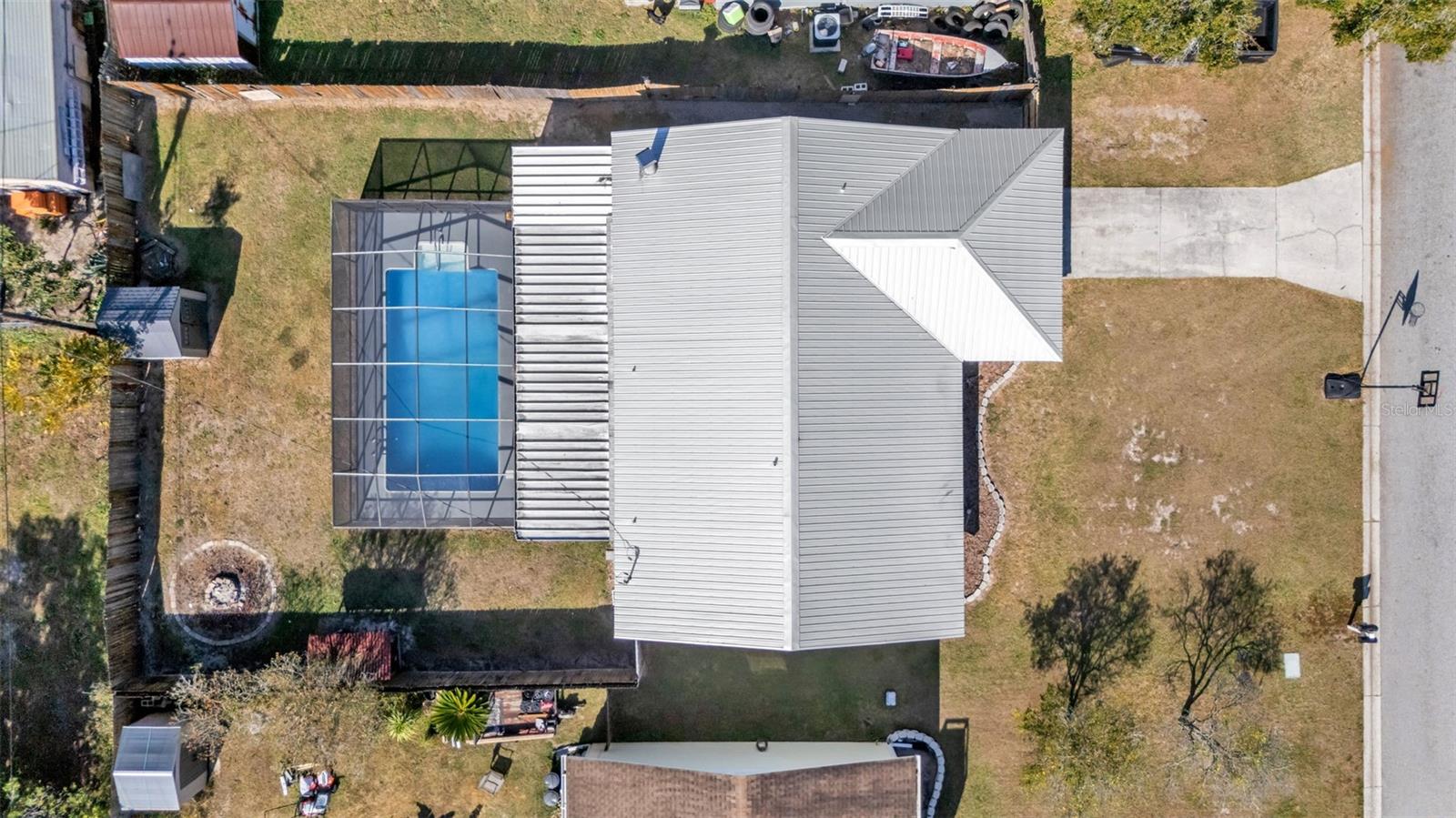 One or more photo(s) has been virtually staged. Welcome to this beautifully maintained 4-bedroom, 2-bathroom home with an enclosed inground pool, perfectly situated in a desirable NO HOA neighborhood. As you enter, you're greeted by an open floor plan featuring a spacious living and dining room combination. The living room boasts a cozy wood-burning fireplace, creating the perfect gathering space. The kitchen is a chef's delight, equipped with stainless steel appliances, abundant counter space, and plenty of cabinetry for storage. The primary suite offers a private retreat with an ensuite bathroom showcasing dual sinks, a walk-in tiled shower, and a generous walk-in closet. Two additional bedrooms and a second full bathroom are located nearby, while the fourth bedroom is conveniently positioned near the front of the home--ideal for a home office or guest room. Step outside to your screened-in patio and sparkling pool, perfect for year-round enjoyment. The fenced backyard includes a storage shed, adding functionality to this outdoor oasis. Recent upgrades provide peace of mind, including a metal roof (just a few years old), new water heater (2024), and HVAC system (2023). This home is ideally located near major retailers, restaurants, and easy access to I-4, making commuting and daily conveniences a breeze. Call today to schedule your private tour!