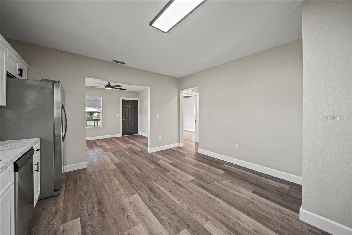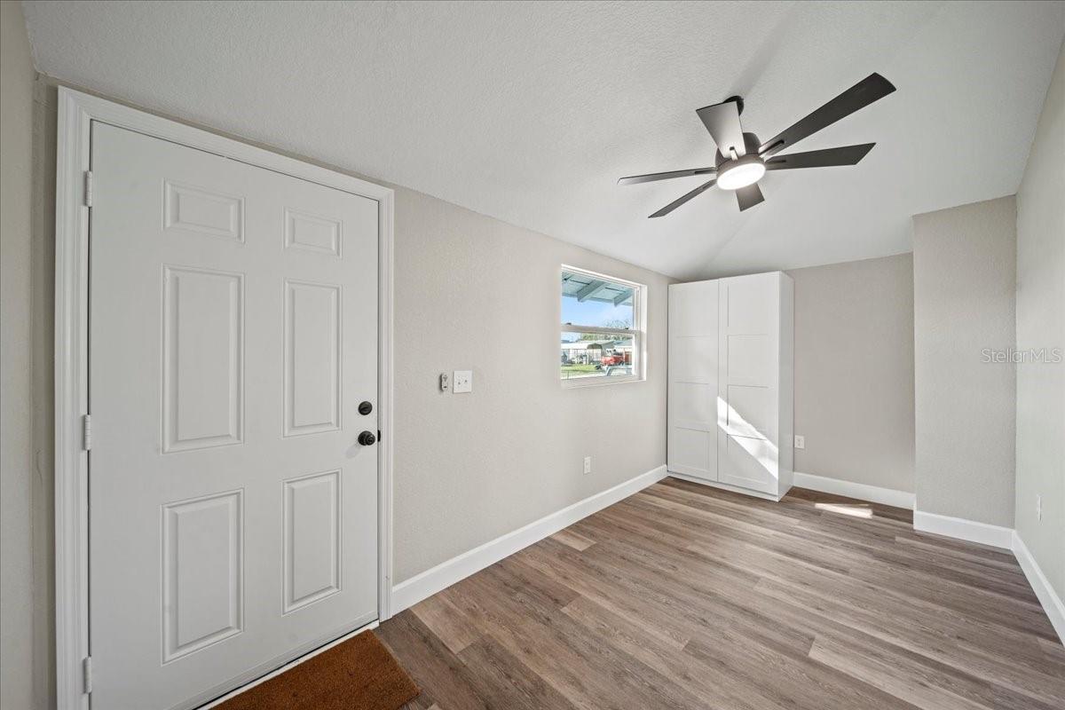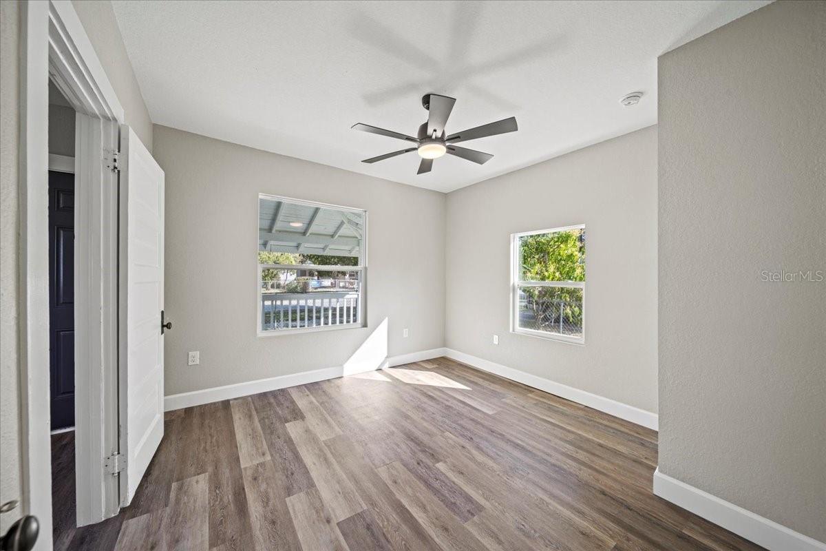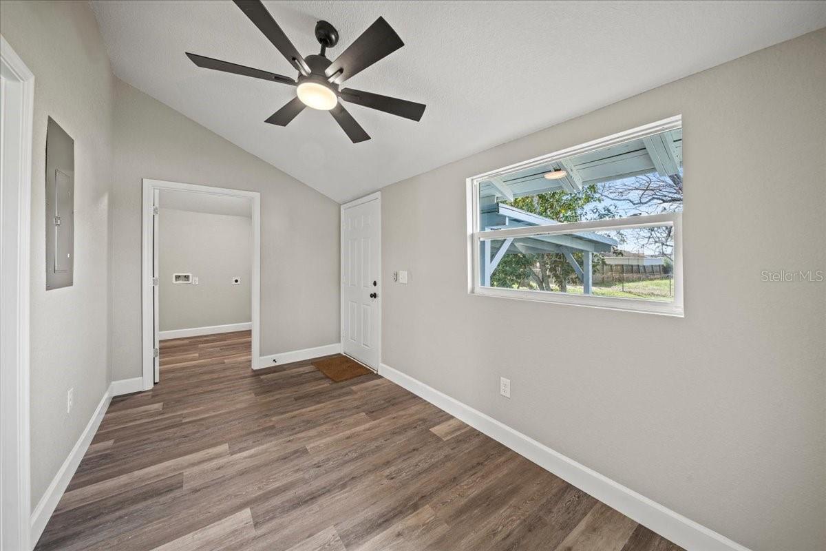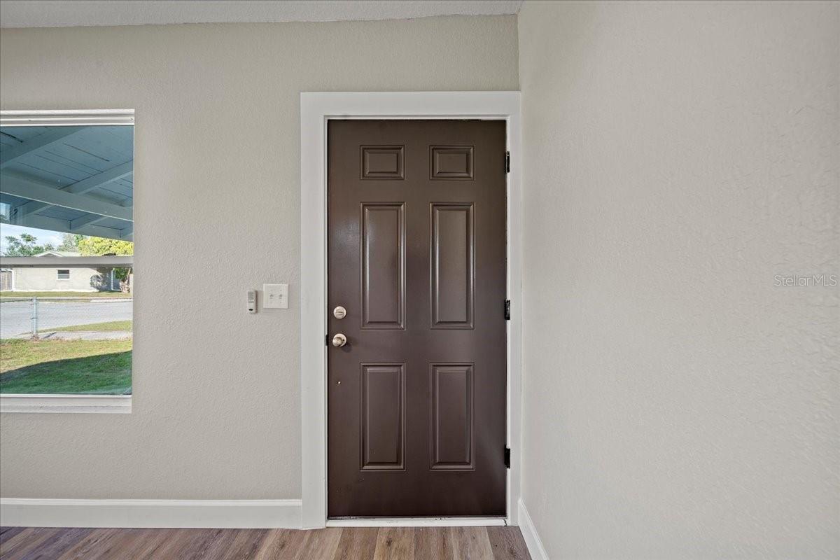 This beautifully remodeled historic 3-bedroom, 1-bathroom home is full of charm and modern updates. Situated on a corner lot, the property features a large front porch that overlooks a spacious, fully fenced yard, perfect for outdoor activities. Upon entering, you'll step into the cozy living room, complete with a ceiling fan and large windows that fill the space with natural light. The entire home boasts sleek wood-look luxury vinyl plank flooring, adding to its inviting atmosphere. The entirely remodeled kitchen is a highlight, offering brand-new cabinets, brand-new stainless steel appliances, and a stylish subway-tiled backsplash. A window above the sink provides a view of the side yard, bringing in more light and a pleasant breeze. The kitchen has ample space for a dining table, creating a great spot for family meals. The first and second bedrooms share a hallway bathroom featuring a fully tiled bathtub and shower combo, as well as an upgraded vanity. The third bedroom, which could easily serve as an office, is located just past the kitchen. Adjacent to it is the laundry room, where you'll find the brand-new water heater. The back door opens to a carport and a generously sized yard with a gated entrance and the benefit of a mature, fruiting avocado and pecan tree, while offering plenty of room for parking or outdoor enjoyment. This home has been thoughtfully updated with a brand-new AC, roof, and all new plumbing supply lines and water traps. It's connected to sewer, and the electrical system has been completely rewired with a new panel and breaker box, featuring GFCI protection for added safety. This home also boasts a brand-new roof and AC unit, ensuring peace of mind for the new homeowners. Easy to show and move in ready for its next owner, this home is a must-see. Schedule your tour today!