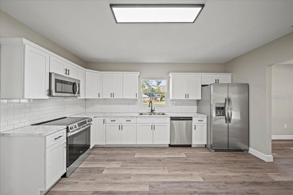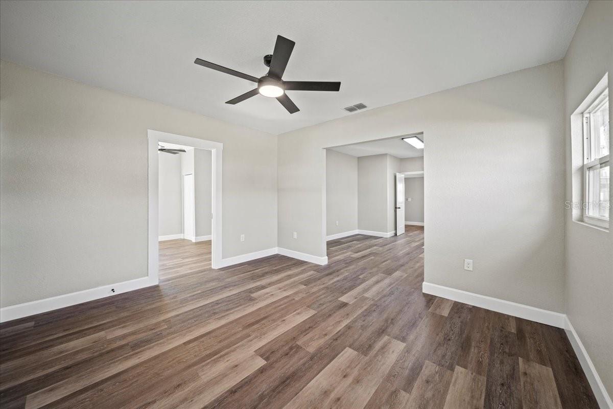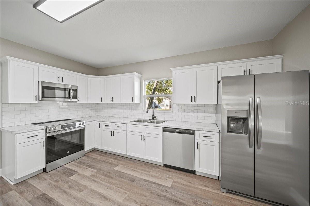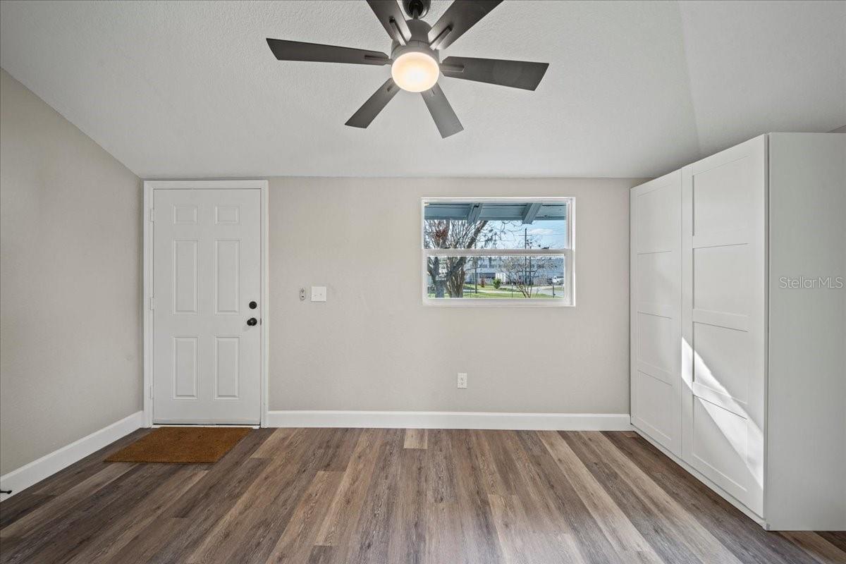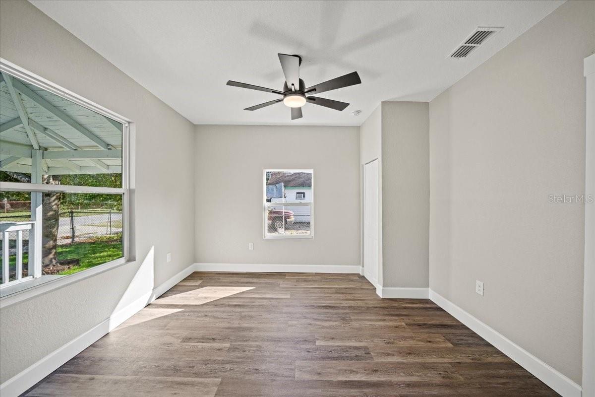 This beautifully remodeled historic 3-bedroom, 1-bathroom home is full of charm and modern updates. Situated on a corner lot, the property features a large front porch that overlooks a spacious, fully fenced yard, perfect for outdoor activities. Upon entering, you'll step into the cozy living room, complete with a ceiling fan and large windows that fill the space with natural light. The entire home boasts sleek wood-look luxury vinyl plank flooring, adding to its inviting atmosphere. The entirely remodeled kitchen is a highlight, offering brand-new cabinets, brand-new stainless steel appliances, and a stylish subway-tiled backsplash. A window above the sink provides a view of the side yard, bringing in more light and a pleasant breeze. The kitchen has ample space for a dining table, creating a great spot for family meals. The first and second bedrooms share a hallway bathroom featuring a fully tiled bathtub and shower combo, as well as an upgraded vanity. The third bedroom, which could easily serve as an office, is located just past the kitchen. Adjacent to it is the laundry room, where you'll find the brand-new water heater. The back door opens to a carport and a generously sized yard with a gated entrance and the benefit of a mature, fruiting avocado and pecan tree, while offering plenty of room for parking or outdoor enjoyment. This home has been thoughtfully updated with a brand-new AC, roof, and all new plumbing supply lines and water traps. It's connected to sewer, and the electrical system has been completely rewired with a new panel and breaker box, featuring GFCI protection for added safety. This home also boasts a brand-new roof and AC unit, ensuring peace of mind for the new homeowners. Easy to show and move in ready for its next owner, this home is a must-see. Schedule your tour today!